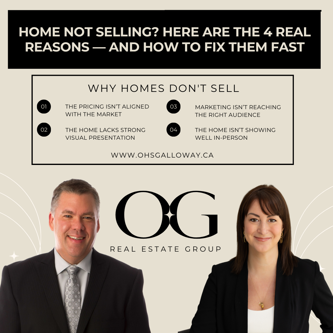 If your home isn’t selling, it doesn’t mean something is “wrong” — it simply means something needs adjusting. With the right pricing, marketing, presentation, and accessibility, any home can attract the right buyer. If you’re considering re-listing or want a fresh perspective on your current listing, the Ohs Galloway Real Estate Group is here to help. We specialize in strategic, high-impact marketing designed to get your home sold quickly and for top value. Call us today at 250-752-7653 or email Rob@OhsGalloway.ca | Jennifer@OhsGalloway.ca