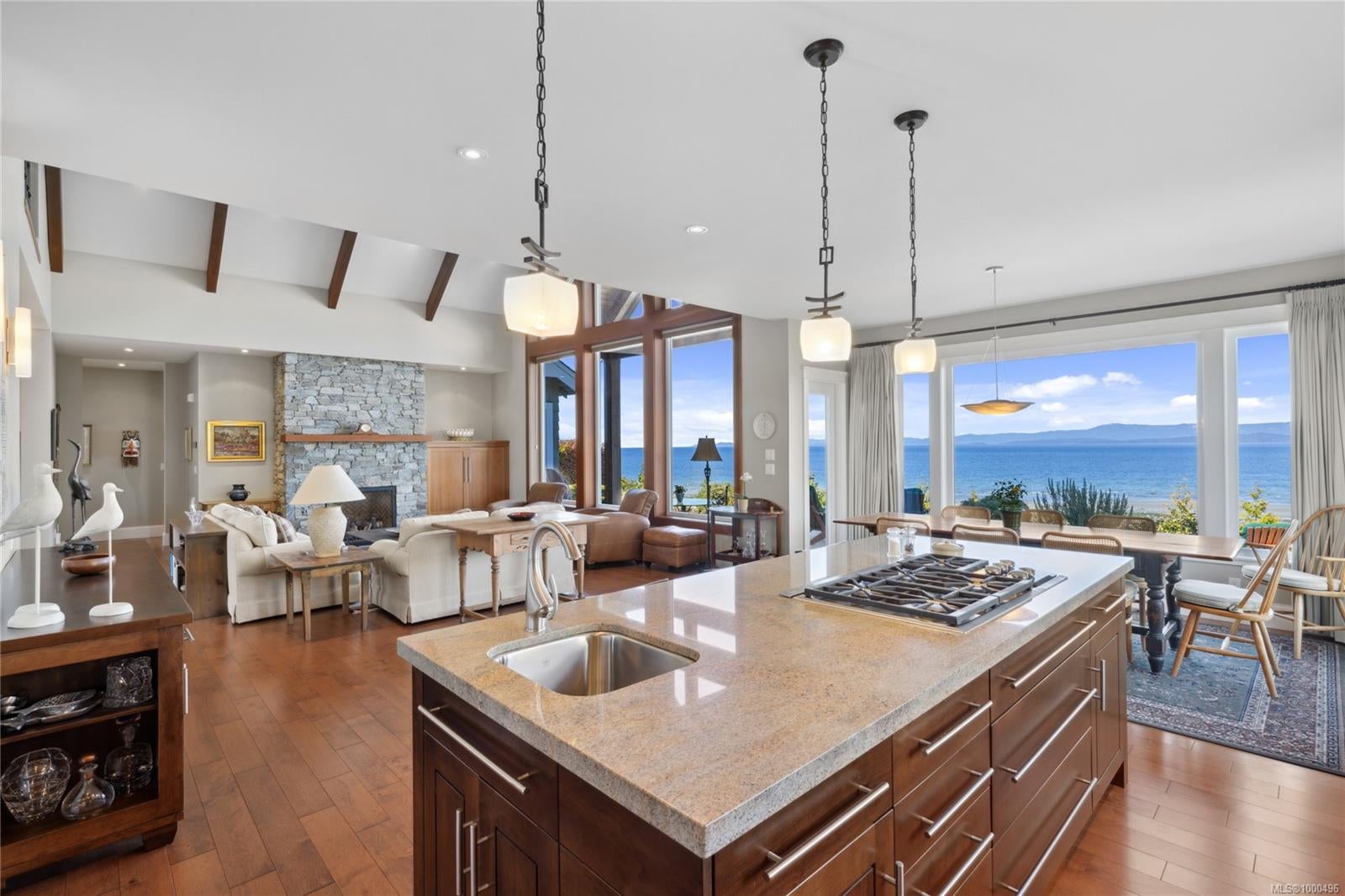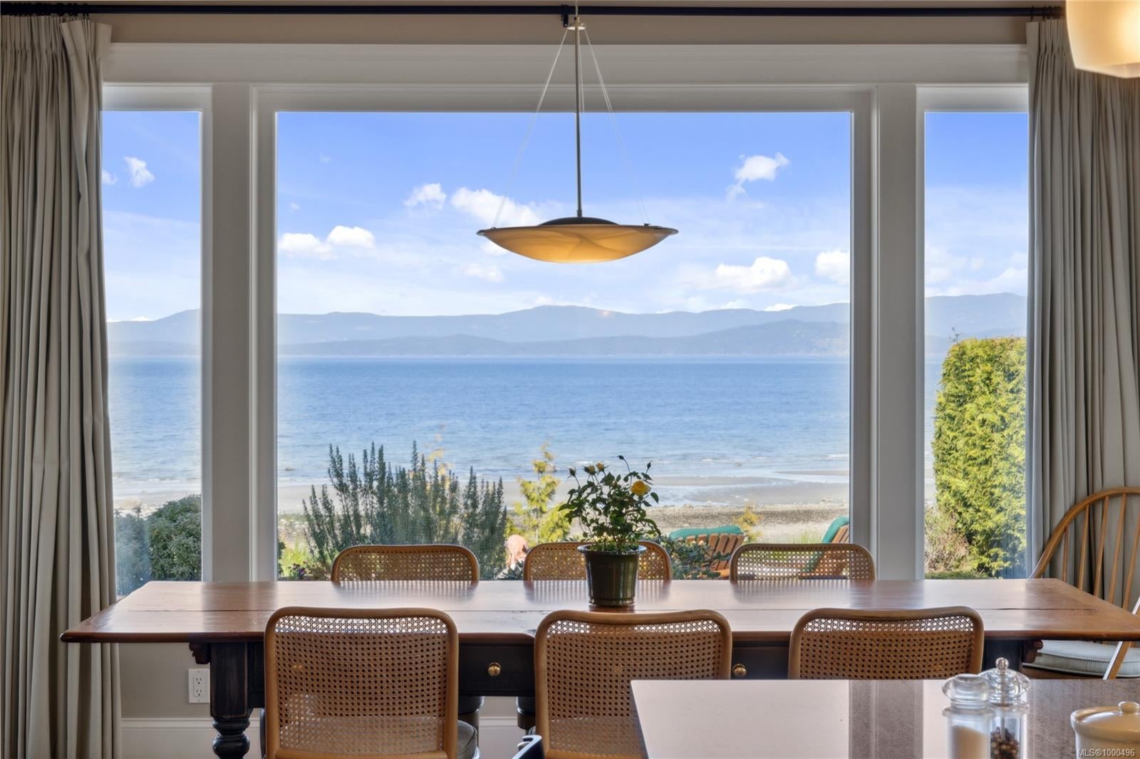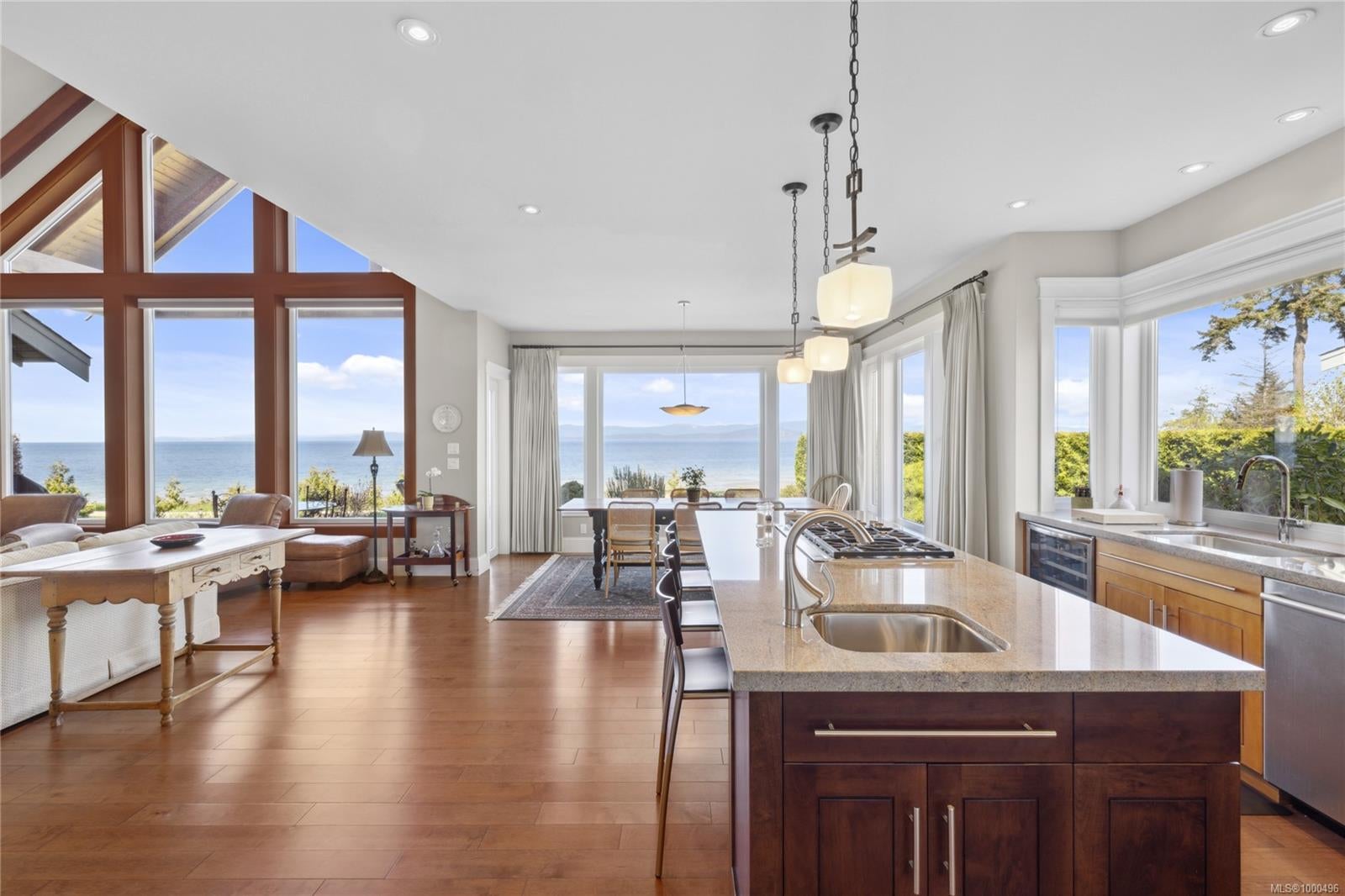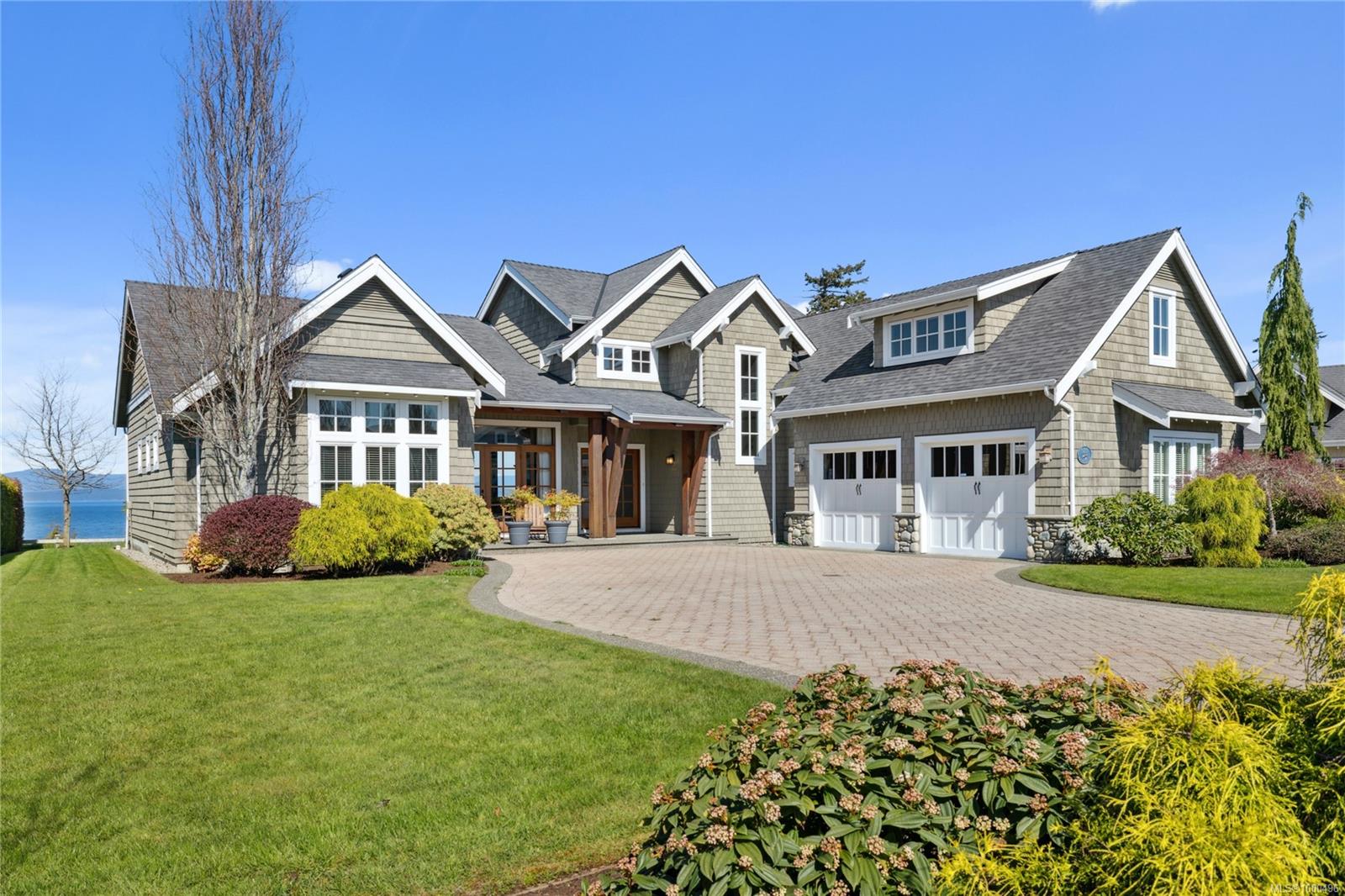 Stunning 180° Ocean View Home! Within the exclusive Bluffs neighbourhood perched on a high bank with unobstructed views of the Strait of Georgia, this impeccably maintained 3548 sq ft residence offers breathtaking vistas from nearly every room. Enjoy main-level living with an open and inviting layout, complemented by generous guest accommodations both on the main and upper floor. Recently updated with top-of-the-line finishes, the home features fresh exterior paint, a new high-efficiency furnace, dehumidifier system, gas on-demand hot water, new dishwasher, wine fridge, smart thermostat, kitchen sink and faucet. Whether you're relaxing on the expansive patio or entertaining in the elegant interior, this home seamlessly blends luxury, comfort, and coastal beauty. A private staircase takes you to the best sandy beaches, minutes to the golf course, this home offers something for everyone.
