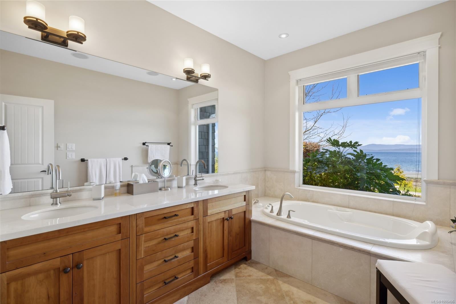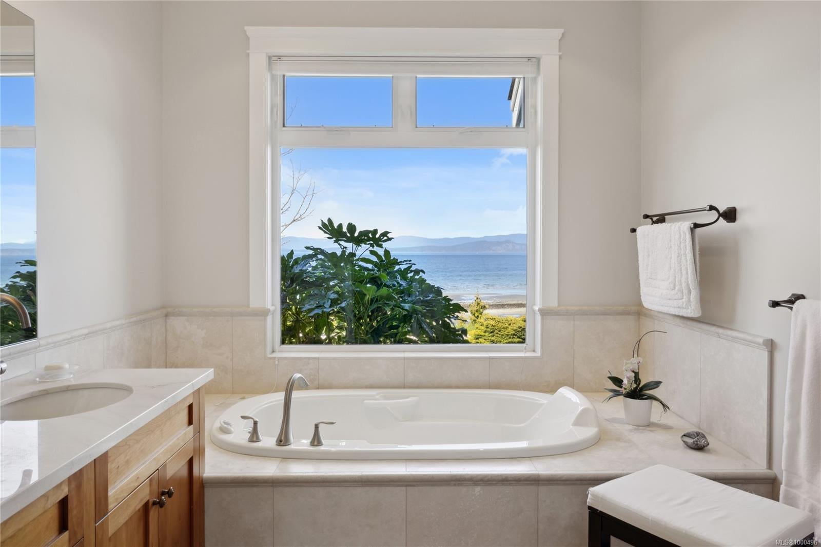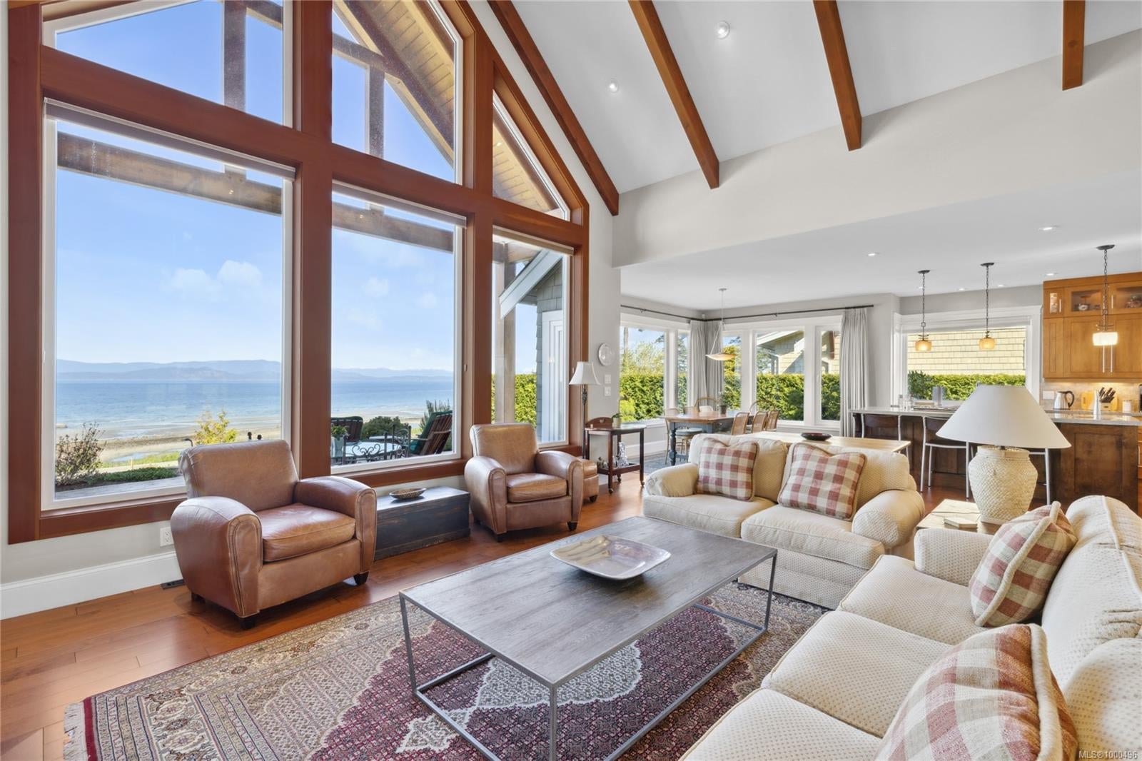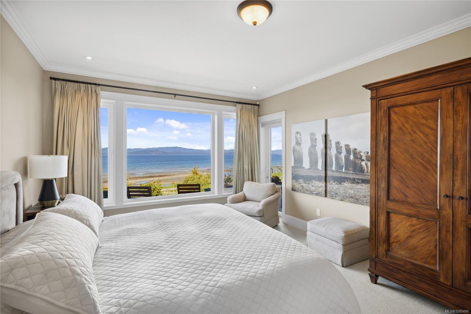 Stunning 180° Ocean View Home! Within the exclusive Bluffs neighbourhood perched on a high bank with unobstructed views of the Strait of Georgia, this impeccably maintained 3548 sq ft residence offers breathtaking vistas from nearly every room. Enjoy main-level living with an open and inviting layout, complemented by generous guest accommodations both on the main and upper floor. Recently updated with top-of-the-line finishes, the home features fresh exterior paint, a new high-efficiency furnace, dehumidifier system, gas on-demand hot water, new dishwasher, wine fridge, smart thermostat, kitchen sink and faucet. Whether you're relaxing on the expansive patio or entertaining in the elegant interior, this home seamlessly blends luxury, comfort, and coastal beauty. A private staircase takes you to the best sandy beaches, minutes to the golf course, this home offers something for everyone.