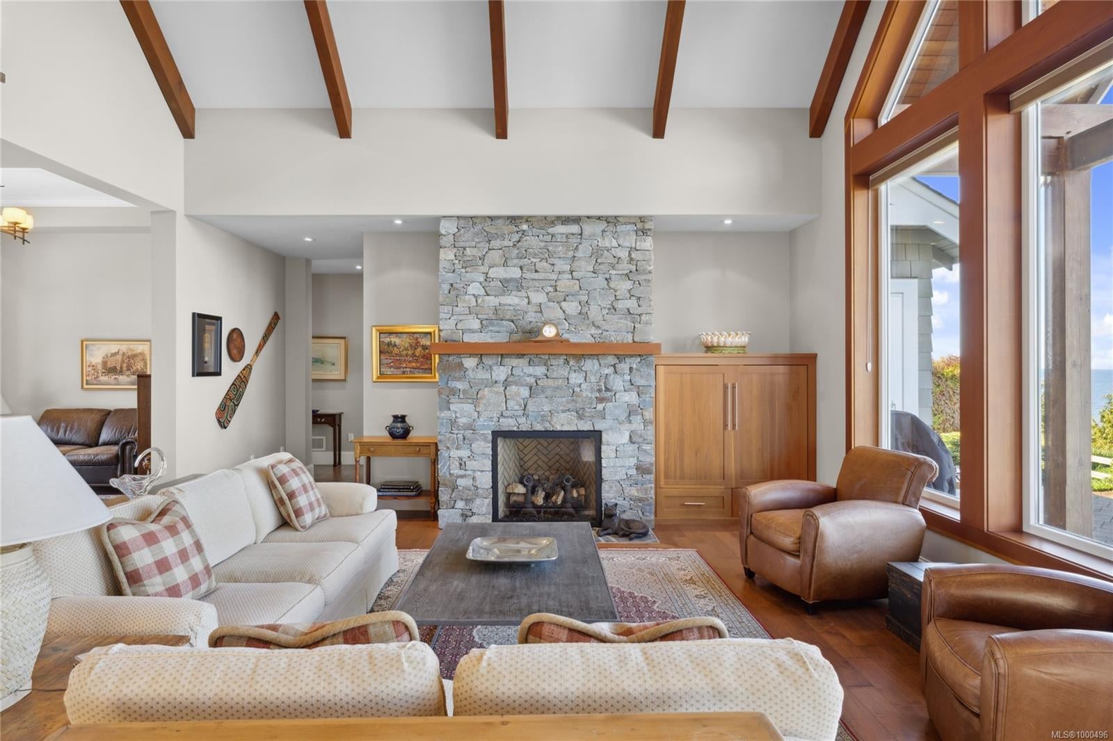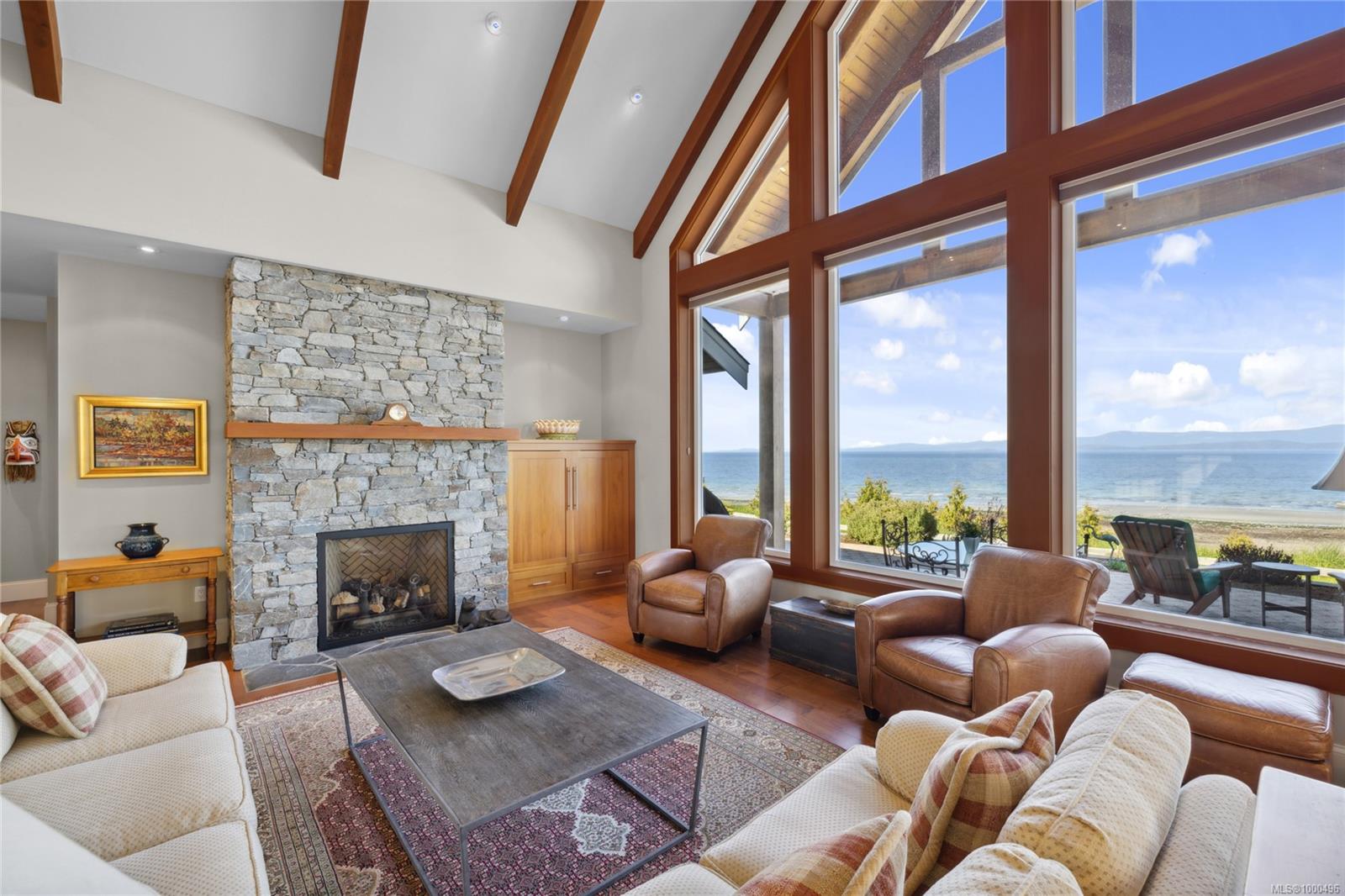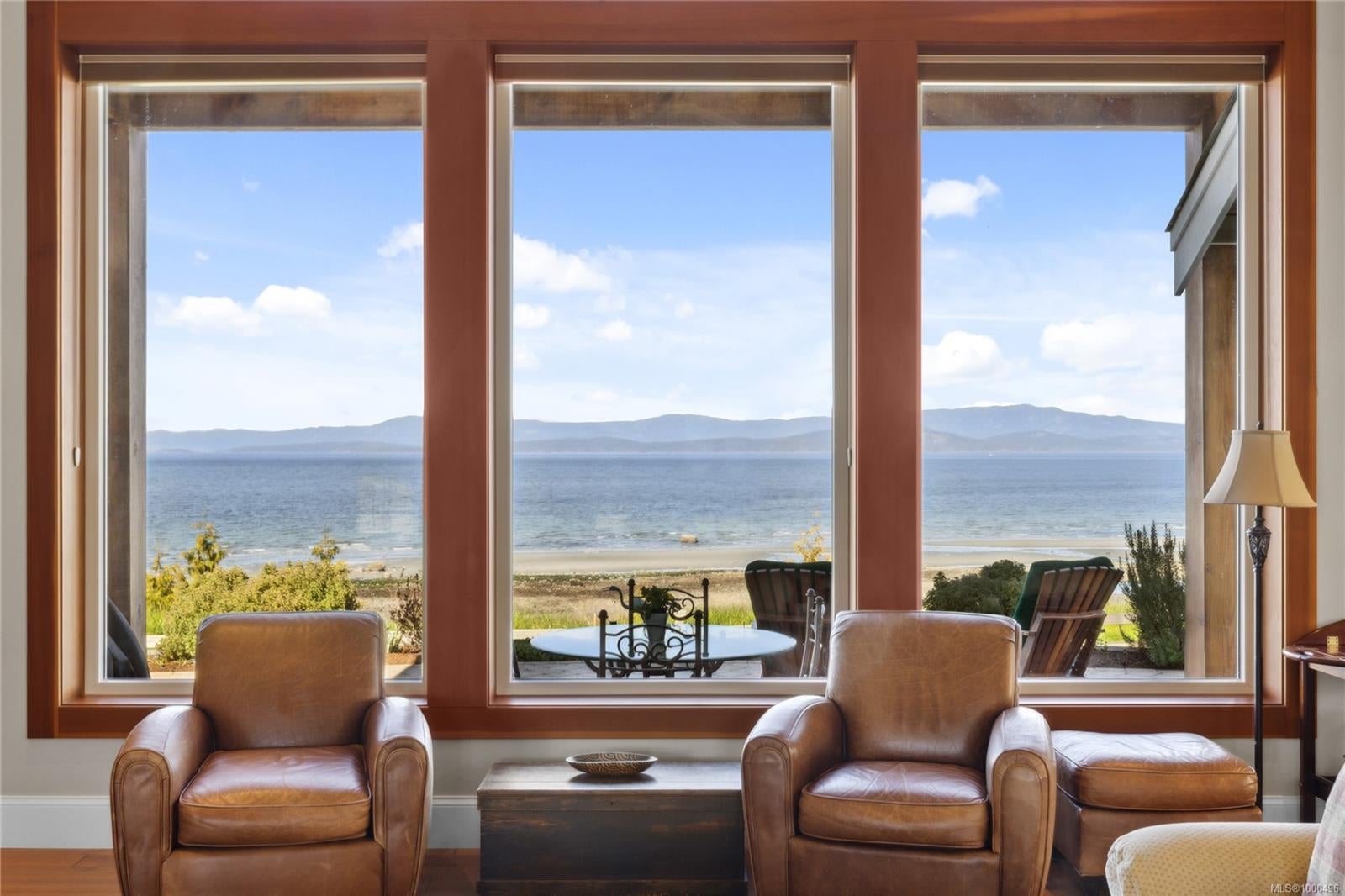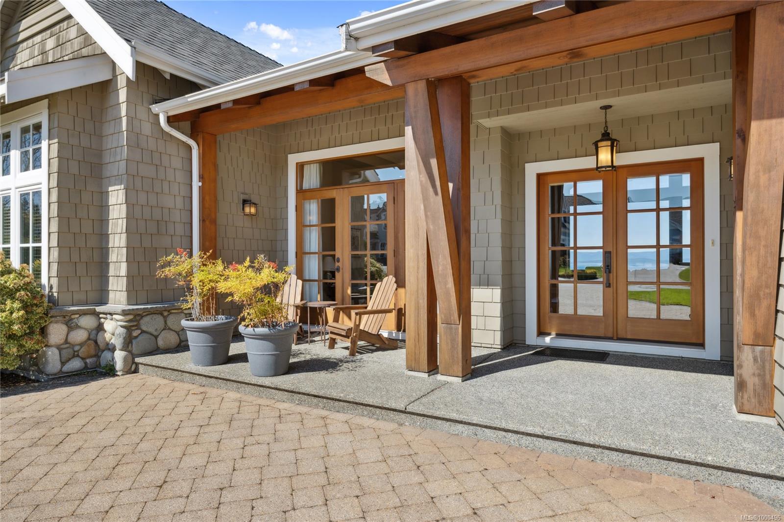 Stunning 180° Ocean View Home! Within the exclusive Bluffs neighbourhood perched on a high bank with unobstructed views of the Strait of Georgia, this impeccably maintained 3548 sq ft residence offers breathtaking vistas from nearly every room. Enjoy main-level living with an open and inviting layout, complemented by generous guest accommodations both on the main and upper floor. Recently updated with top-of-the-line finishes, the home features fresh exterior paint, a new high-efficiency furnace, dehumidifier system, gas on-demand hot water, new dishwasher, wine fridge, smart thermostat, kitchen sink and faucet. Whether you're relaxing on the expansive patio or entertaining in the elegant interior, this home seamlessly blends luxury, comfort, and coastal beauty. A private staircase takes you to the best sandy beaches, minutes to the golf course, this home offers something for everyone.