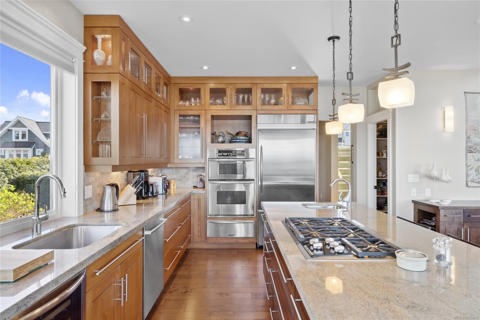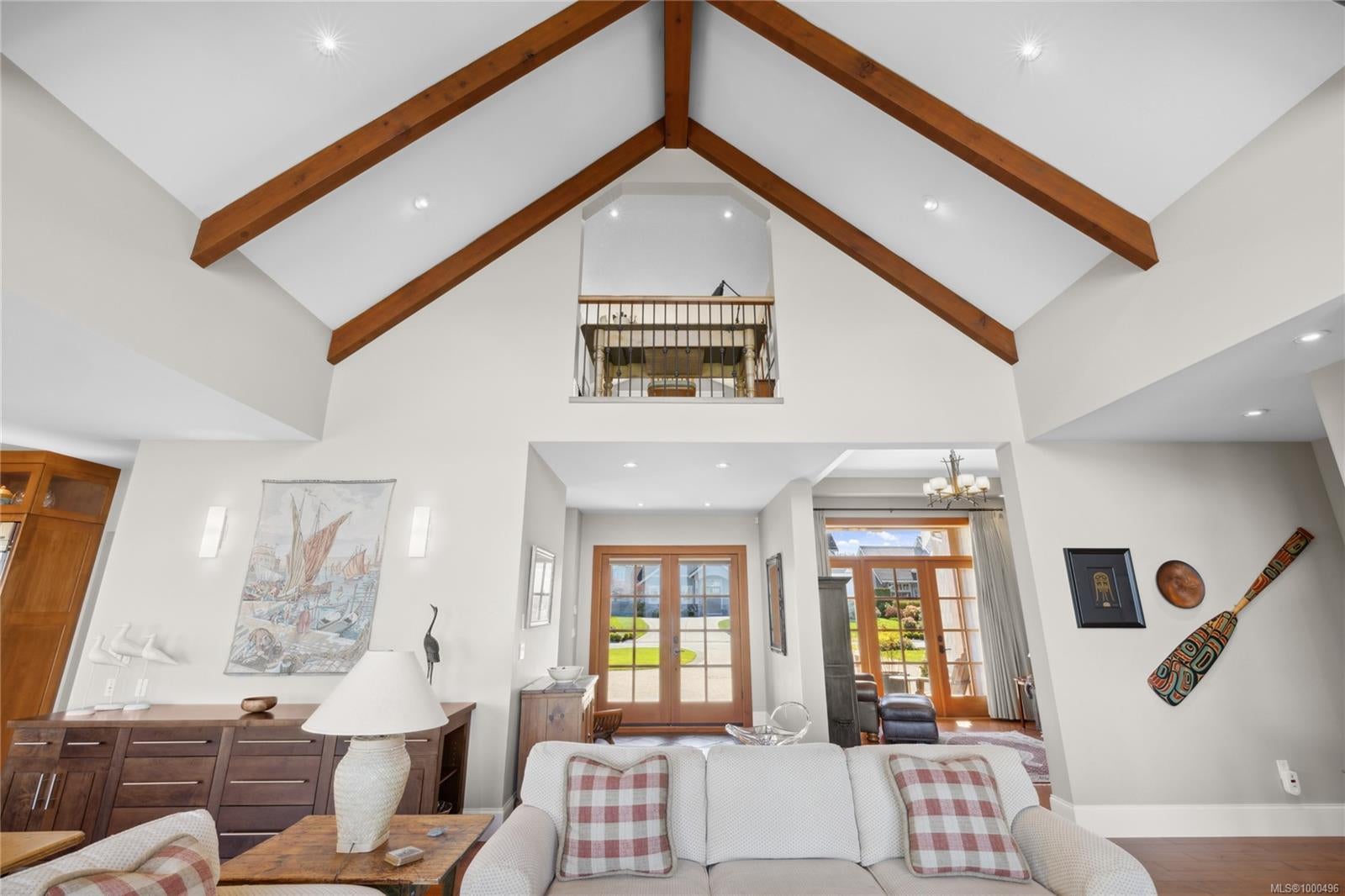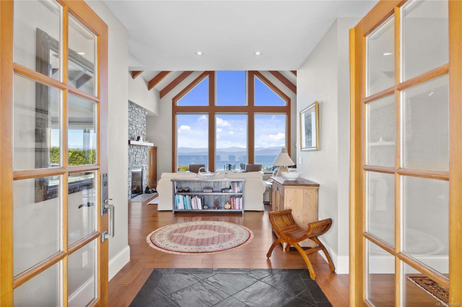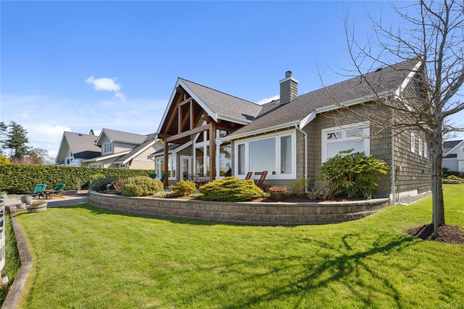Stunning 180° Ocean View Home! Within the exclusive Bluffs neighbourhood perched on a high bank with unobstructed views of the Strait of Georgia, this impeccably maintained 3548 sq ft residence offers breathtaking vistas from nearly every room. Enjoy main-level living with an open and inviting layout, complemented by generous guest accommodations both on the main and upper floor. Recently updated with top-of-the-line finishes, the home features fresh exterior paint, a new high-efficiency furnace, dehumidifier system, gas on-demand hot water, new dishwasher, wine fridge, smart thermostat, kitchen sink and faucet. Whether you're relaxing on the expansive patio or entertaining in the elegant interior, this home seamlessly blends luxury, comfort, and coastal beauty. A private staircase takes you to the best sandy beaches, minutes to the golf course, this home offers something for everyone.