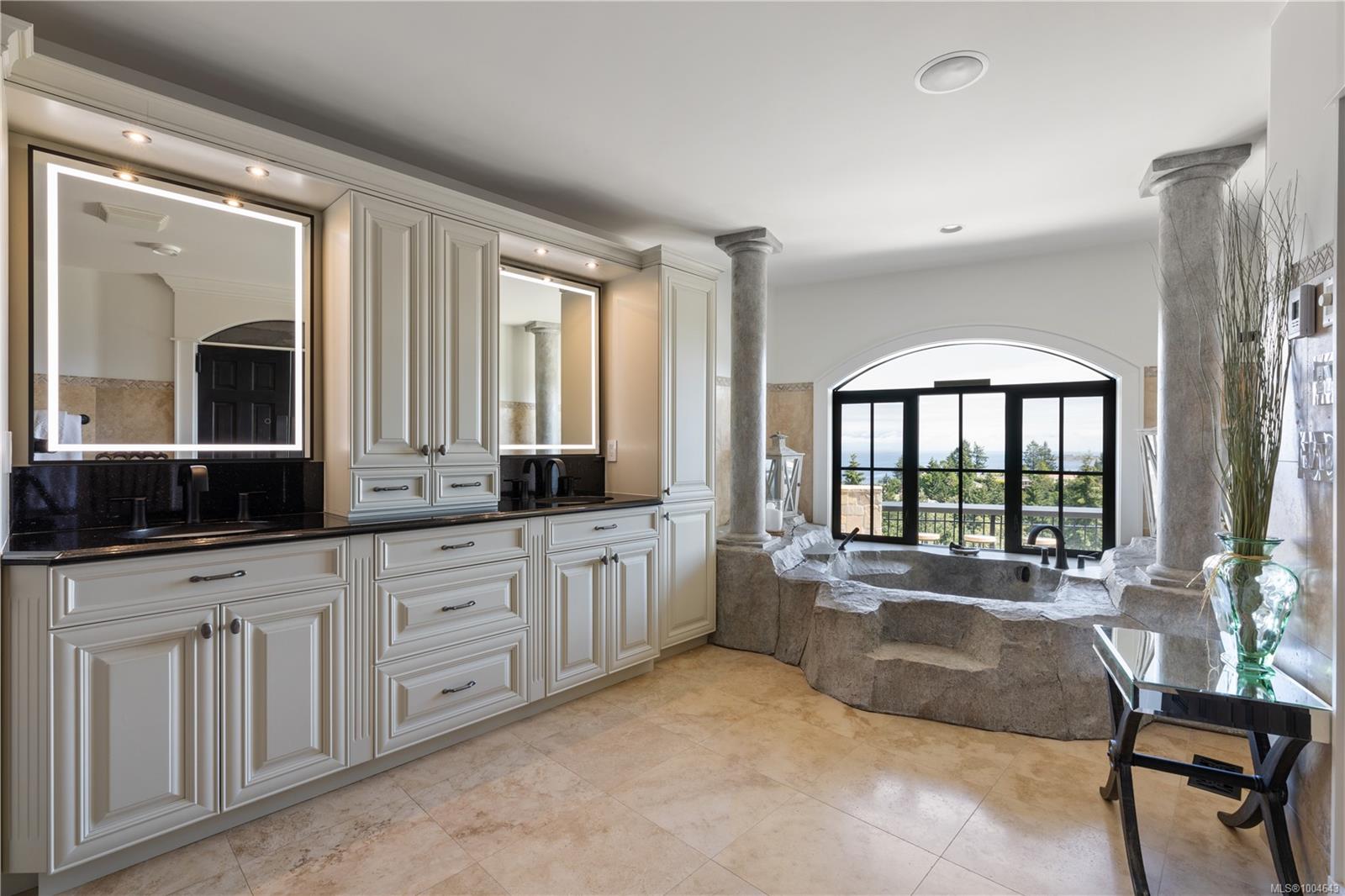 This breathtaking home, boasting panoramic views of the Coastal Mountains, Fairwinds Golf Course, and the Salish Sea, is ideally located in the heart of Nanoose Bay. Thoughtfully designed with striking copper ceilings and artisan metalwork, the home also includes a grotto-inspired pool with steam room and cascading waterfall. The main level also features a well-appointed chef’s kitchen, spacious living area, 150-bottle wine display, double garage, dining room, and a luxurious primary suite with a five-piece ensuite. With engineered hardwood and marble flooring throughout, the lower level has a dedicated entertainment space with bar, projection screen, and 18-foot ceilings, two gas fireplaces, travertine-appointed bathrooms, a built-in bunkroom, and a grand spiral staircase. Outside, enjoy a private courtyard or sit and take in vistas on an expansive deck, 2 fireplaces, hot tubs, custom concrete work, sealed driveway, firepit, and much more. This home truly must be experienced in person