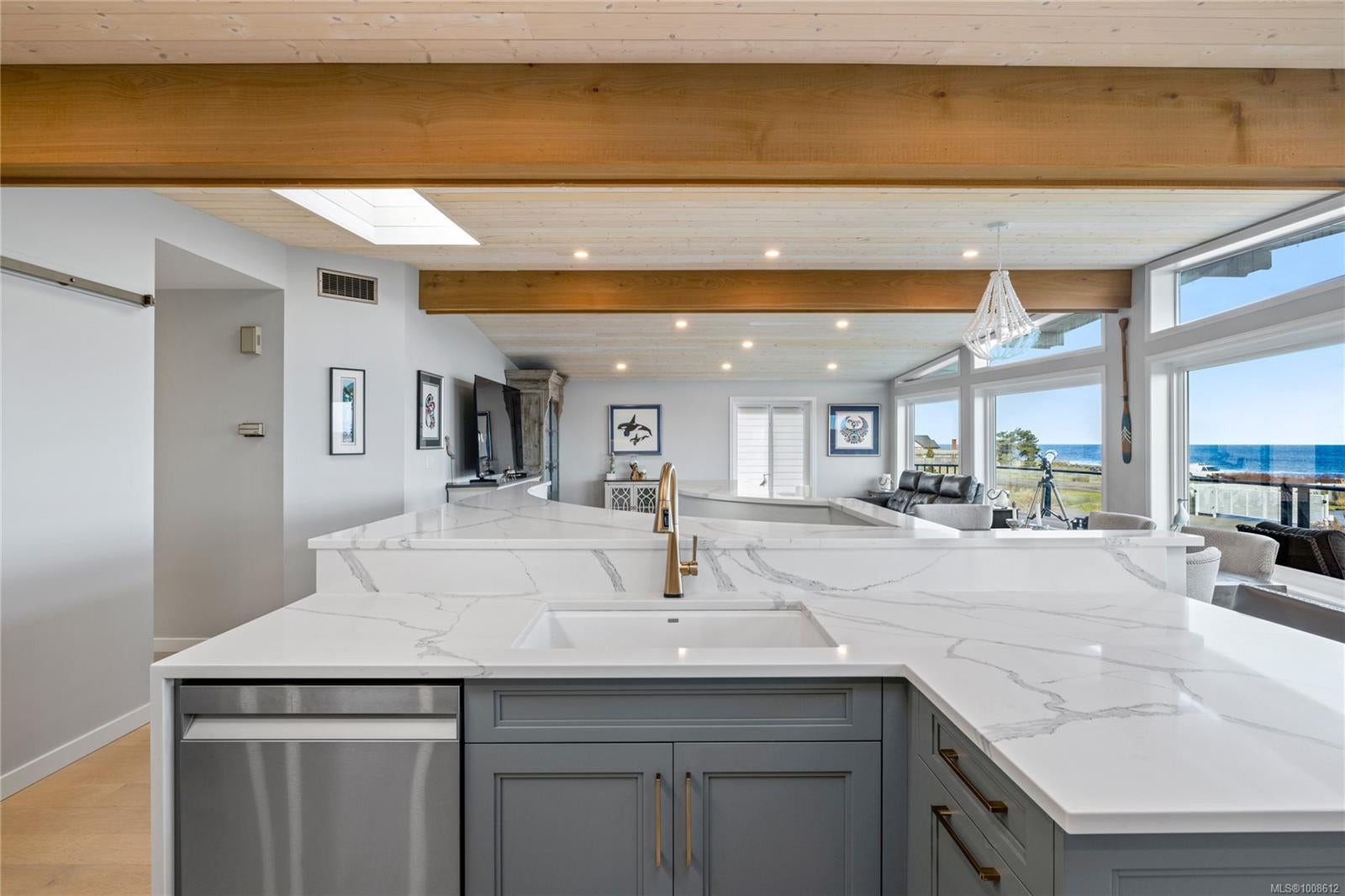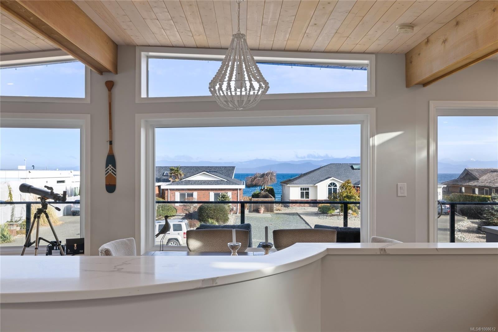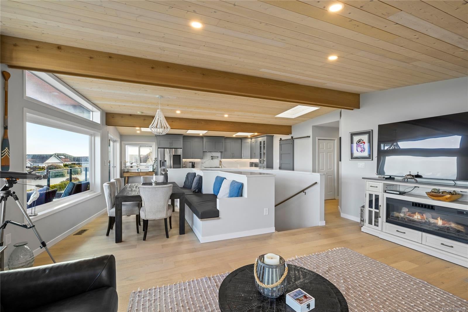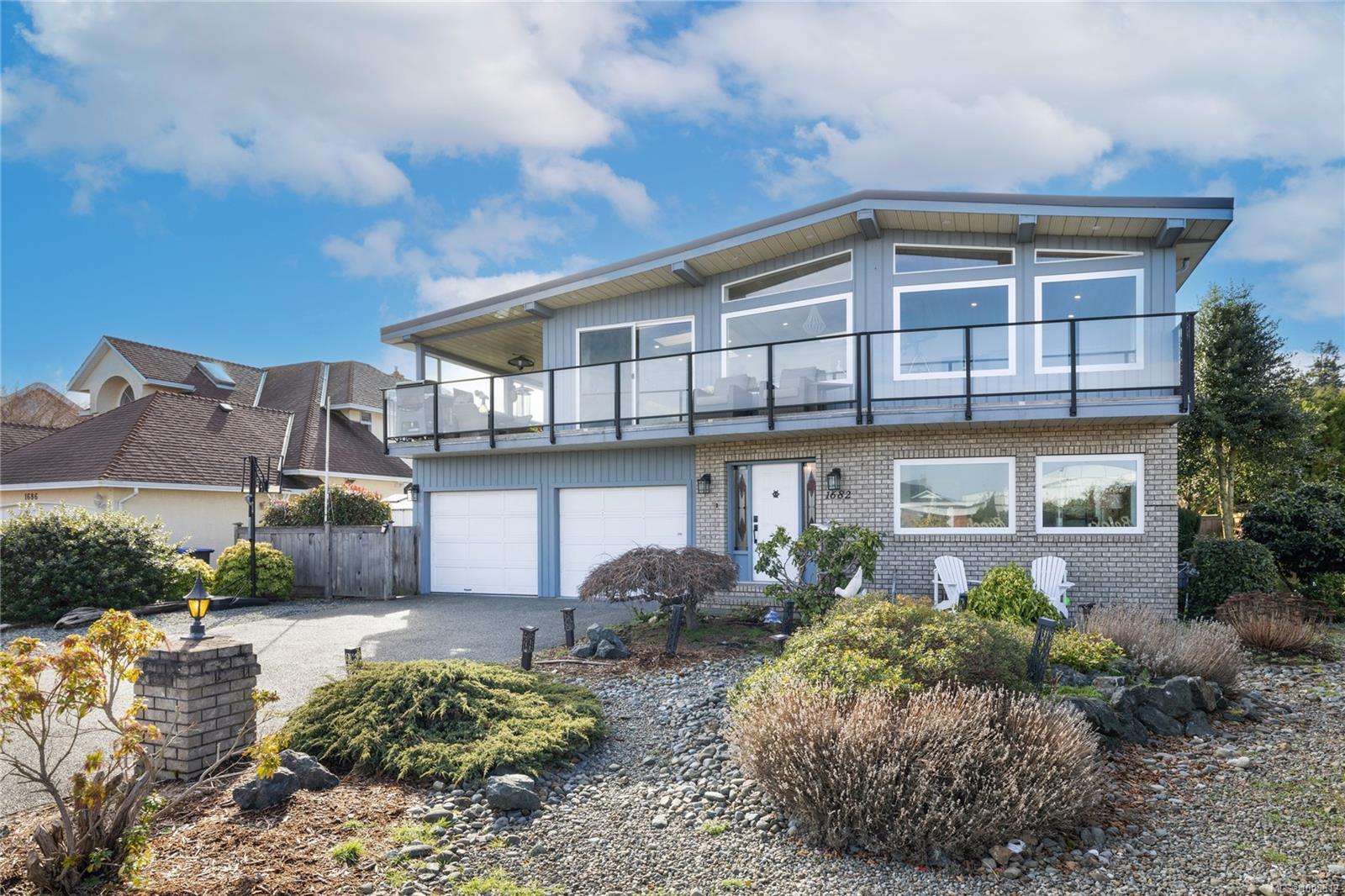 Gorgeous Ocean View Home! Experience modern sophistication in this beautifully updated two-level home, where wide-plank white oak floors and a stunning chef’s kitchen featuring quartz counters, designer cabinets, premium hardware, and a convenient pot filler set the tone. An open, airy layout—with expansive windows and soaring vaulted ceilings—perfectly frames the dramatic ocean and mountain views. Situated in the highly coveted Columbia Beach community, the home offers breathtaking, ocean vistas. With one-acre beach access just steps away, you’ll be on the shore in under 30 seconds, making every day feel like a coastal retreat. The upper-level main living area is strategically positioned to capture panoramic ocean views and unforgettable sunsets. This level also features the primary suite, complete with a three-piece ensuite, as well as an additional bedroom and bathroom. On the lower level, you'll find two more spacious bedrooms, recreation room and a well-appointed bathroom, providing ample space for family and guests. Enjoy outdoor living on an expansive covered deck ideal for entertaining, and retreat to the serene, south-facing backyard landscaped with mature greenery. With perpetual ocean views and a prestigious location, this is your opportunity to embrace the coastal lifestyle you’ve always dreamed of.
