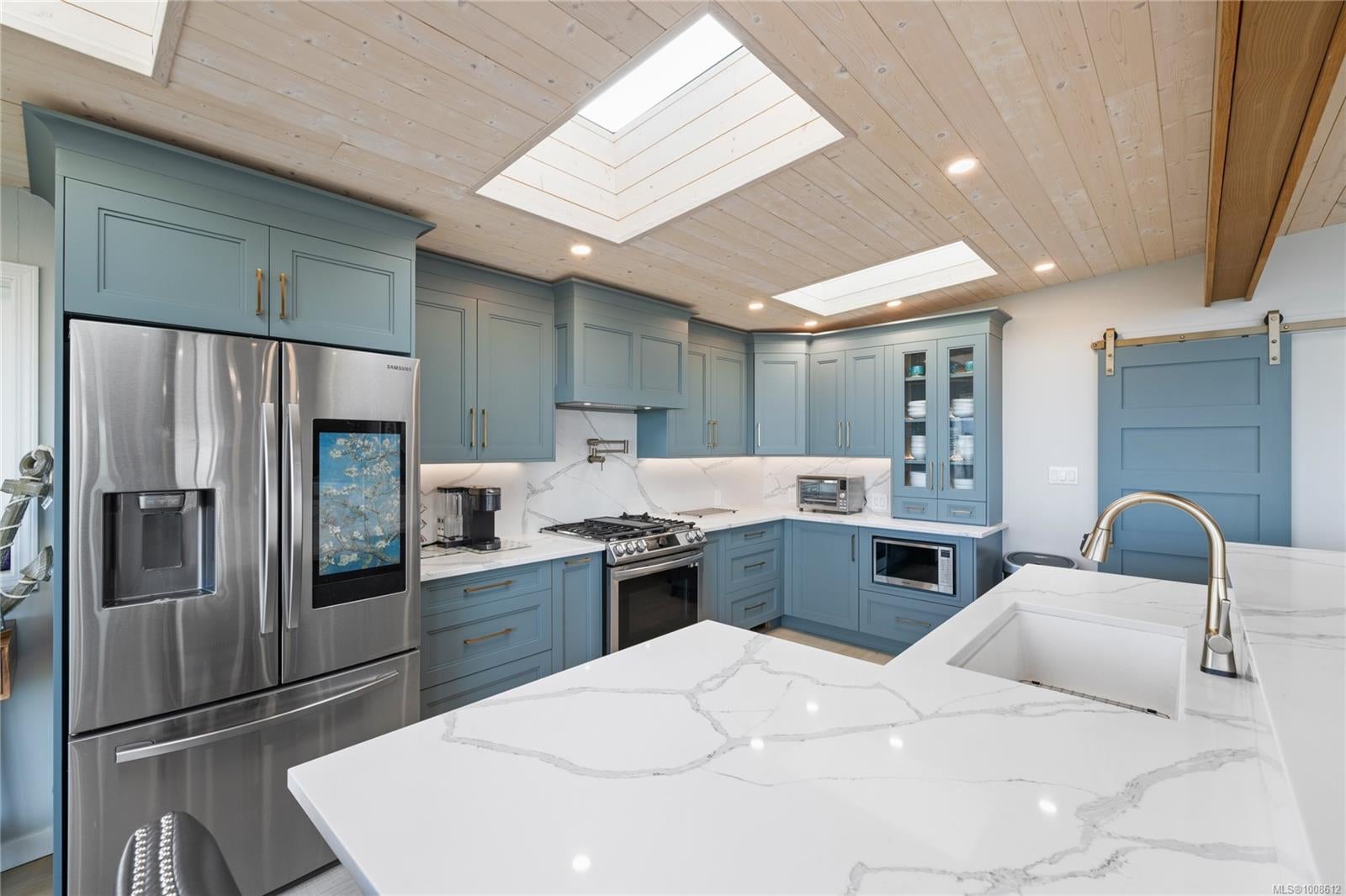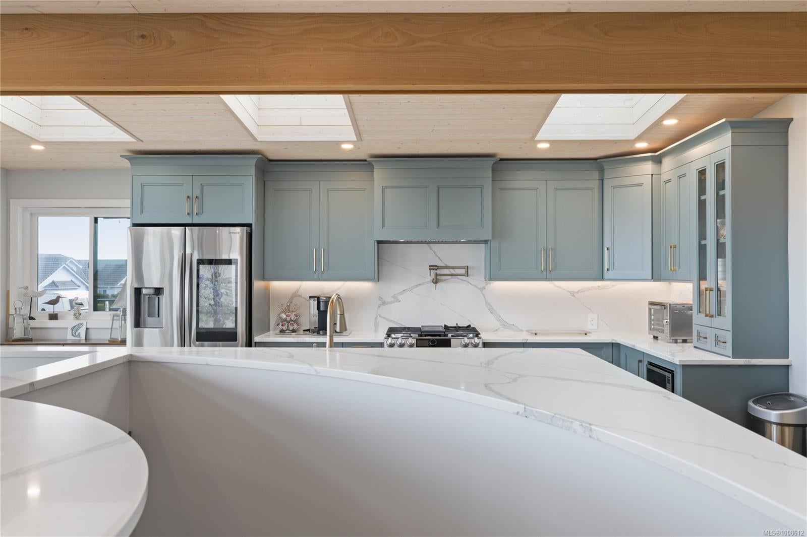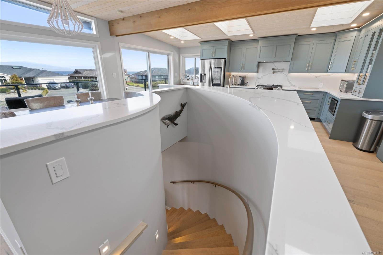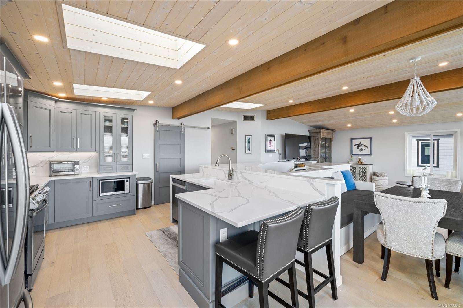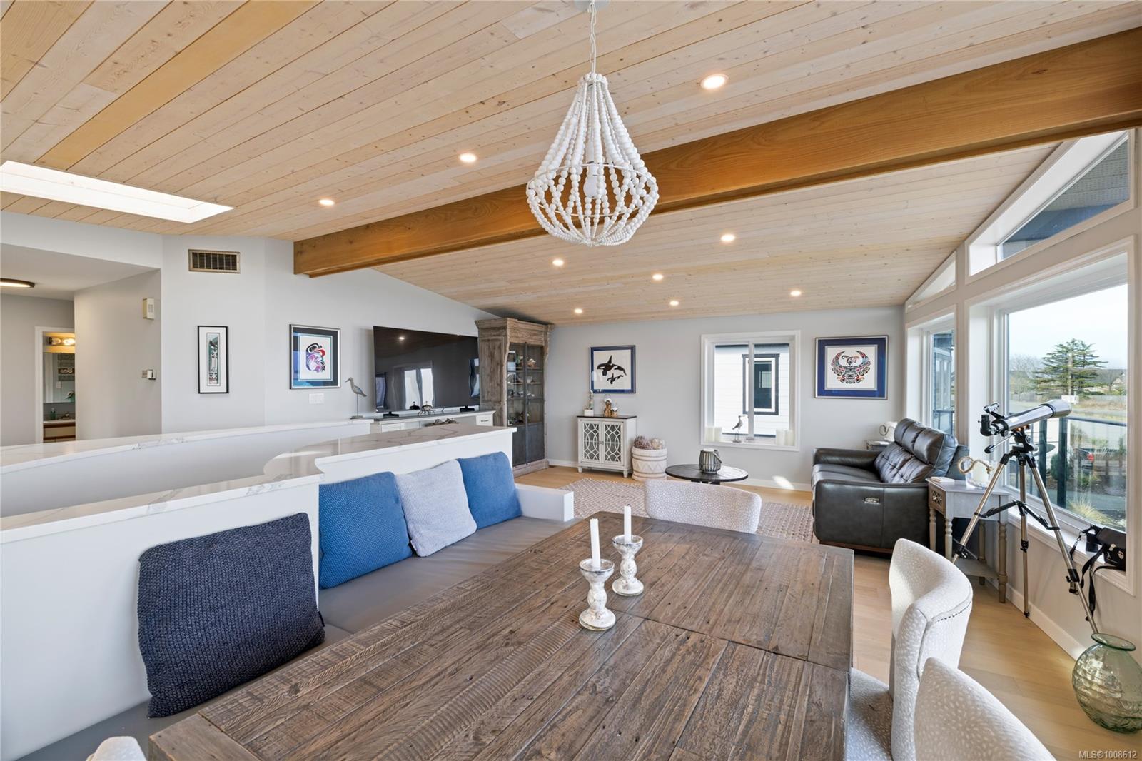 Gorgeous Ocean View Home! Experience modern sophistication in this beautifully updated two-level home, where wide-plank white oak floors and a stunning chef’s kitchen featuring quartz counters, designer cabinets, premium hardware, and a convenient pot filler set the tone. An open, airy layout—with expansive windows and soaring vaulted ceilings—perfectly frames the dramatic ocean and mountain views. Situated in the highly coveted Columbia Beach community, the home offers breathtaking, ocean vistas. With one-acre beach access just steps away, you’ll be on the shore in under 30 seconds, making every day feel like a coastal retreat. The upper-level main living area is strategically positioned to capture panoramic ocean views and unforgettable sunsets. This level also features the primary suite, complete with a three-piece ensuite, as well as an additional bedroom and bathroom. On the lower level, you'll find two more spacious bedrooms, recreation room and a well-appointed bathroom, providing ample space for family and guests. Enjoy outdoor living on an expansive covered deck ideal for entertaining, and retreat to the serene, south-facing backyard landscaped with mature greenery. With perpetual ocean views and a prestigious location, this is your opportunity to embrace the coastal lifestyle you’ve always dreamed of.