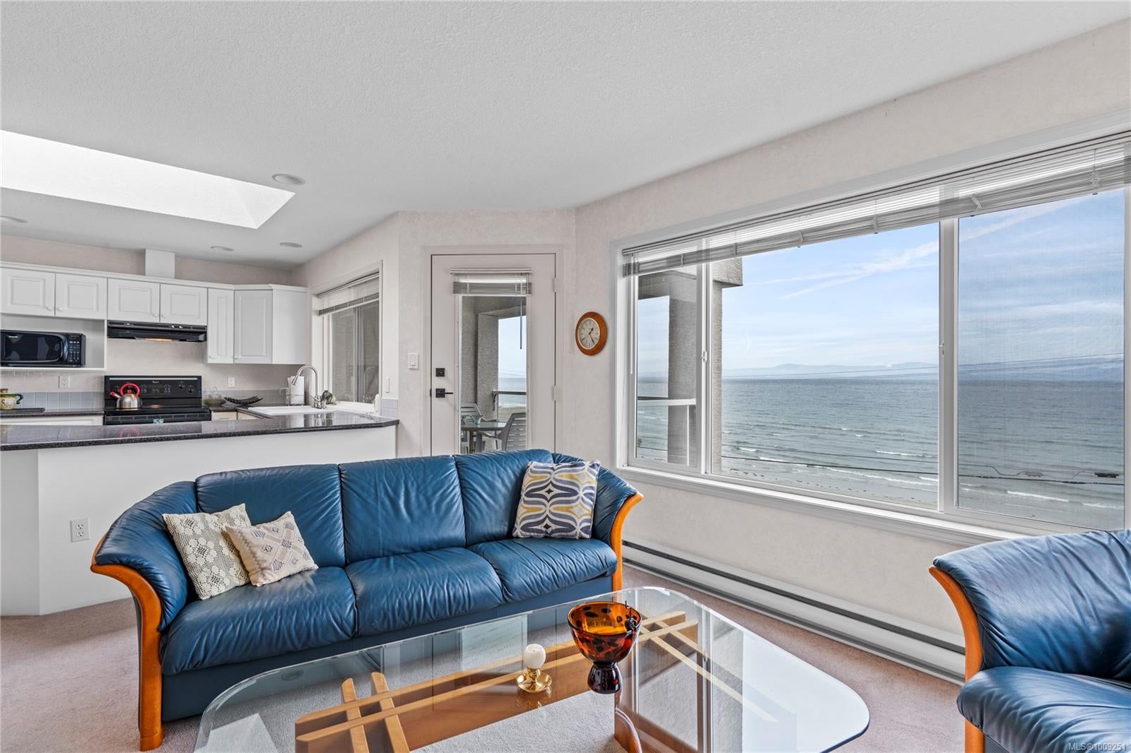 Welcome to this beautifully maintained top-floor condo offering sweeping ocean views and an unbeatable location close to Qualicum Beach. With 2 generous bedrooms and 2 full bathrooms, this spacious home is designed for easy coastal living. Natural light pours through the skylight, creating a bright and airy ambiance throughout the open-concept living and dining areas. Whether you’re sipping your morning coffee or enjoying a sunset, the ocean backdrop sets the perfect tone. This is a rare opportunity to secure a quiet, top-floor unit with elevator access in a well-cared-for building — ideal for downsizers, retirees, or anyone looking to enjoy the best of Vancouver Island living.
