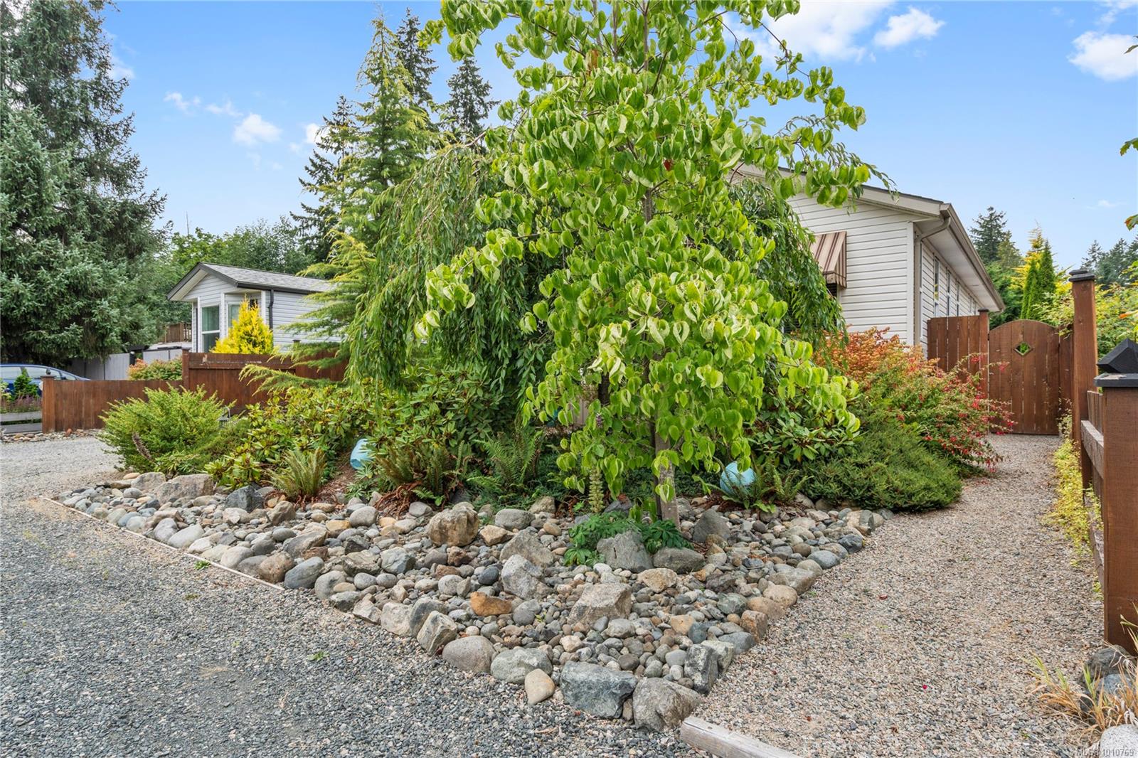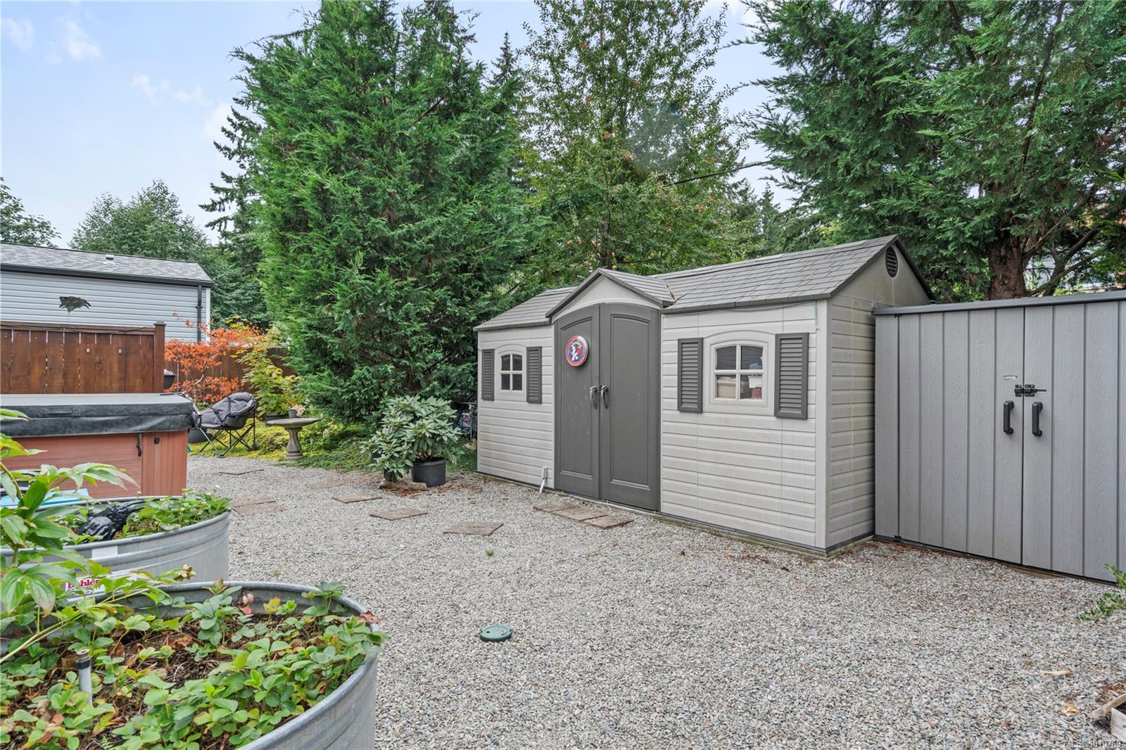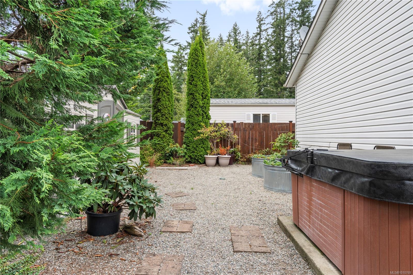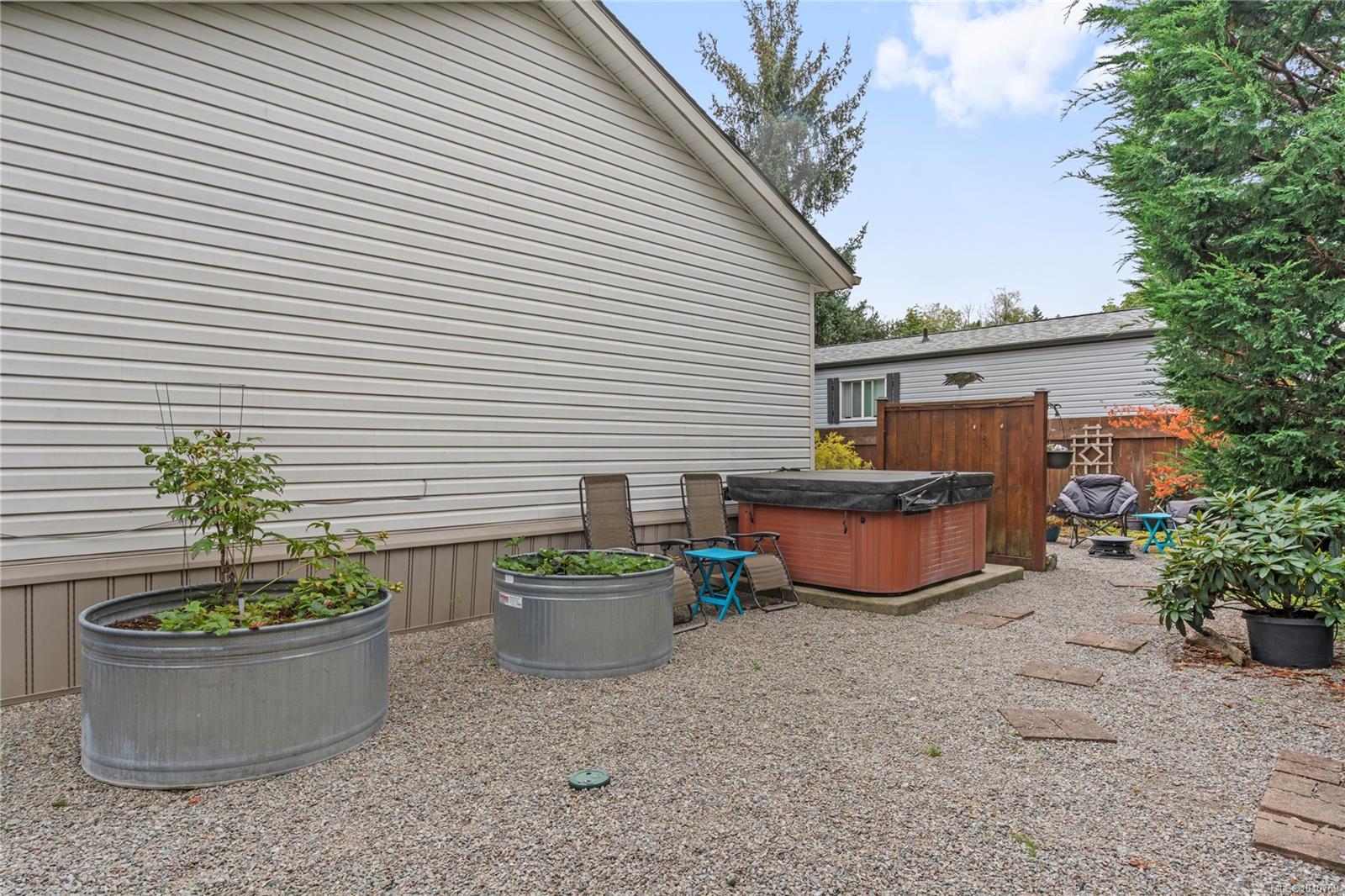 Just minutes from Qualicum Beach this immaculate 1200 sq foot home enjoys a very private setting. This manufactured home offers an open plan concept with a perfect entertaining kitchen and large central island at its heart. The kitchen opens into the dining room and flows into the living area all focused on a propane fireplace. High quality finishes and vaulted ceilings create a sense of sophistication while focusing on the spaciousness of this home. With 2 bedrooms plus office there is room for family or guests to visit and the primary bedroom offers its own private en-suite. Outside is your own oasis with a large deck and patio area, plus a hot tub surrounded by a mature landscaped yard. There is also a small workshop with power plus a shed and a fully fenced yard. This is outdoor living at its best! The home is located in a quiet, family and pet friendly park with low pad fees of $360. Per month. Book your viewing today!