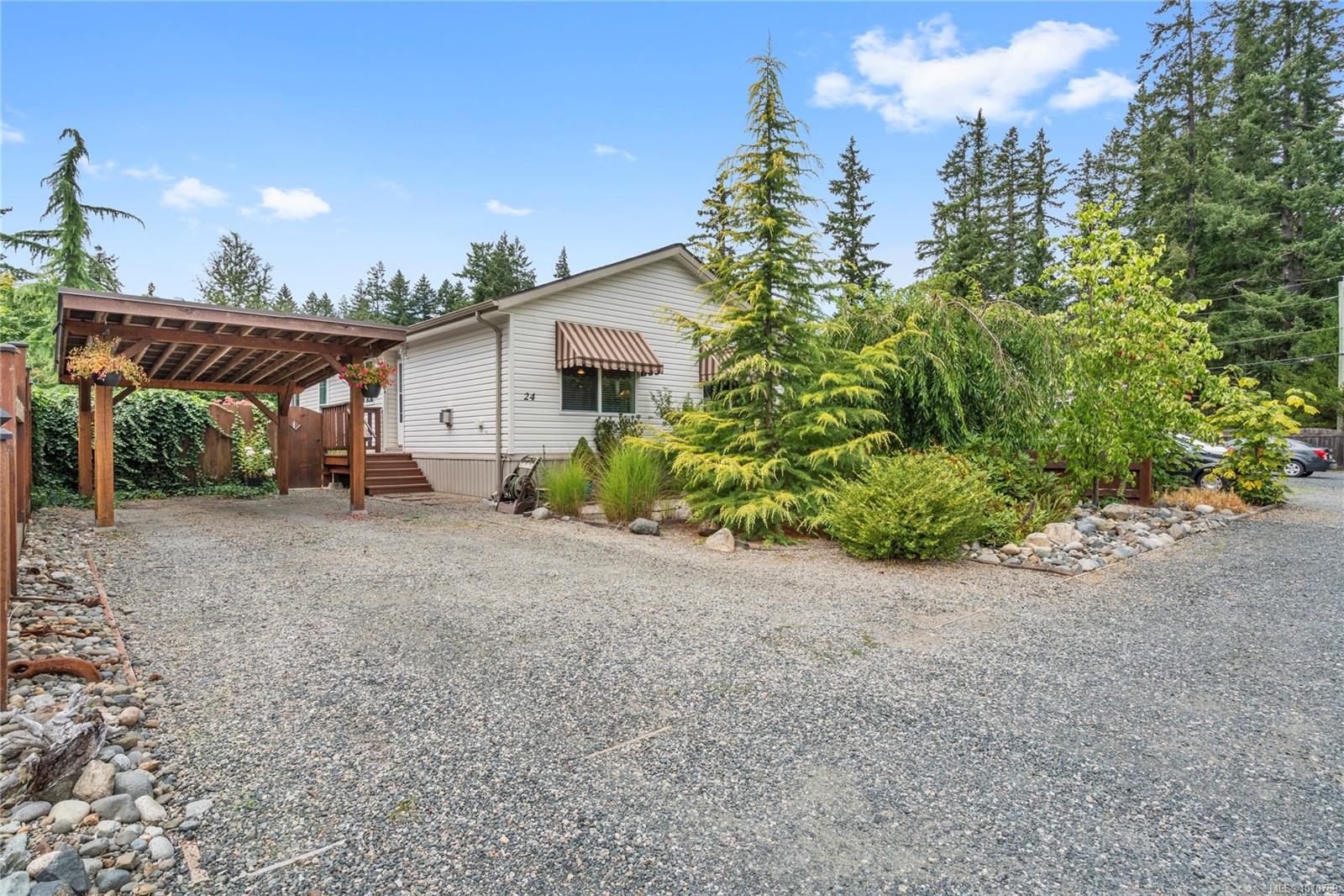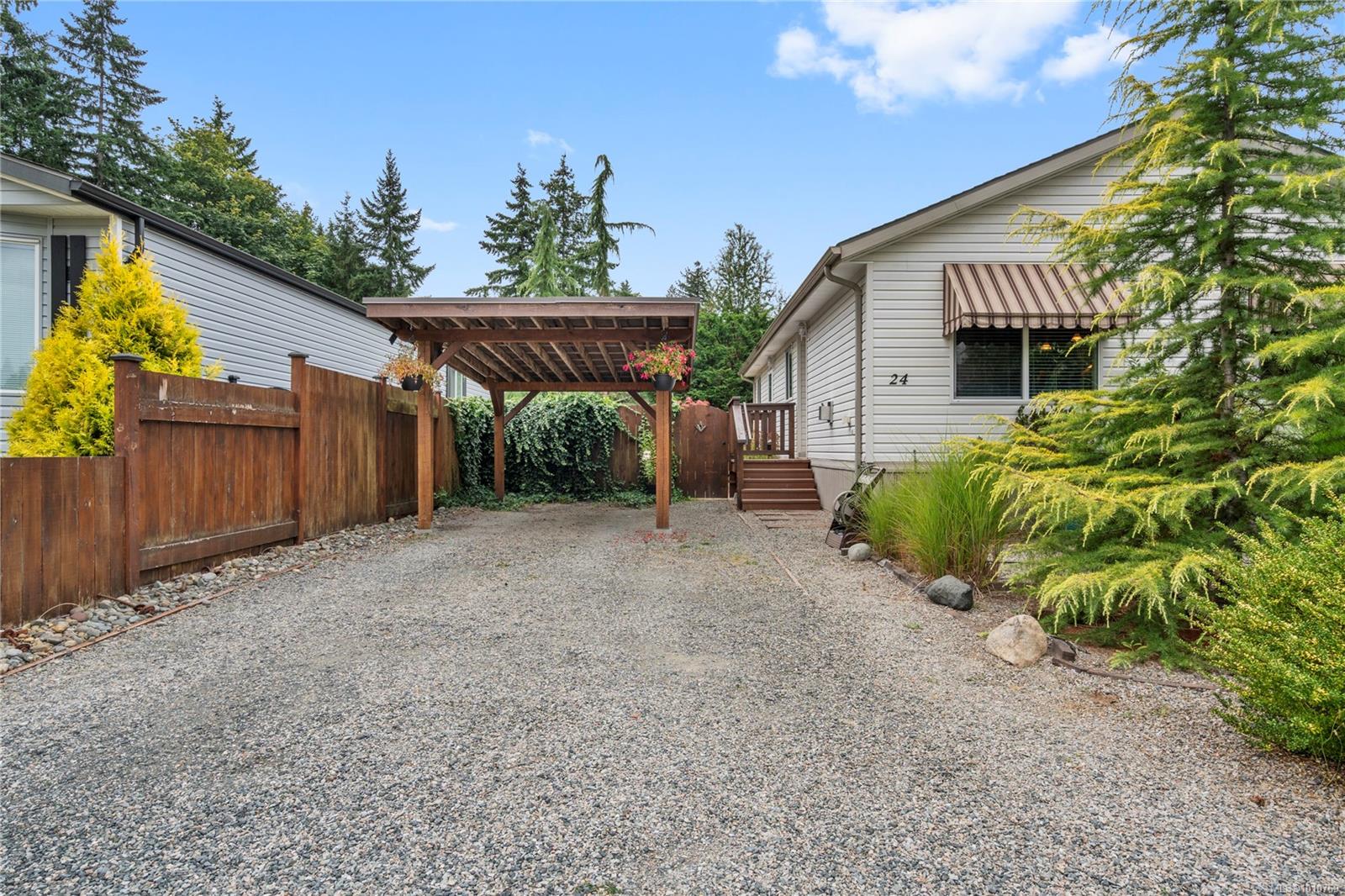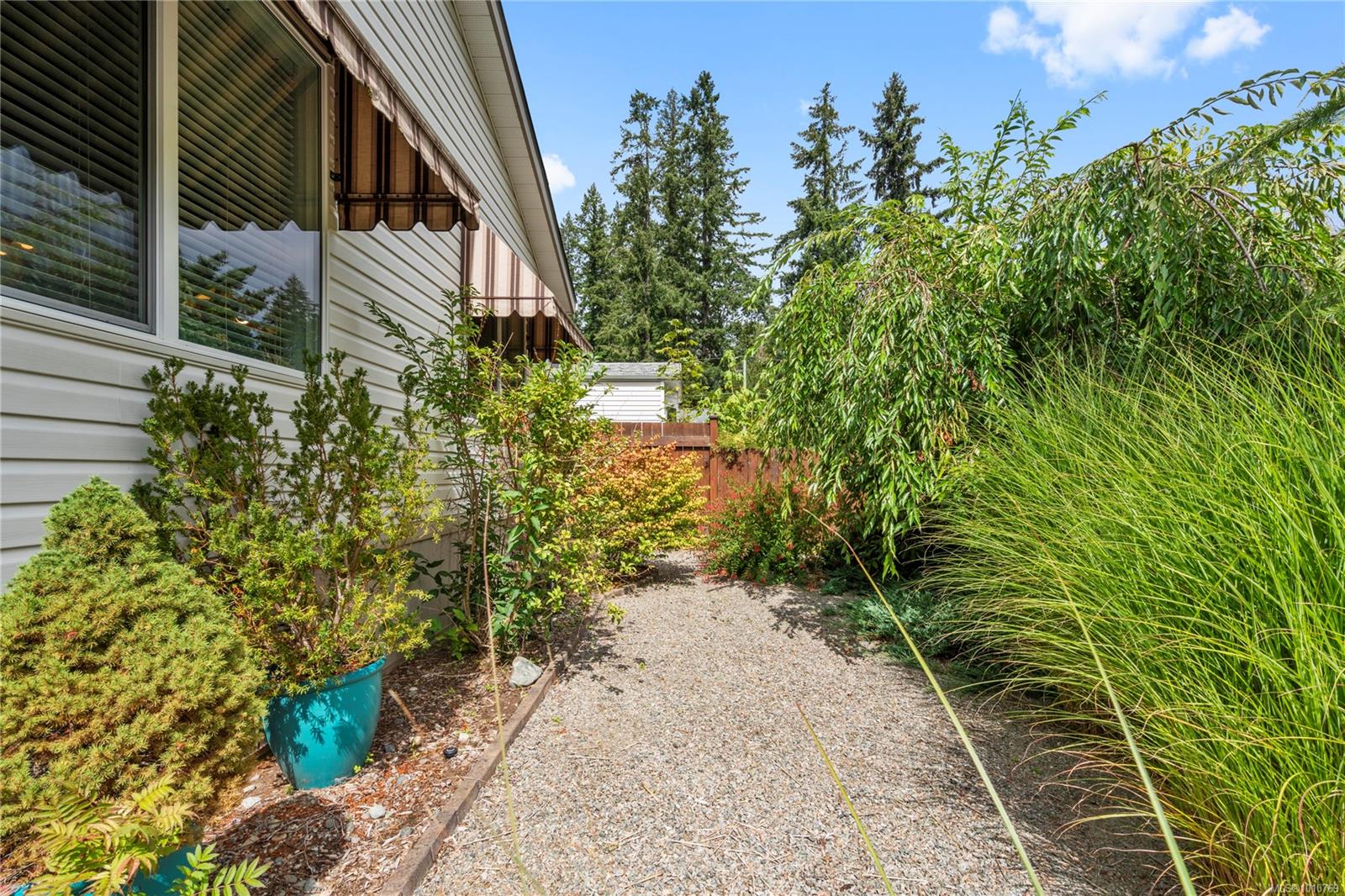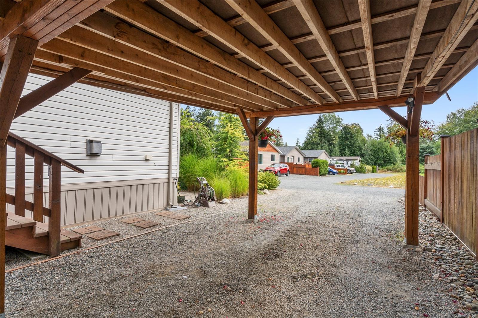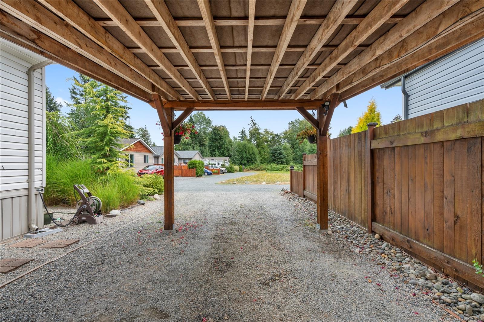 Just minutes from Qualicum Beach this immaculate 1200 sq foot home enjoys a very private setting. This manufactured home offers an open plan concept with a perfect entertaining kitchen and large central island at its heart. The kitchen opens into the dining room and flows into the living area all focused on a propane fireplace. High quality finishes and vaulted ceilings create a sense of sophistication while focusing on the spaciousness of this home. With 2 bedrooms plus office there is room for family or guests to visit and the primary bedroom offers its own private en-suite. Outside is your own oasis with a large deck and patio area, plus a hot tub surrounded by a mature landscaped yard. There is also a small workshop with power plus a shed and a fully fenced yard. This is outdoor living at its best! The home is located in a quiet, family and pet friendly park with low pad fees of $360. Per month. Book your viewing today!