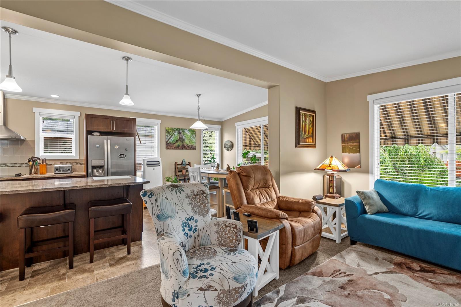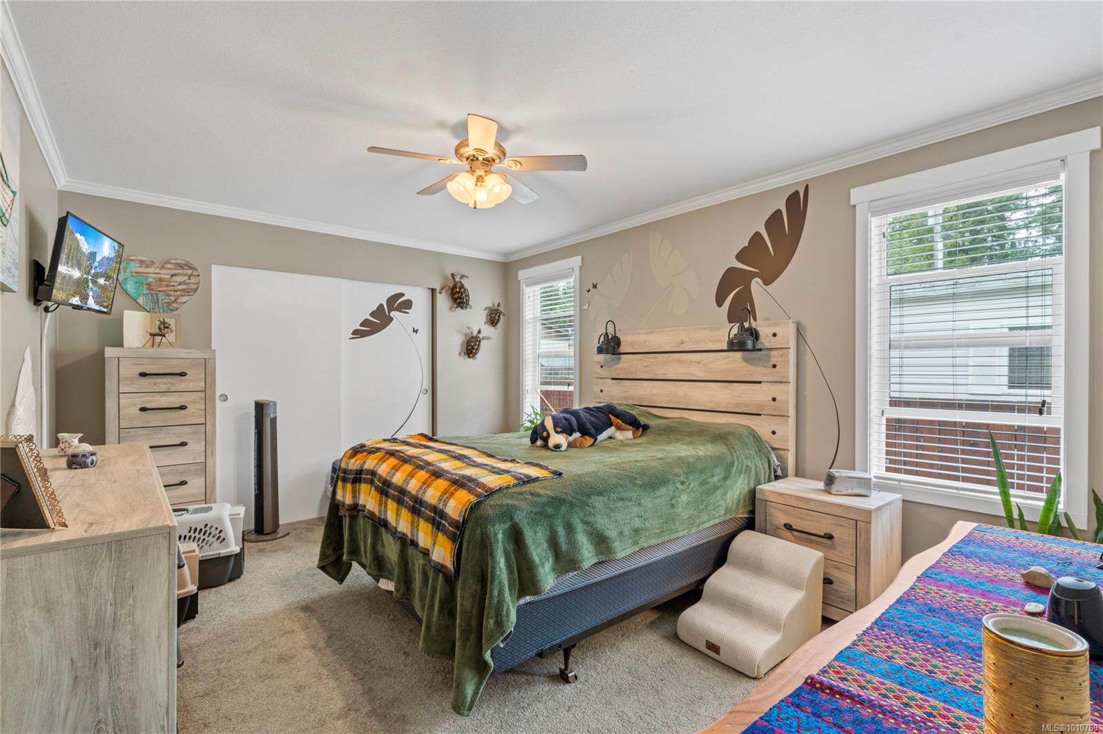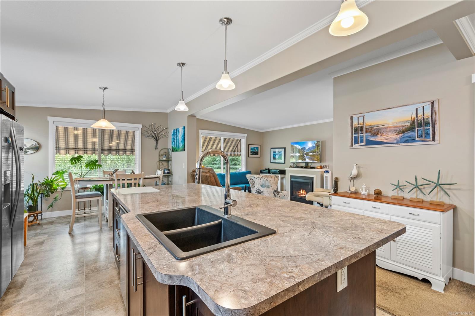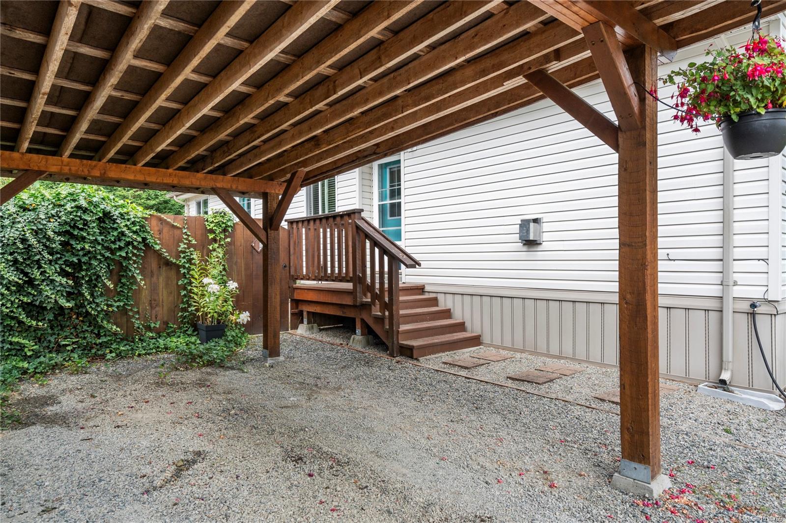 Just minutes from Qualicum Beach this immaculate 1200 sq foot home enjoys a very private setting. This manufactured home offers an open plan concept with a perfect entertaining kitchen and large central island at its heart. The kitchen opens into the dining room and flows into the living area all focused on a propane fireplace. High quality finishes and vaulted ceilings create a sense of sophistication while focusing on the spaciousness of this home. With 2 bedrooms plus office there is room for family or guests to visit and the primary bedroom offers its own private en-suite. Outside is your own oasis with a large deck and patio area, plus a hot tub surrounded by a mature landscaped yard. There is also a small workshop with power plus a shed and a fully fenced yard. This is outdoor living at its best! The home is located in a quiet, family and pet friendly park with low pad fees of $360. Per month. Book your viewing today!