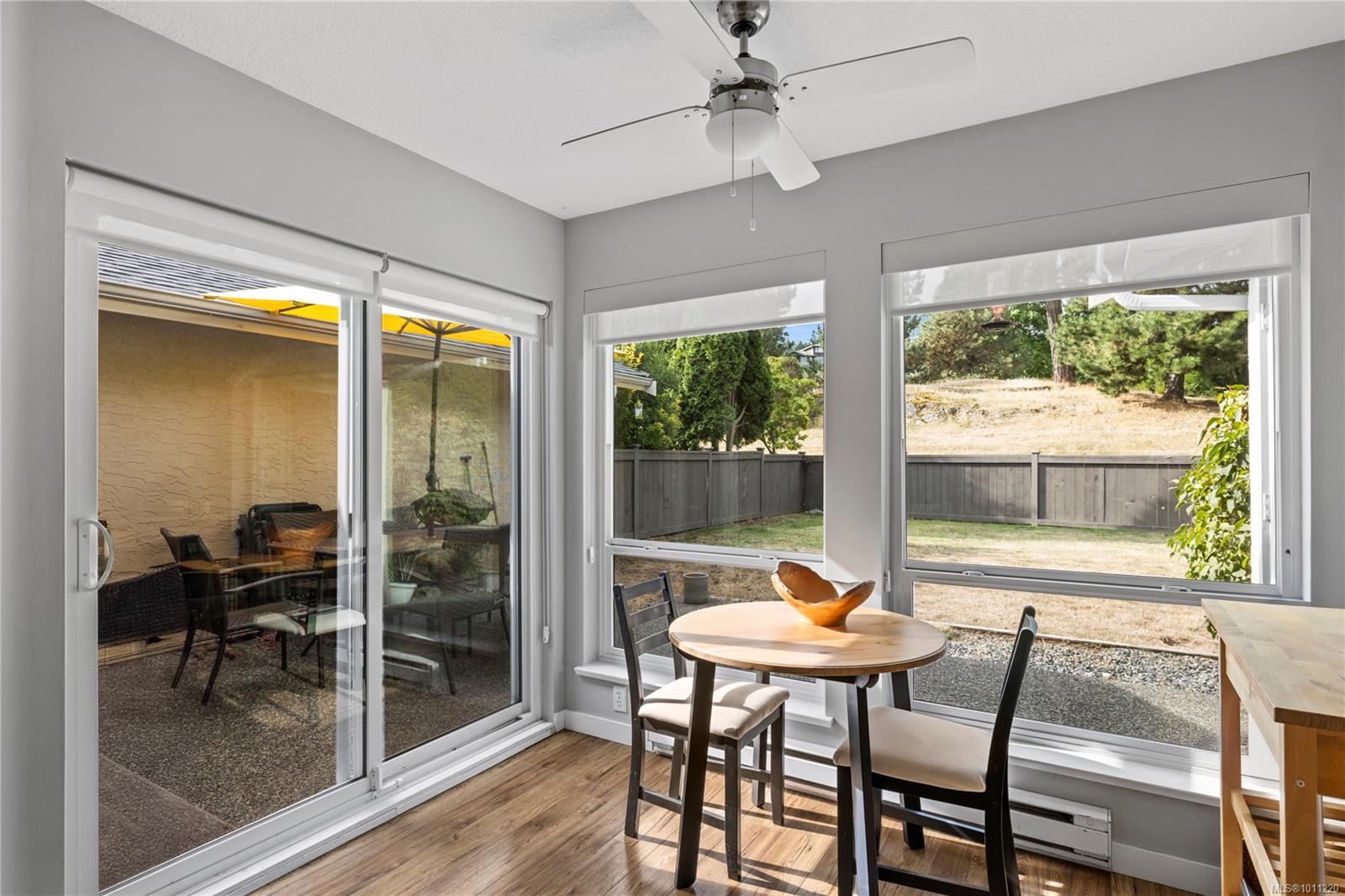 Welcome to Glen Eagle at Fairwinds – a sought-after 55+ gated community in beautiful Nanoose Bay. This rarely available end unit patio home offers extra windows for abundant natural light and serene views. Thoughtfully updated, the single-level floor plan features 2 bedrooms, 2 bathrooms, and a den—a unique bonus in this enclave. Enjoy indoor-outdoor living with both a private front courtyard and a peaceful back patio. Ideally situated just steps from Fairwinds Golf Course, the Wellness Centre, scenic hiking trails, and Brickyard Bay, this home supports a true “lock and go” lifestyle. Whether you're downsizing or seeking a tranquil retreat, this is a rare opportunity in a community poised for exciting future enhancements. A perfect blend of comfort, convenience, and coastal charm