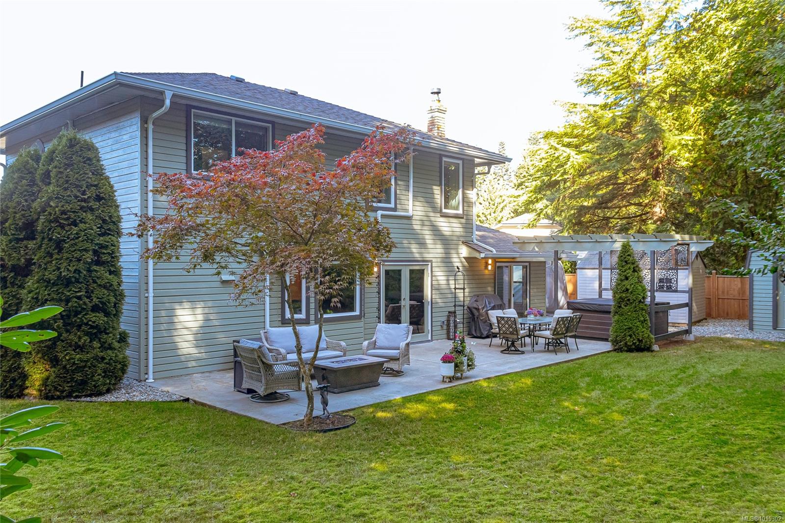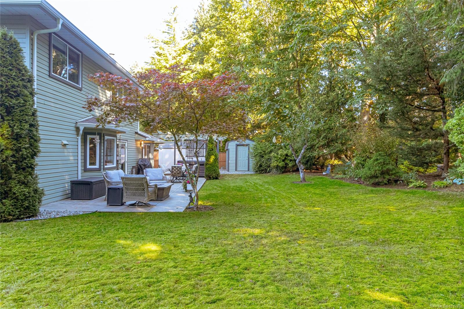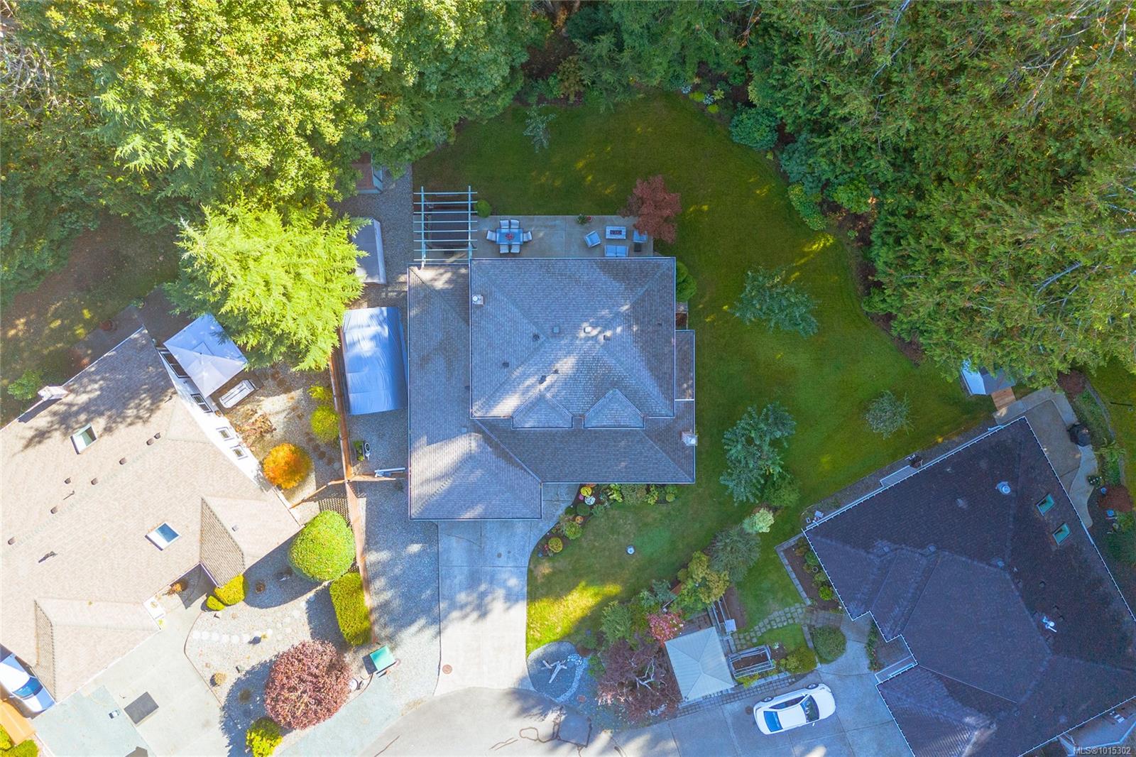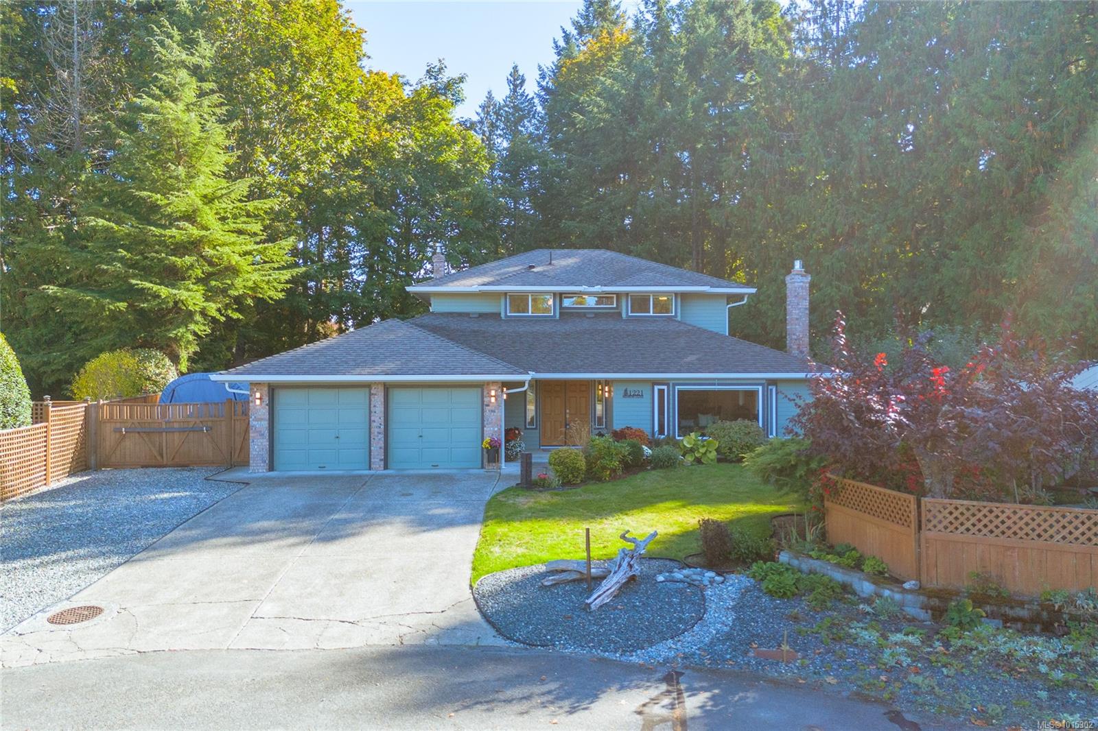 Nestled on a quiet cul-de-sac in coveted Eaglecrest, surrounded by fine homes, this rare two-storey offers modern comfort in a serene, park-like setting. The pie-shaped .23-acre lot is framed by lush gardens and a backdrop of tall firs, creating exceptional privacy. A sunny rear yard, RV parking, and two garden sheds add to the practicality, while sandy beaches, Eaglecrest Golf Club, and scenic walking trails are only minutes away. Inside, the home spans 2,247 sq ft with 3 bedrooms + den and 3 baths, designed to balance elegant formal rooms with relaxed family living. A welcoming foyer introduces a refined living room and adjoining dining room—perfect for entertaining. At the heart of the home, the spacious kitchen with pantry, eating bar, and bright bay-window nook opens seamlessly to the inviting family room where a feature fireplace sets a warm focal point. Patio doors extend the living space outdoors to a large concrete terrace and hot-tub gazebo, ideal for year-round enjoyment. A generous den or office with patio access, powder room, and practical laundry/mudroom complete the main floor. Upstairs, the private primary suite includes a walk-in closet and refreshed 3-pc ensuite. Two additional bedrooms share a stylish, updated 4-pc bath with tiled tub surround. Thoughtful updates enhance both comfort and style: refreshed kitchen surfaces with quality appliances (induction range, fridge), renovated ensuite with renewed main and powder baths, hardwood flooring in living/dining areas, new carpet on stairs and upper level, newer windows with treatments, updated exterior with enhanced front door and lighting, newer roof, efficient heat pump, hot water tank, and hot tub. Set in a quiet, walkable neighbourhood close to Qualicum Beach and Parksville, this Eaglecrest gem offers the perfect blend of timeless appeal, practical updates, and a welcoming setting to live, work, and play—indoors and out. Measurements are approximate; verify if important.