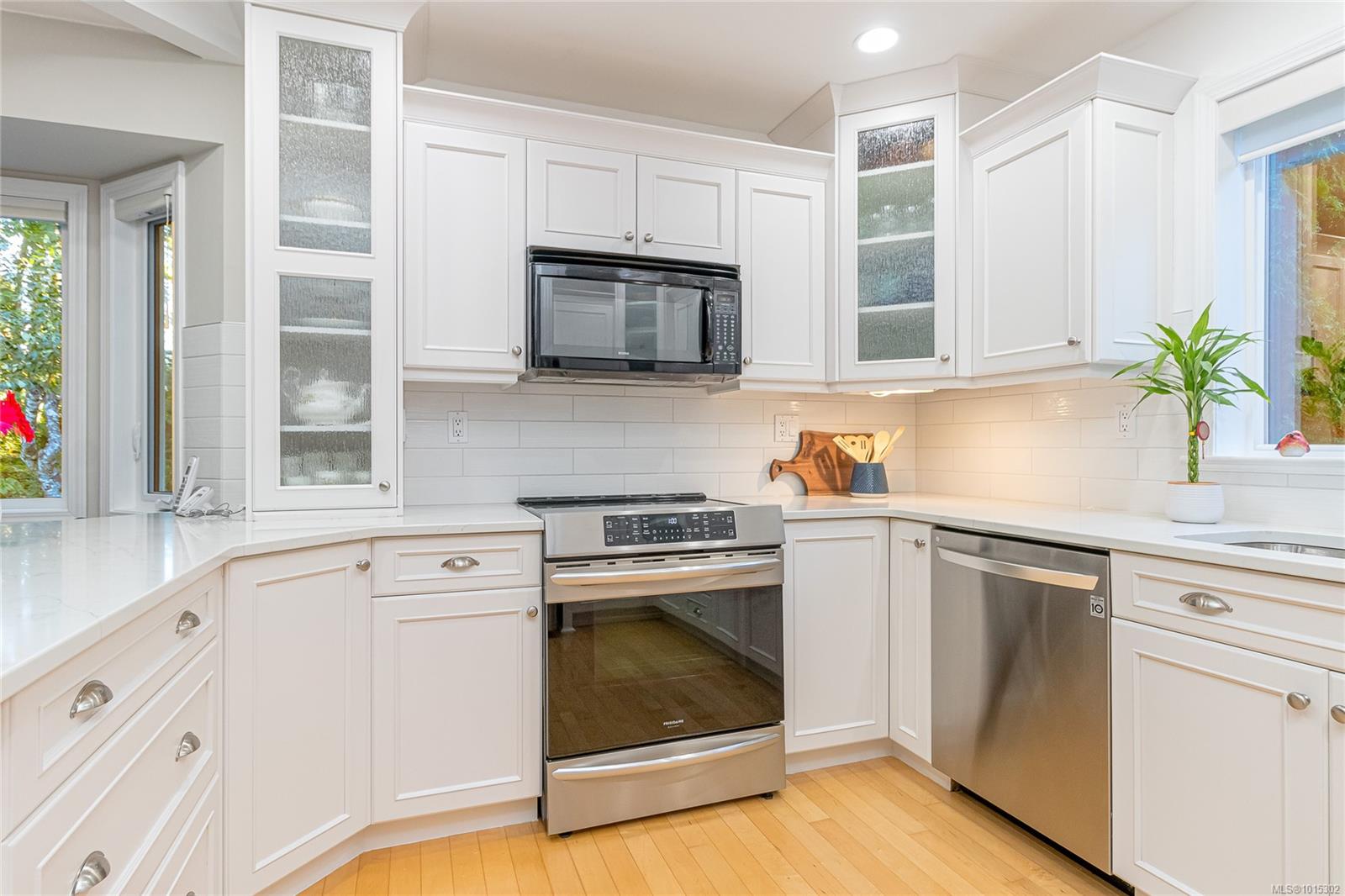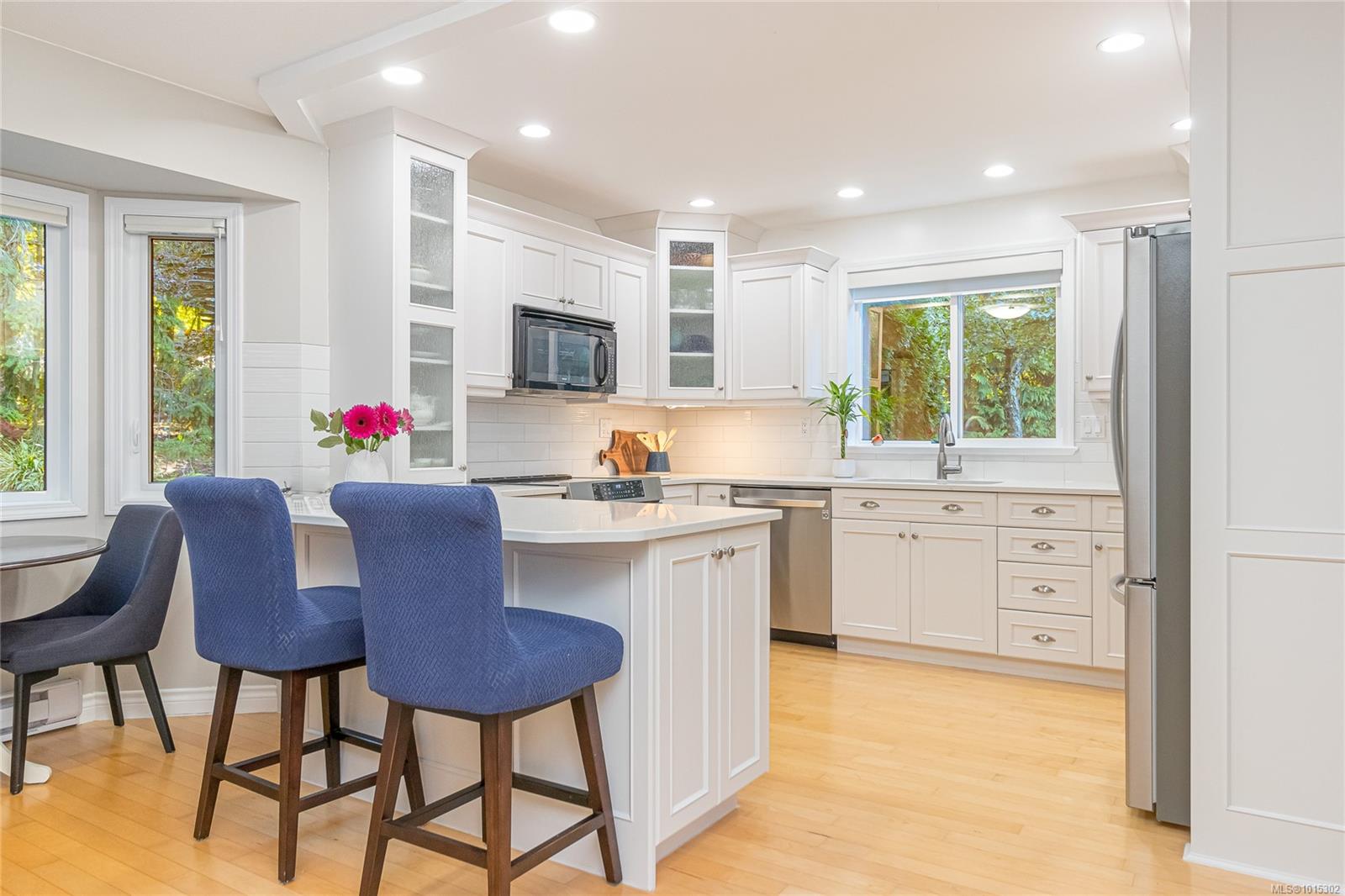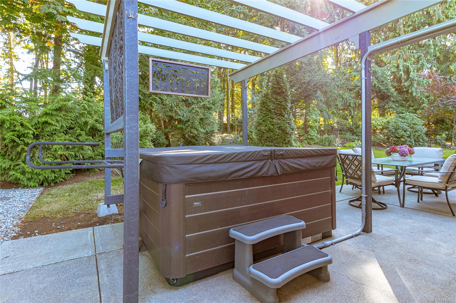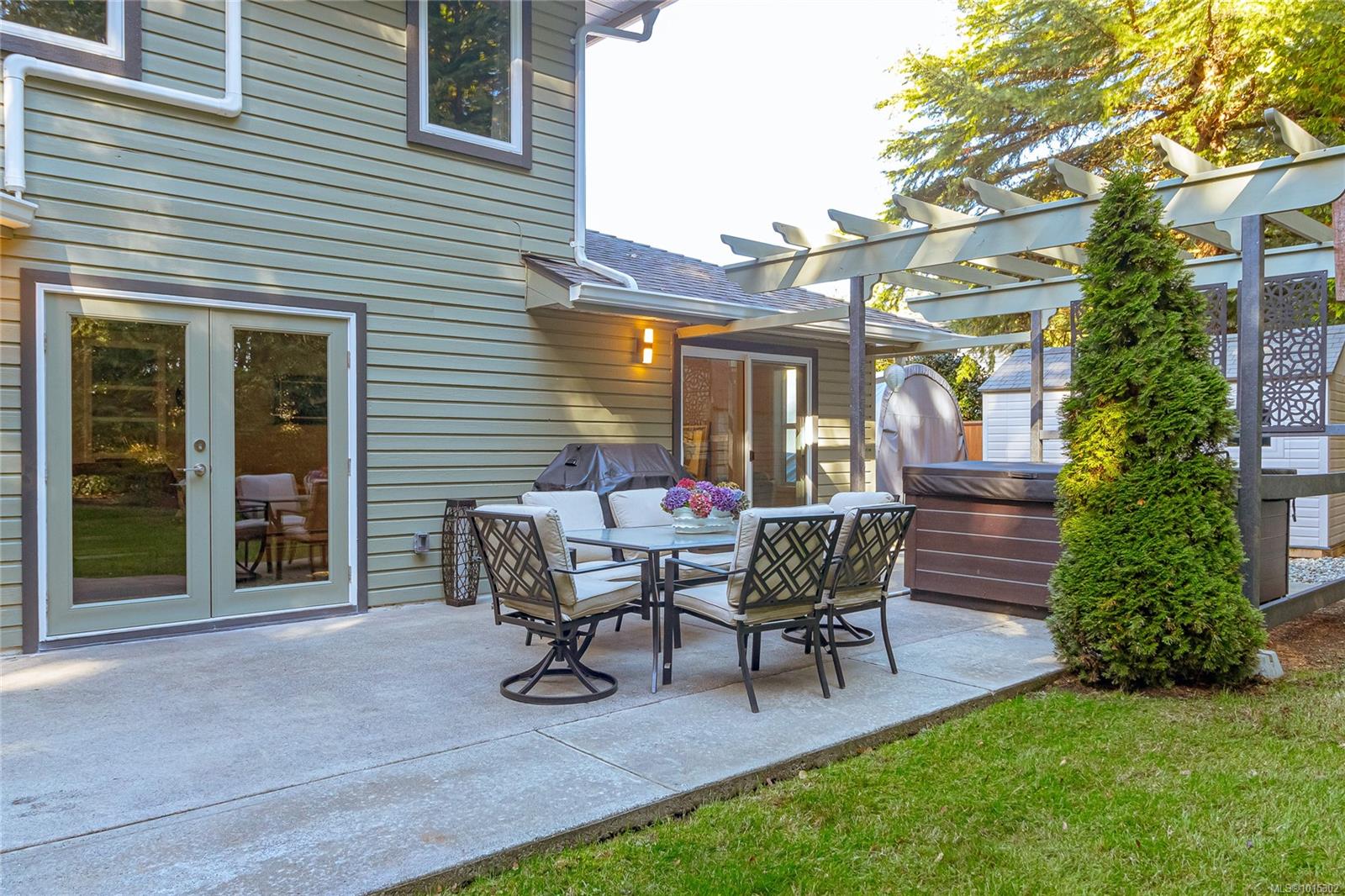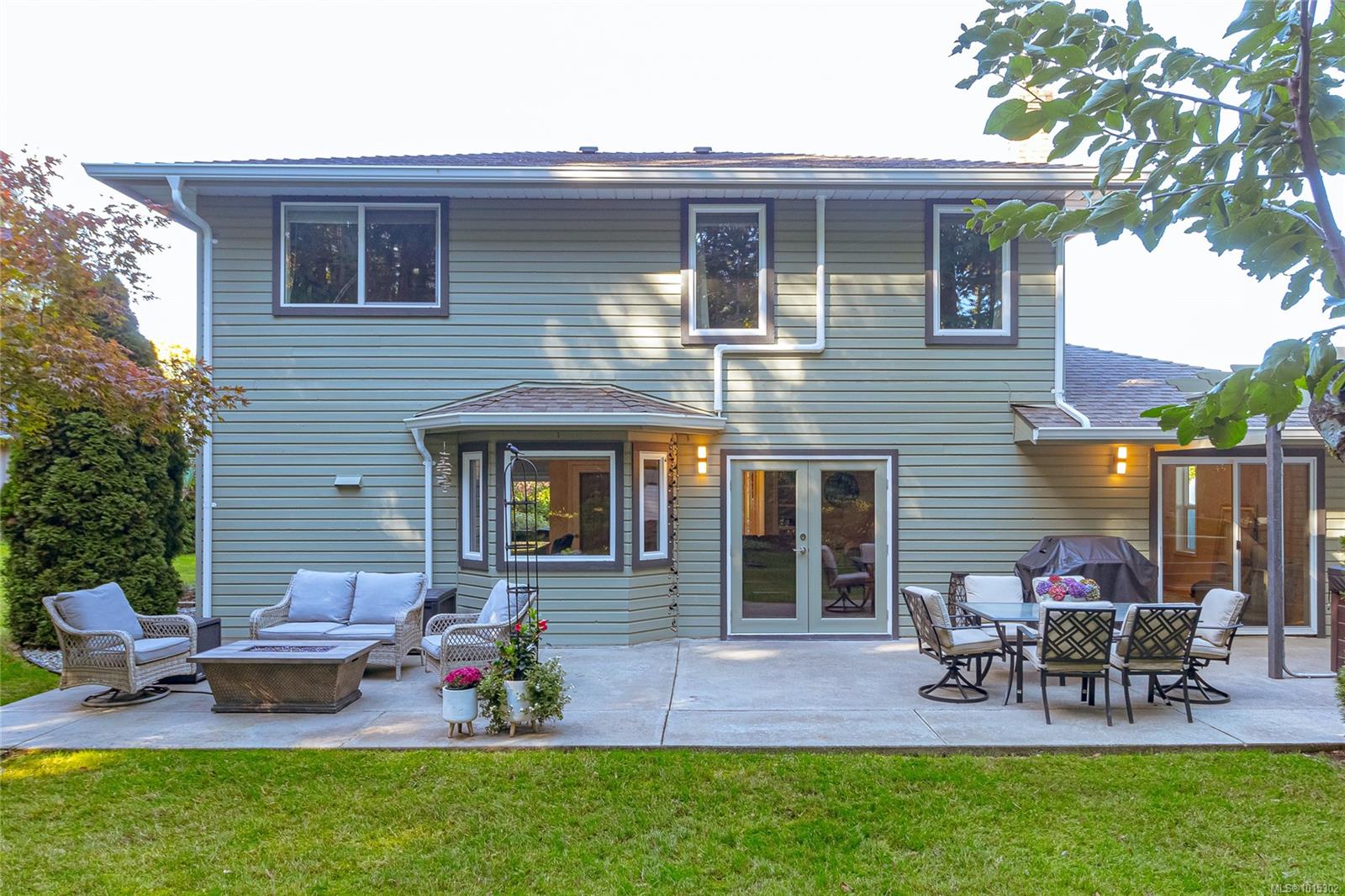 Nestled on a quiet cul-de-sac in coveted Eaglecrest, surrounded by fine homes, this rare two-storey offers modern comfort in a serene, park-like setting. The pie-shaped .23-acre lot is framed by lush gardens and a backdrop of tall firs, creating exceptional privacy. A sunny rear yard, RV parking, and two garden sheds add to the practicality, while sandy beaches, Eaglecrest Golf Club, and scenic walking trails are only minutes away. Inside, the home spans 2,247 sq ft with 3 bedrooms + den and 3 baths, designed to balance elegant formal rooms with relaxed family living. A welcoming foyer introduces a refined living room and adjoining dining room—perfect for entertaining. At the heart of the home, the spacious kitchen with pantry, eating bar, and bright bay-window nook opens seamlessly to the inviting family room where a feature fireplace sets a warm focal point. Patio doors extend the living space outdoors to a large concrete terrace and hot-tub gazebo, ideal for year-round enjoyment. A generous den or office with patio access, powder room, and practical laundry/mudroom complete the main floor. Upstairs, the private primary suite includes a walk-in closet and refreshed 3-pc ensuite. Two additional bedrooms share a stylish, updated 4-pc bath with tiled tub surround. Thoughtful updates enhance both comfort and style: refreshed kitchen surfaces with quality appliances (induction range, fridge), renovated ensuite with renewed main and powder baths, hardwood flooring in living/dining areas, new carpet on stairs and upper level, newer windows with treatments, updated exterior with enhanced front door and lighting, newer roof, efficient heat pump, hot water tank, and hot tub. Set in a quiet, walkable neighbourhood close to Qualicum Beach and Parksville, this Eaglecrest gem offers the perfect blend of timeless appeal, practical updates, and a welcoming setting to live, work, and play—indoors and out. Measurements are approximate; verify if important.
