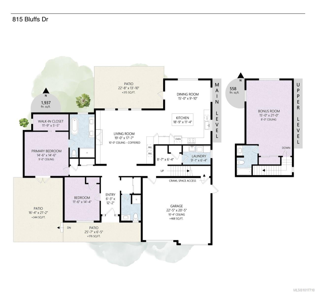 Luxury Coastal Living in The Bluffs! Experience nearly 2,500 sq. ft. of refined seaside living in one of the area’s most desirable communities. Thoughtfully upgraded throughout, this elegant home blends timeless design with modern comforts. The gourmet kitchen features quartz countertops, a WOLF oven/range with convection microwave, Sub-Zero refrigerator, and pot filler. An inviting living room with stone-clad fireplace, custom built-ins, and a bar with Sub-Zero wine and beverage fridges makes entertaining effortless. The primary suite offers a spa-like ensuite with double vanities, soaker tub, and glass shower, while a versatile upstairs bonus room with full bath provides space for guests, office, or hobby use. Even the garage has epoxy floors, added storage, and workbench space. Recent upgrades include a new heat pump, high-efficiency furnace, on-demand hot water, and fresh interior and exterior paint. Outdoors, a private patio with gas hook up for a fire table, overhead heater, and water feature creates a tranquil retreat. The front patio features a gorgeous fire bowl with a beautiful courtyard. Just steps from sandy beaches and world-class golf, this home captures the best of Vancouver Island’s coastal lifestyle.
