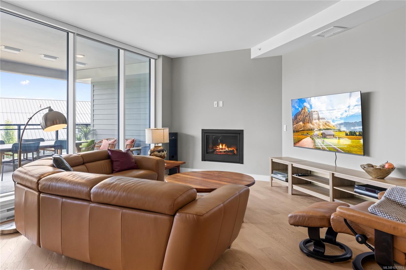 Embrace West Coast living in this beautifully appointed 2-bedroom + den condo at The Westerly, located in the prestigious Fairwinds community. This spacious and light-filled suite features 9' ceilings, a gas fireplace for cozy evenings, and a large private patio offering panoramic views of the marina and coastal landscape. The open-concept design is both functional and stylish, with two generously sized bedrooms—each with its own ensuite—plus a versatile den perfect for a home office or guest space. The primary suite includes a walk-in closet and a luxurious ensuite bath with premium finishes. A generous pantry, full laundry room, and thoughtful storage throughout ensure day-to-day convenience, while secure underground parking stall, a storage locker, and bike storage add even more value. Ideally located only 15 minutes from both Parksville and North Nanaimo, this home offers the perfect balance of tranquility, convenience, and coastal charm.