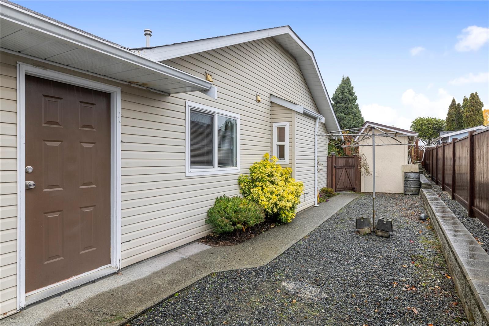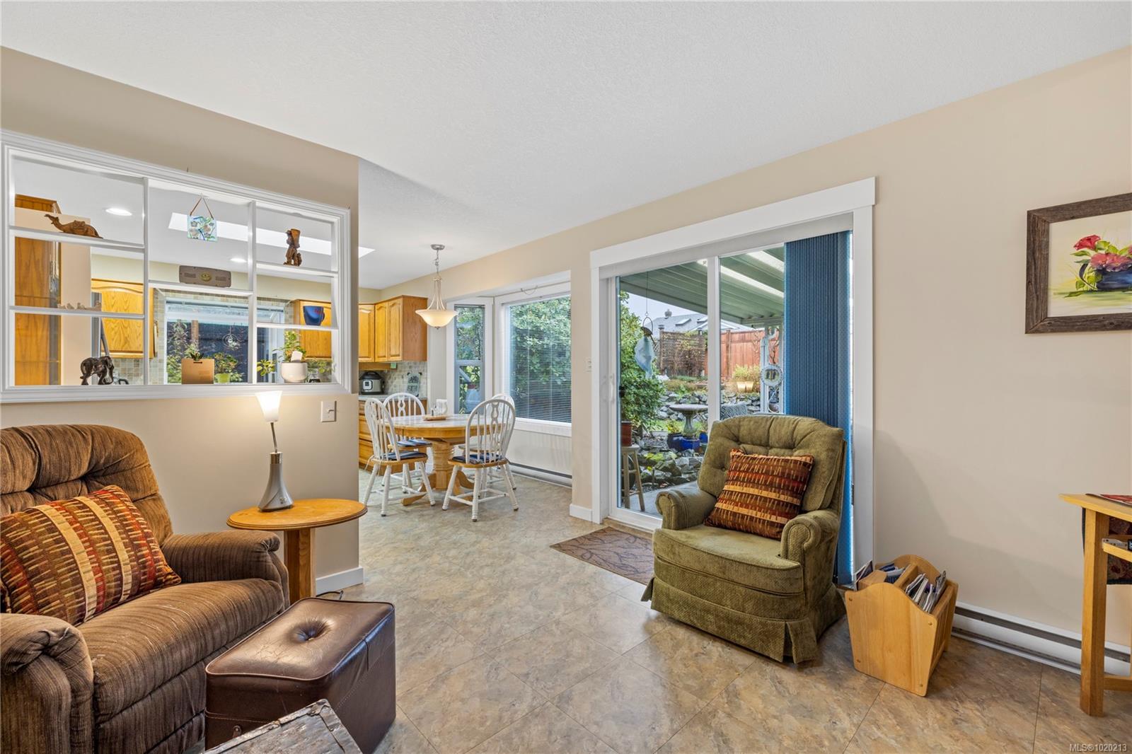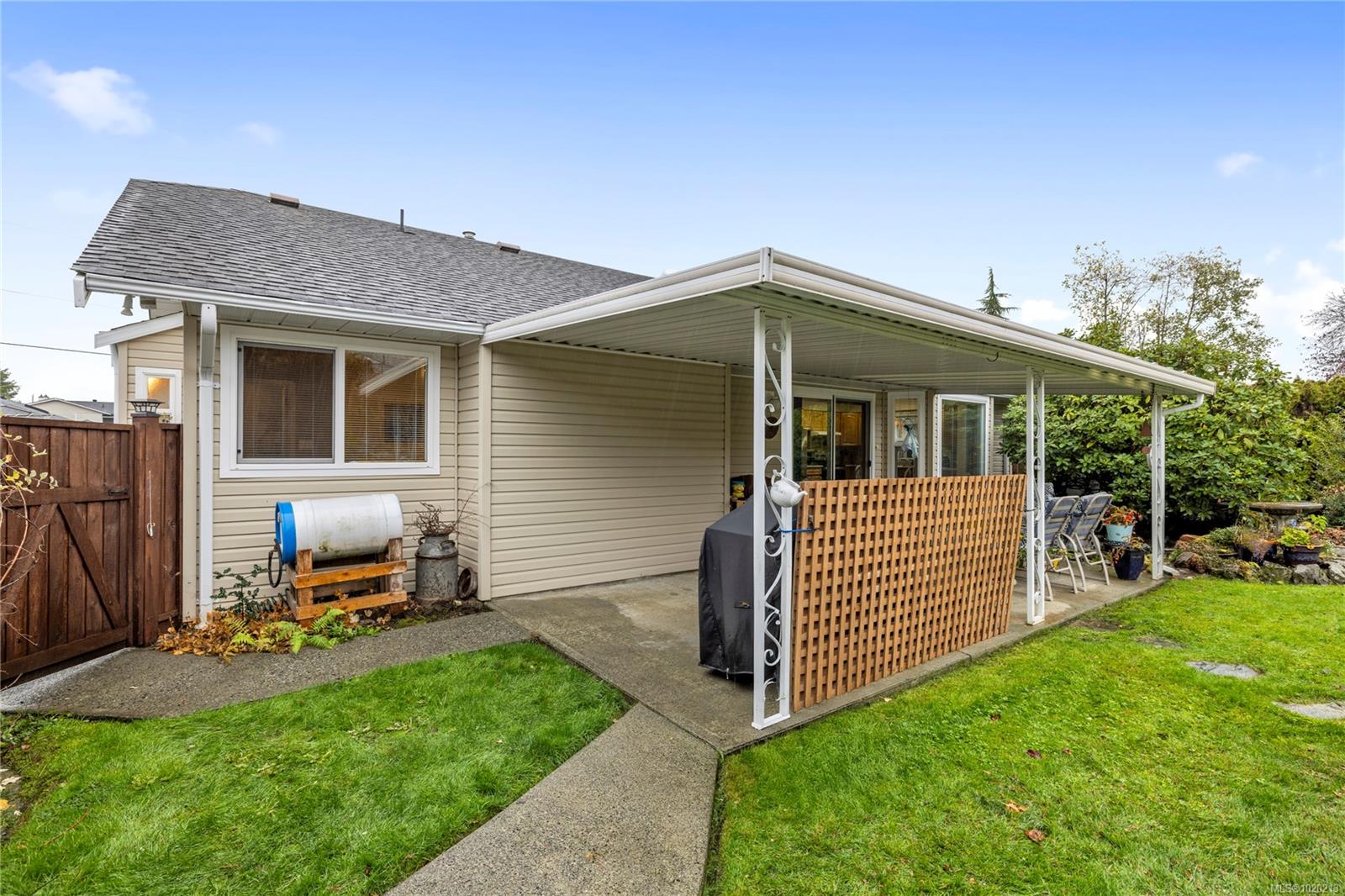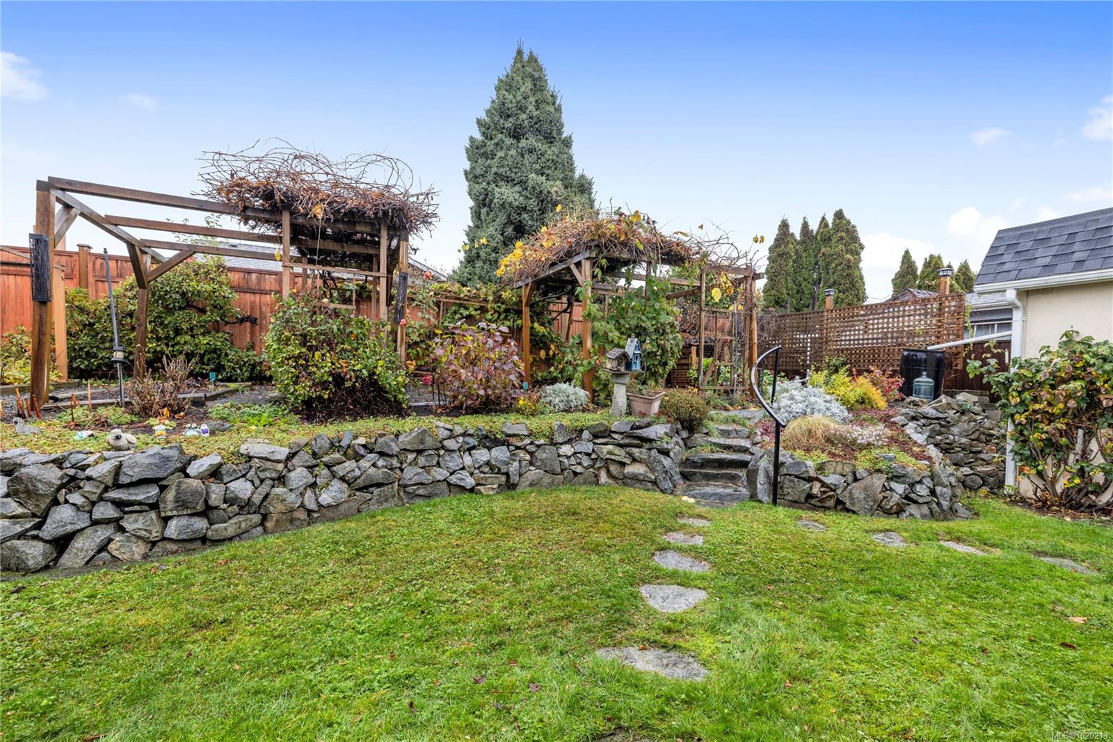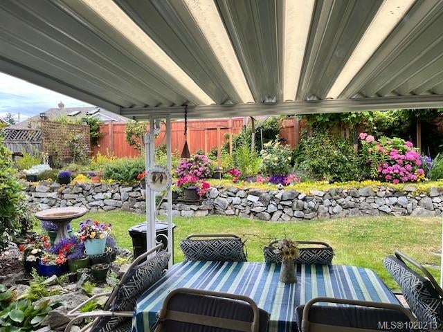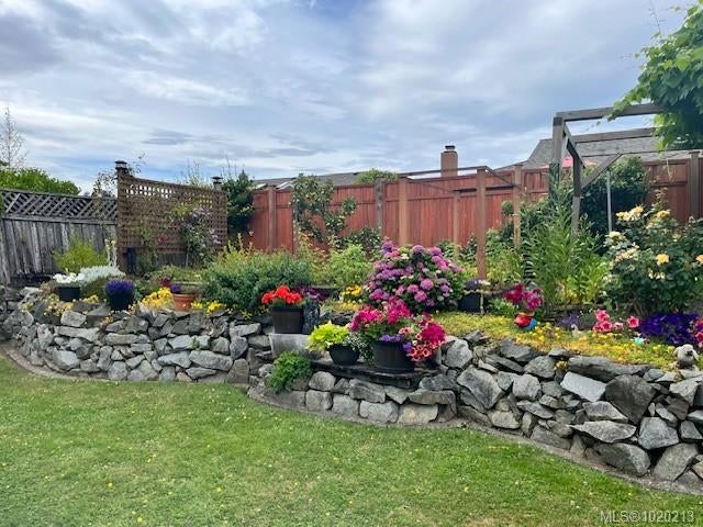 Ideally located just a short walk to Wembley Mall and minutes from schools, transit, downtown Parksville, and the beach, this well-maintained 2-bed, 2-bath rancher offers comfort and convenience. The 1,500 sq ft home features a bright, functional layout with updates including newer flooring, paint, baseboard heaters, and a hot water tank. The kitchen opens through sliding glass doors to a covered patio overlooking the beautifully landscaped, fully fenced backyard — a gardener's paradise with raised beds, clematis vines, fruit trees, berry bushes, and a handy garden shed. Enjoy plenty of parking with a double garage and RV space, all tucked into a quiet residential neighbourhood.