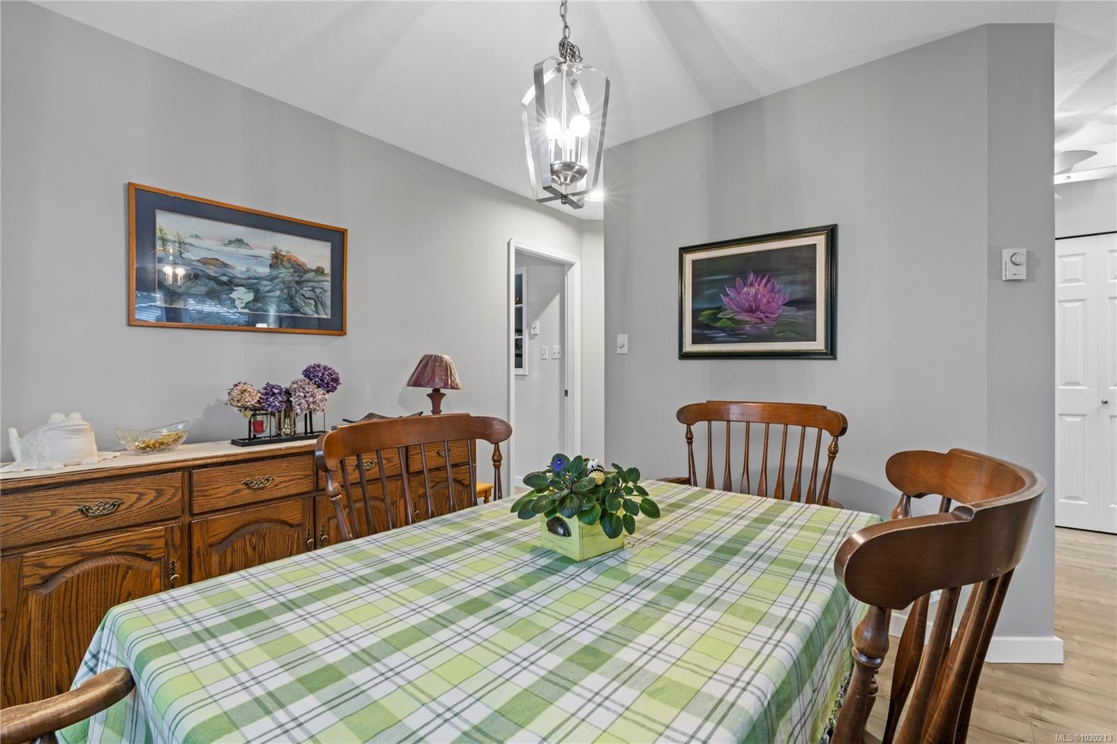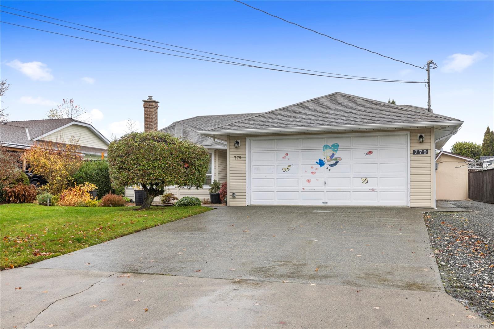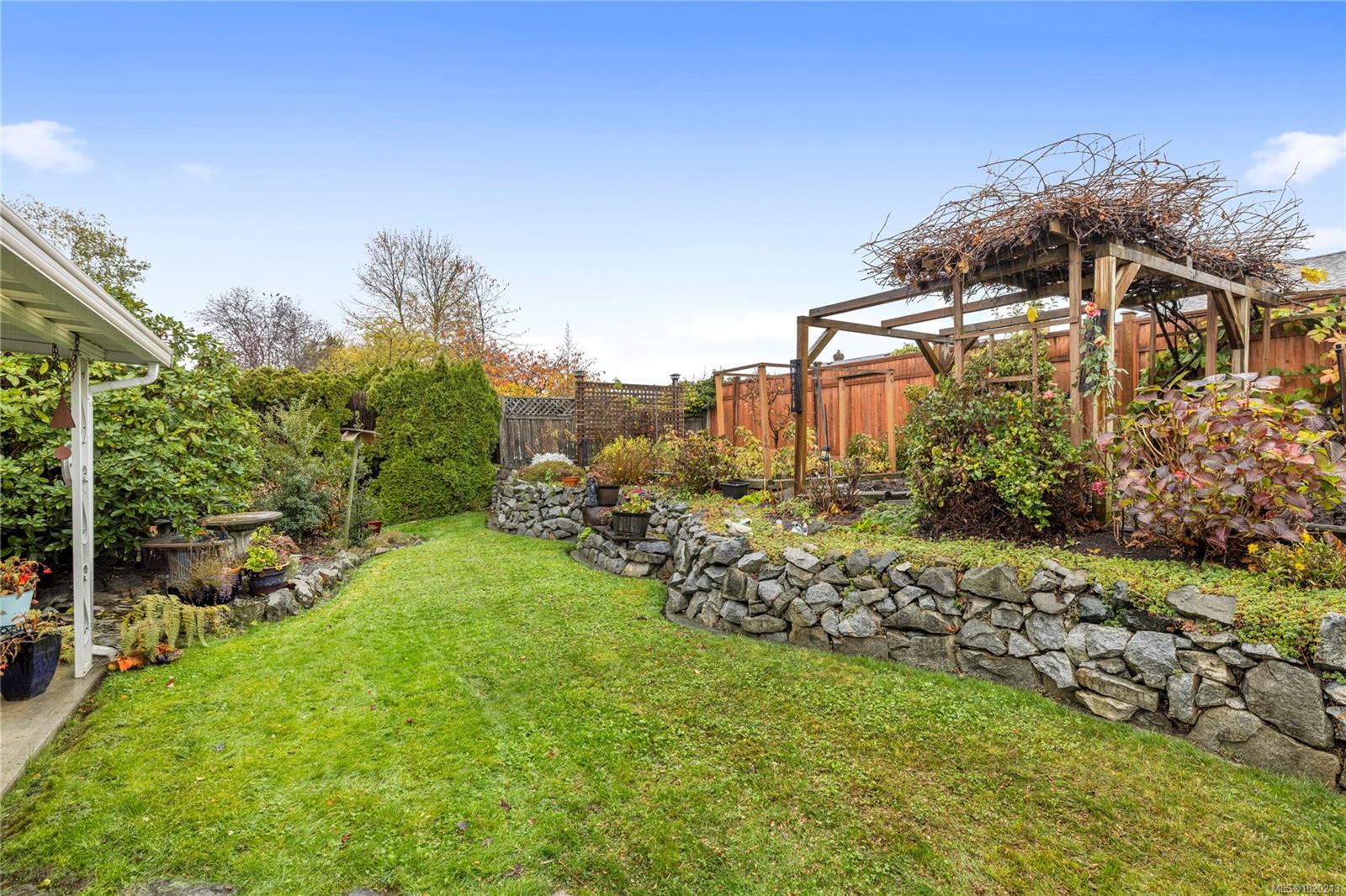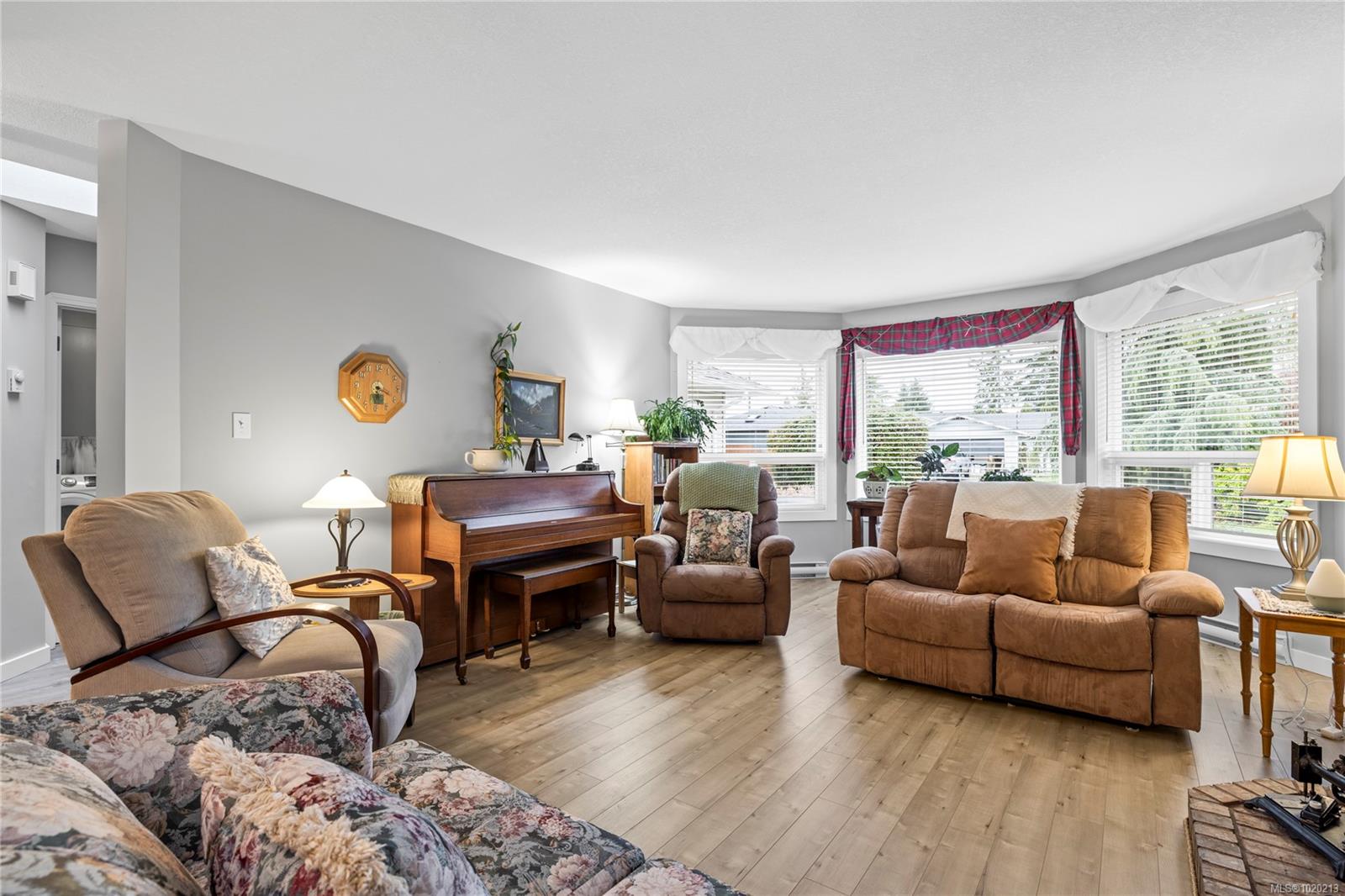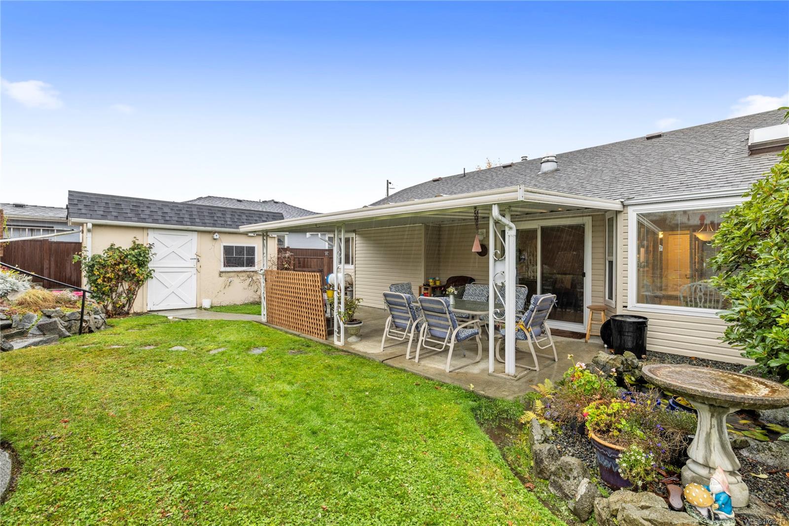 Ideally located just a short walk to Wembley Mall and minutes from schools, transit, downtown Parksville, and the beach, this well-maintained 2-bed, 2-bath rancher offers comfort and convenience. The 1,500 sq ft home features a bright, functional layout with updates including newer flooring, paint, baseboard heaters, and a hot water tank. The kitchen opens through sliding glass doors to a covered patio overlooking the beautifully landscaped, fully fenced backyard — a gardener's paradise with raised beds, clematis vines, fruit trees, berry bushes, and a handy garden shed. Enjoy plenty of parking with a double garage and RV space, all tucked into a quiet residential neighbourhood.