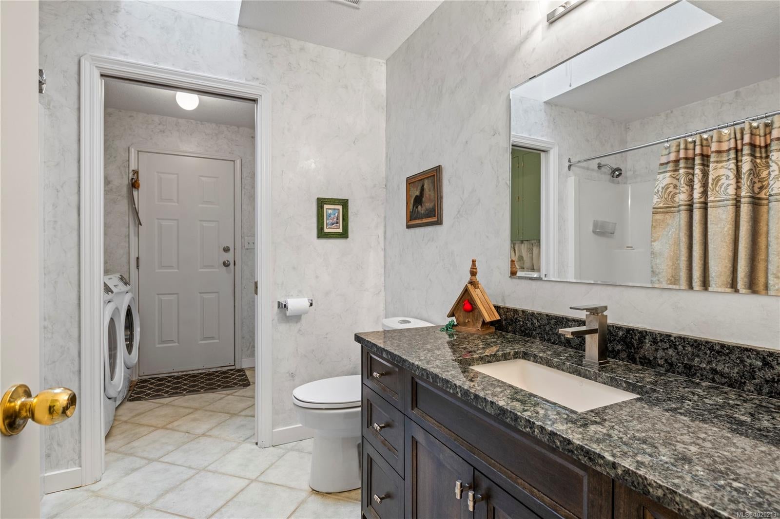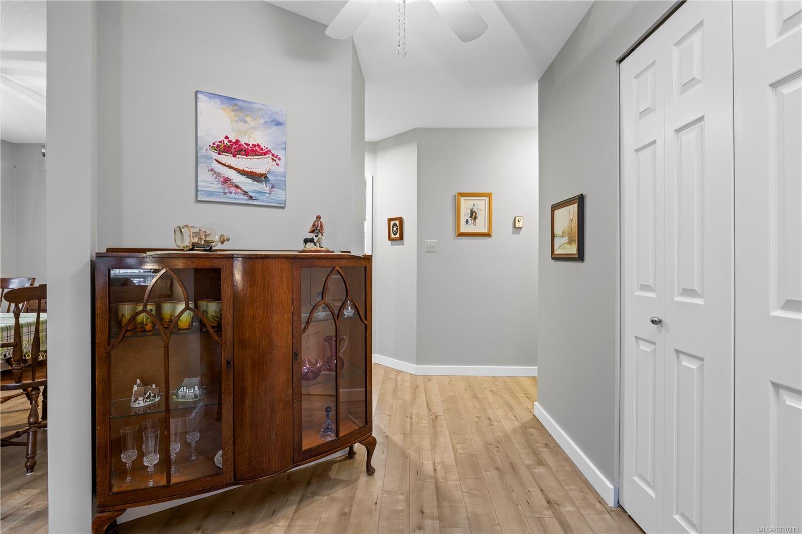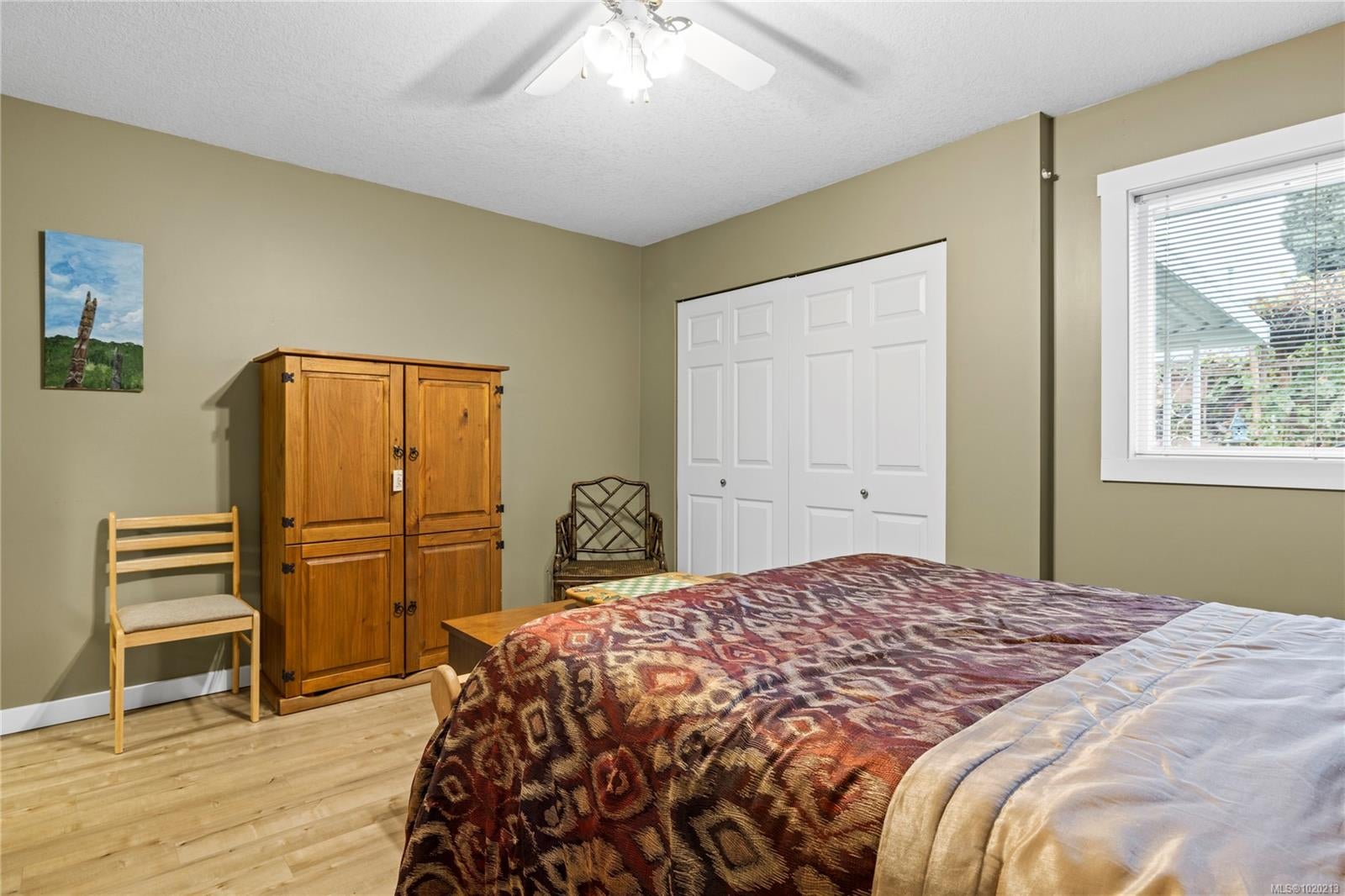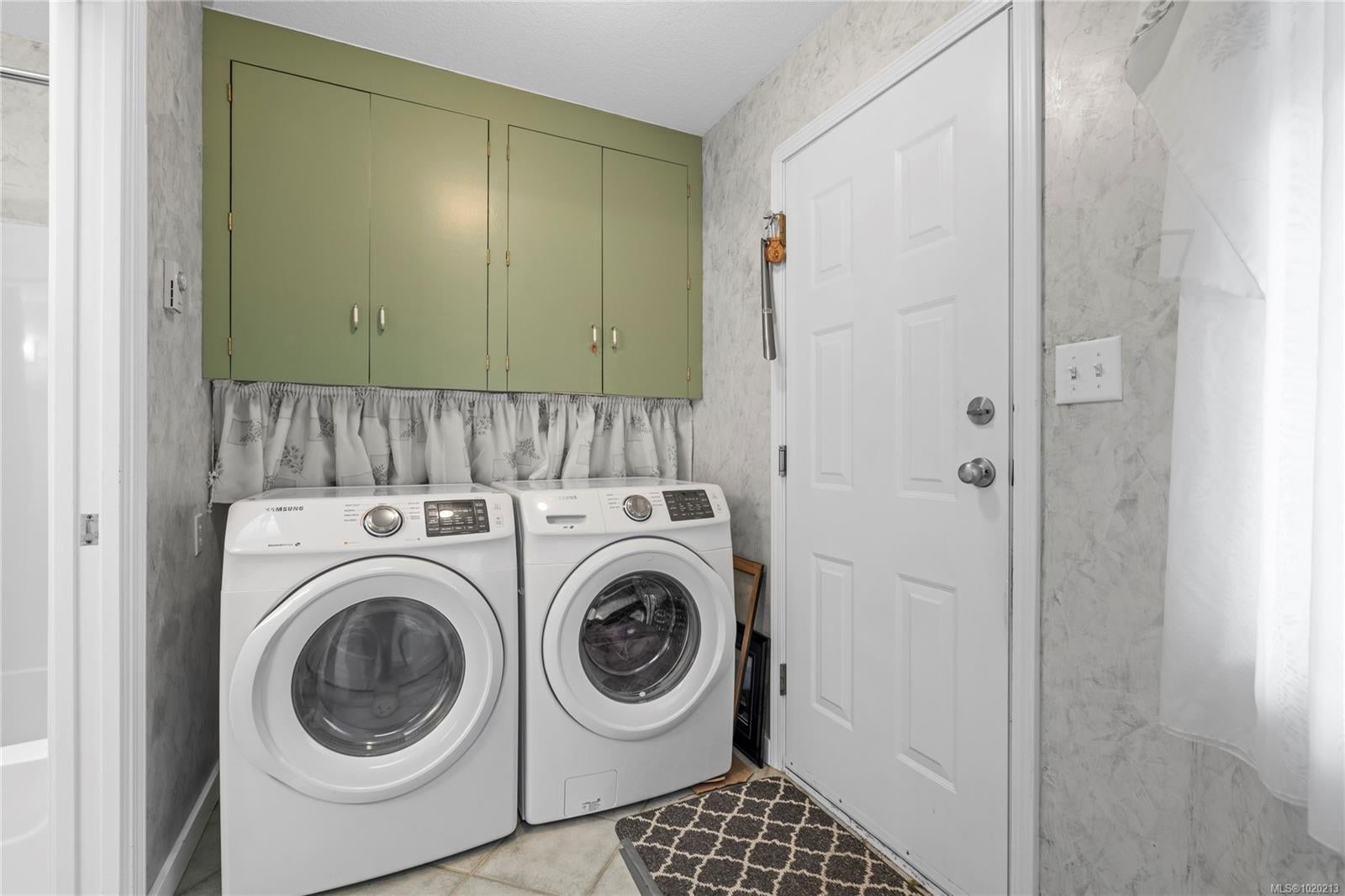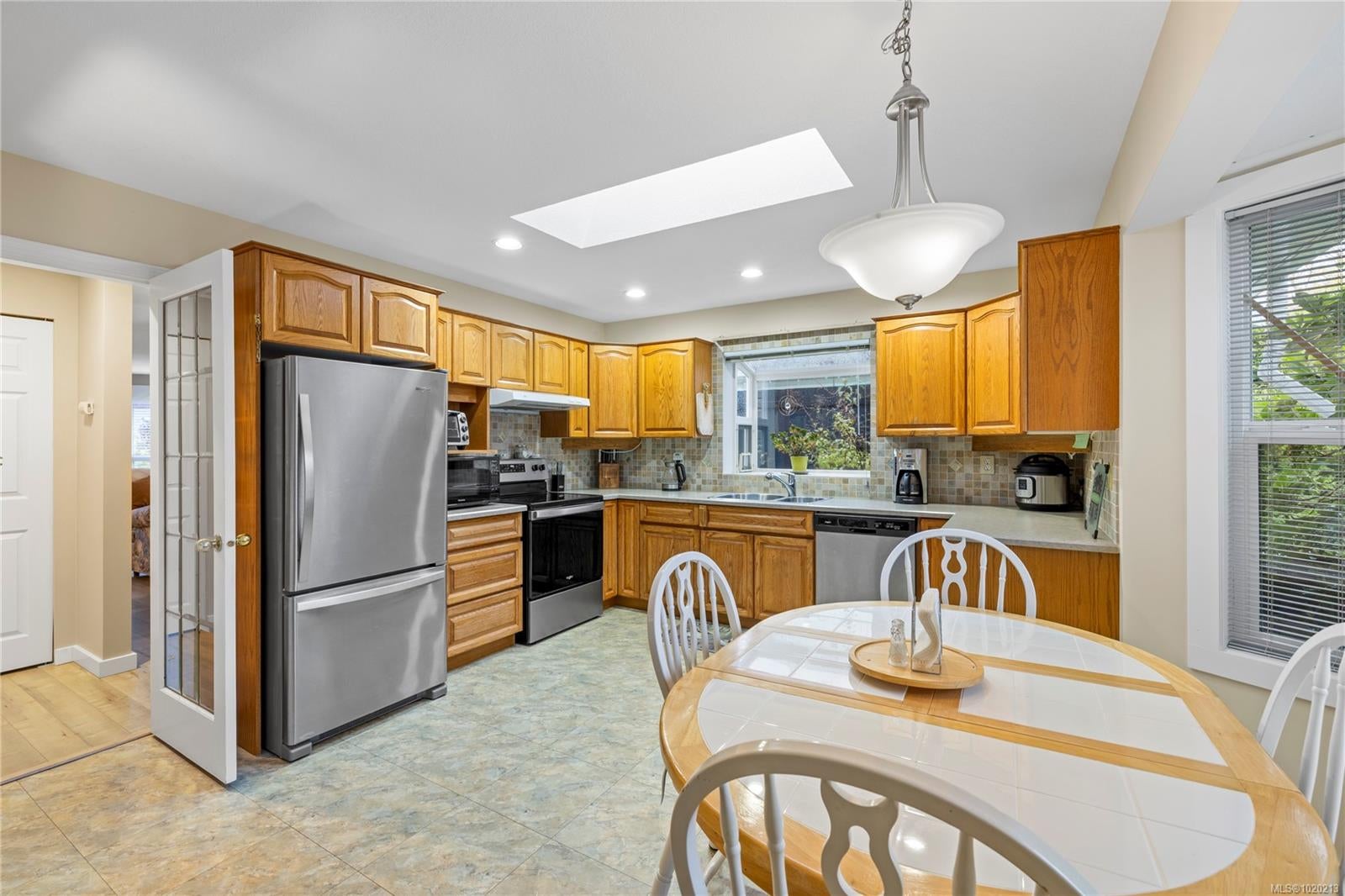 Ideally located just a short walk to Wembley Mall and minutes from schools, transit, downtown Parksville, and the beach, this well-maintained 2-bed, 2-bath rancher offers comfort and convenience. The 1,500 sq ft home features a bright, functional layout with updates including newer flooring, paint, baseboard heaters, and a hot water tank. The kitchen opens through sliding glass doors to a covered patio overlooking the beautifully landscaped, fully fenced backyard — a gardener's paradise with raised beds, clematis vines, fruit trees, berry bushes, and a handy garden shed. Enjoy plenty of parking with a double garage and RV space, all tucked into a quiet residential neighbourhood.
