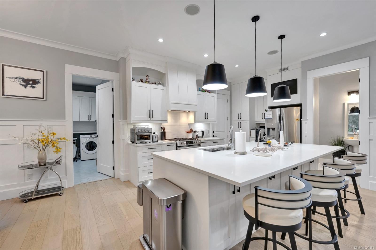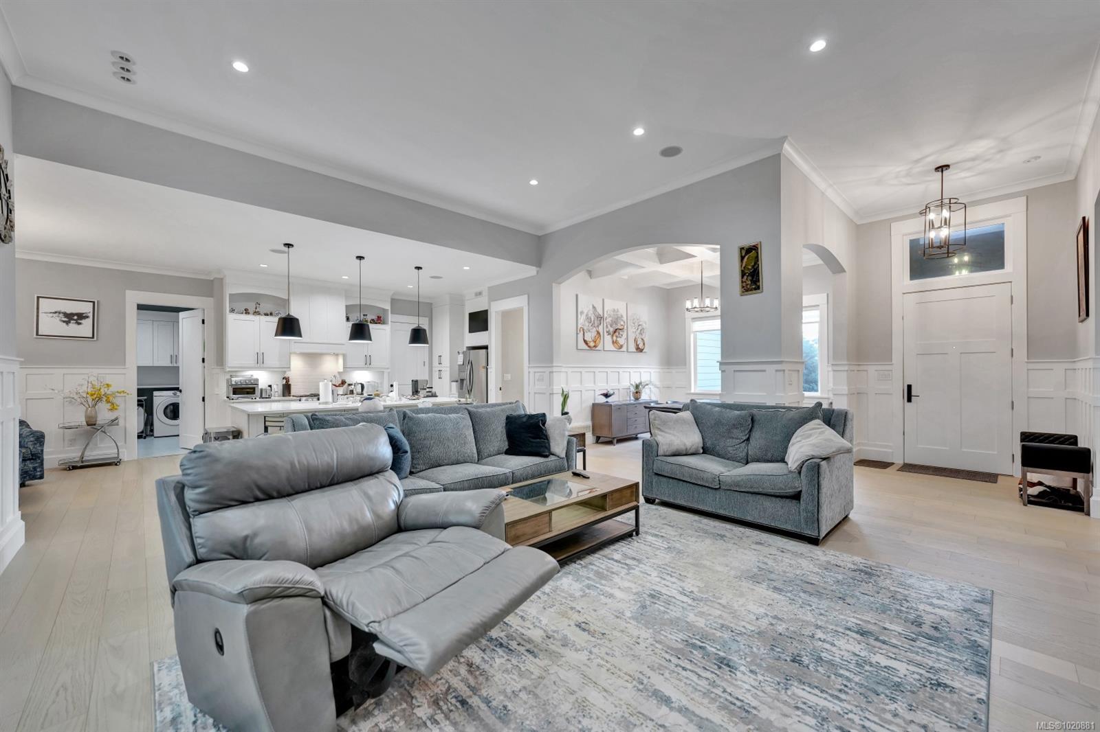 Elegant custom-built rancher in the prestigious Fairwinds Golf Resort community. Just 4–5 years old and still under new home warranty, this home showcases an open-concept design with high ceilings, crown moulding, built-in cabinetry, and a natural gas fireplace. The spacious kitchen features a large island, ideal for entertaining. Enjoy the private, low-maintenance backyard with natural rock landscaping. Triple-car garage plus RV parking with space for up to seven vehicles. Located on the desirable flat section of the golf course, walking distance to oceanfront parks with water access. Minutes from two marinas, the Fairwinds Golf Club, Wellness Centre, and scenic walking and biking trails. Experience luxury coastal living in one of Vancouver Island’s most sought-after communities. See the home in 3D virtual tour and book your private showing. All measurements are approximate and should be verified.