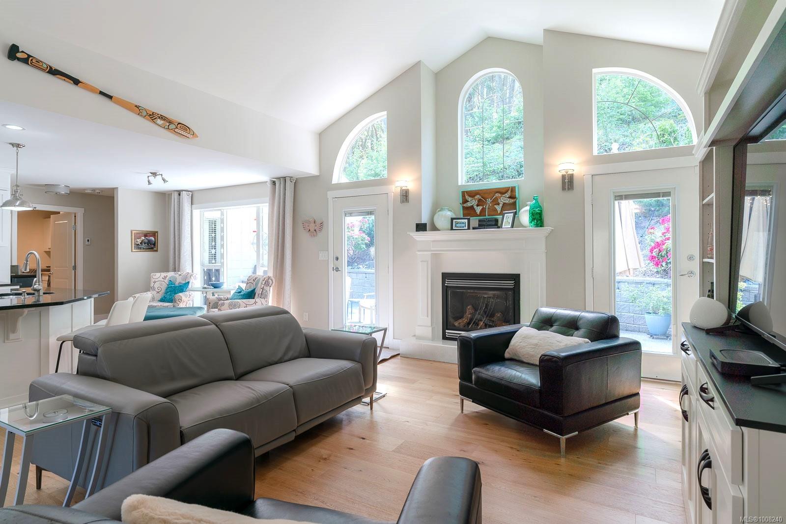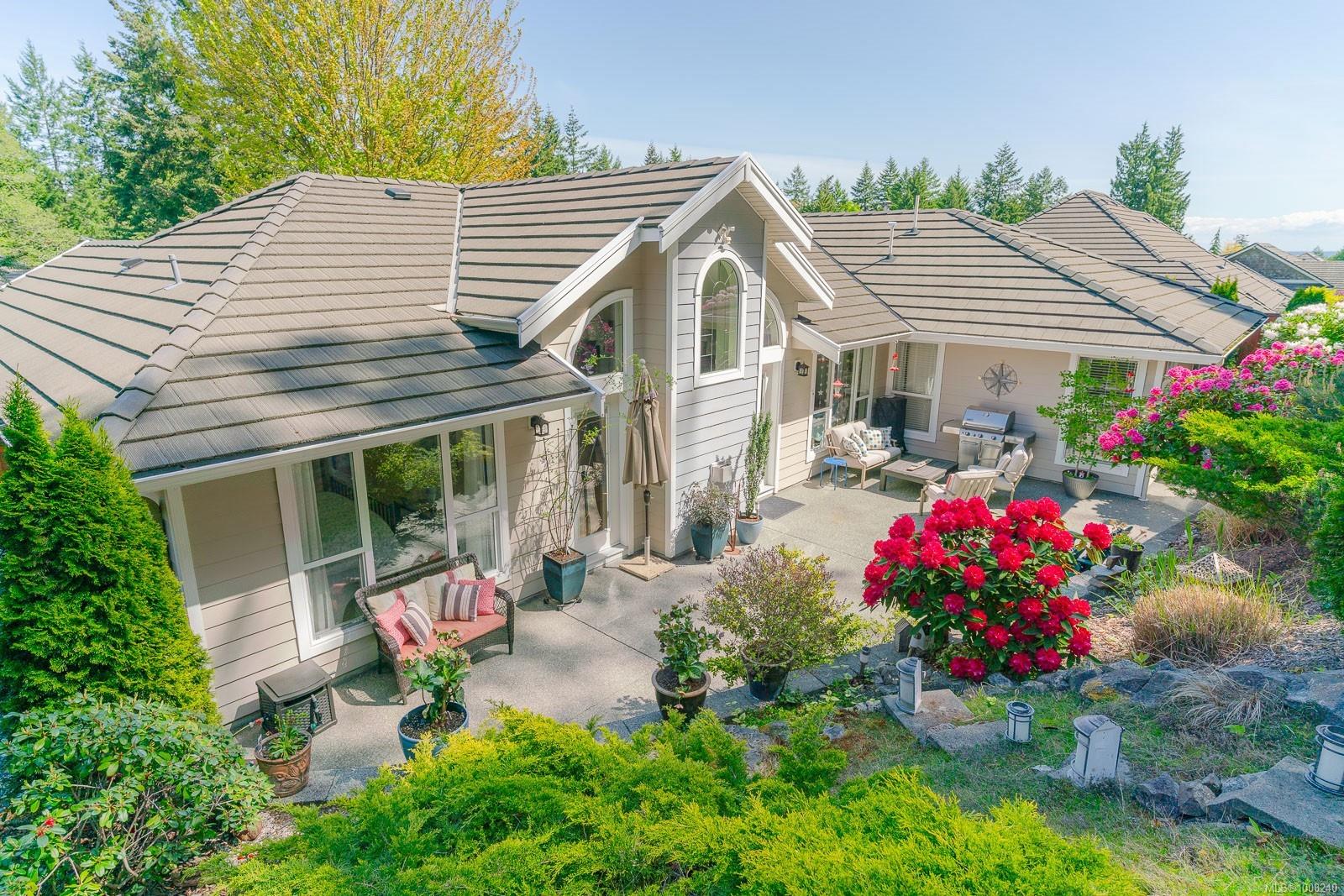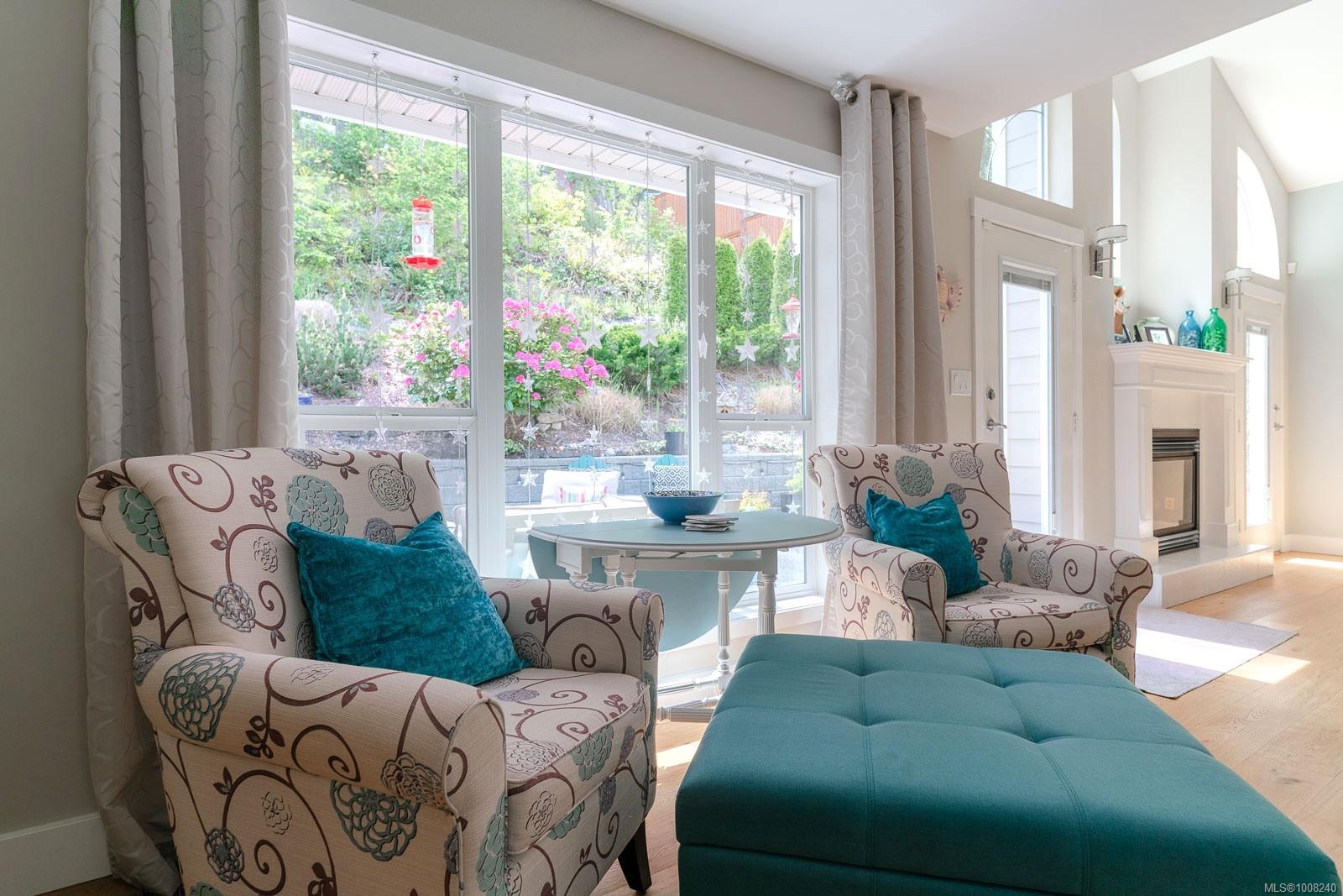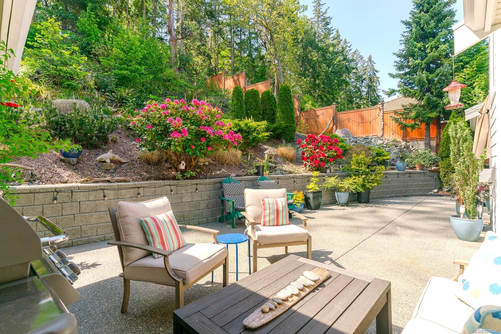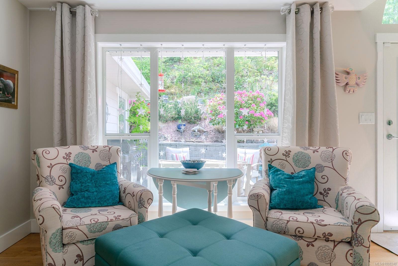 Golfer’s Paradise! Located in the Fairwinds community, this executive rancher offers spacious main-level living in a peaceful neighbourhood located just steps to the golf course. You're welcomed by an expansive entrance & newly installed engineered hardwood flooring in this upgraded & impeccably maintained 2 bedroom plus den, 2 bath home. This home is further highlighted with quality finishing, high ceilings & large airy rooms with expansive windows to take in the natural light, treed backdrop & golf course views. The gourmet kitchen includes granite counters, stainless steel appliances, a natural gas stove & ample storage -- opening to an adjoining seating nook or flex space perfect for your morning coffee. Entertain with ease in the large dining room highlighted with classic wainscoting or in the spacious living room with a cozy gas fireplace & vaulted ceiling which overlooks the beautifully landscaped yard. The private primary suite offers a walk-in closet & spectacular 5pc. ensuite with soaker tub & walk-in shower. The thoughtful floorplan provides privacy, with an additional bedroom, den & 4-piece bath on the opposite side of the home. Additional features include a well-appointed laundry room & ample storage throughout. Backing onto crown land for added ambiance, the outdoor living areas include a private patio, fully landscaped & fenced yard with mature landscaping, irrigation and new stairs for easy access to the upper yard. Perfectly positioned to enjoy the Fairwinds lifestyle with the Golf Course right across the street and just steps to the Fairwinds Wellness Centre with gym, pool, tennis, and pickleball courts. Enjoy nearby scenic beaches, Marina, Schooner Cove, Brickyard Park & miles of forested walking trails -- this location offers the ultimate in active, coastal living. If you're looking for pristine one-level living in a serene & scenic setting, this is the one—your ideal lifestyle starts here. Data & measurements approximate, verify if important.