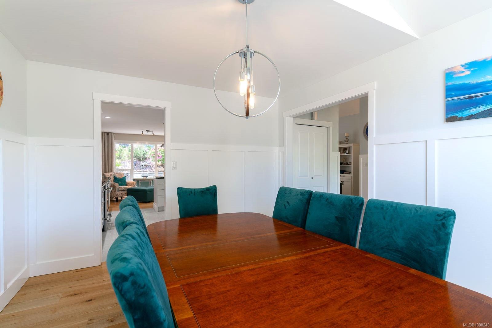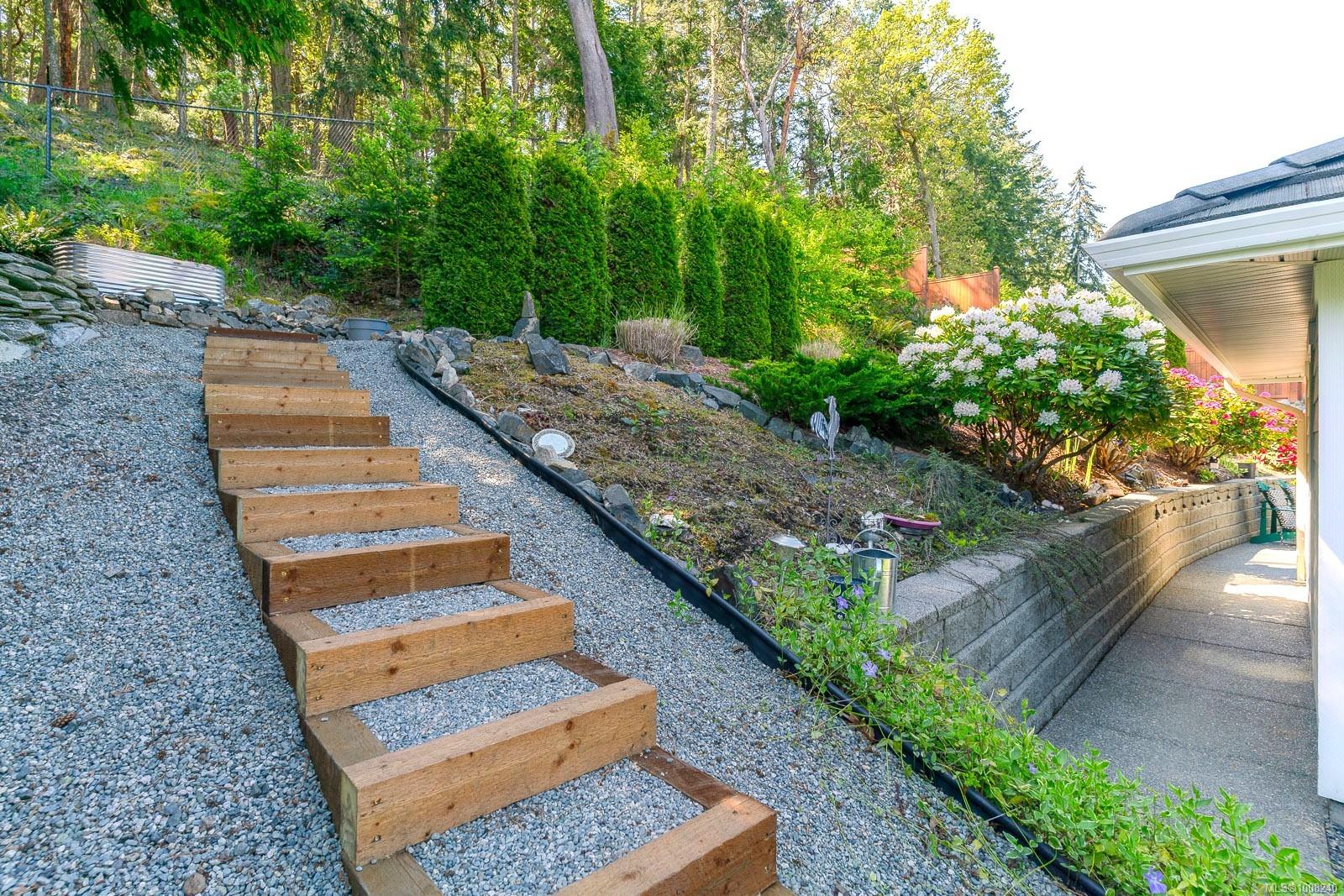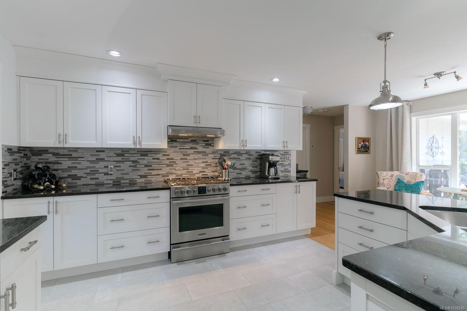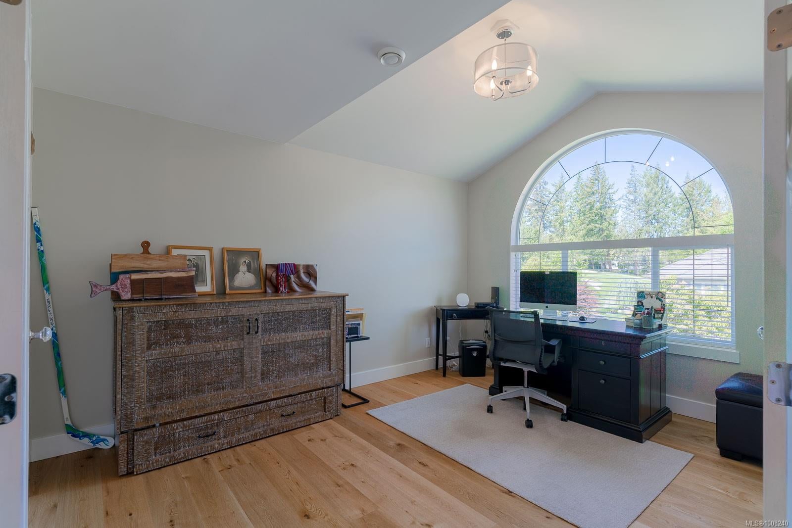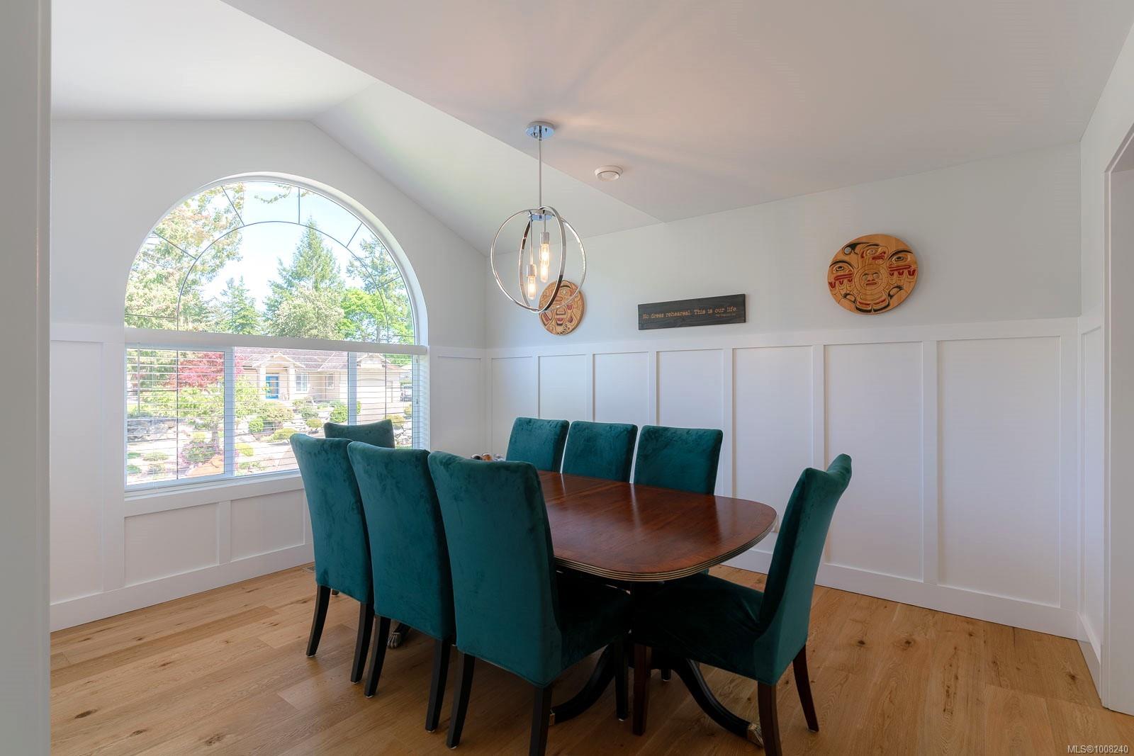 Golfer’s Paradise! Located in the Fairwinds community, this executive rancher offers spacious main-level living in a peaceful neighbourhood located just steps to the golf course. You're welcomed by an expansive entrance & newly installed engineered hardwood flooring in this upgraded & impeccably maintained 2 bedroom plus den, 2 bath home. This home is further highlighted with quality finishing, high ceilings & large airy rooms with expansive windows to take in the natural light, treed backdrop & golf course views. The gourmet kitchen includes granite counters, stainless steel appliances, a natural gas stove & ample storage -- opening to an adjoining seating nook or flex space perfect for your morning coffee. Entertain with ease in the large dining room highlighted with classic wainscoting or in the spacious living room with a cozy gas fireplace & vaulted ceiling which overlooks the beautifully landscaped yard. The private primary suite offers a walk-in closet & spectacular 5pc. ensuite with soaker tub & walk-in shower. The thoughtful floorplan provides privacy, with an additional bedroom, den & 4-piece bath on the opposite side of the home. Additional features include a well-appointed laundry room & ample storage throughout. Backing onto crown land for added ambiance, the outdoor living areas include a private patio, fully landscaped & fenced yard with mature landscaping, irrigation and new stairs for easy access to the upper yard. Perfectly positioned to enjoy the Fairwinds lifestyle with the Golf Course right across the street and just steps to the Fairwinds Wellness Centre with gym, pool, tennis, and pickleball courts. Enjoy nearby scenic beaches, Marina, Schooner Cove, Brickyard Park & miles of forested walking trails -- this location offers the ultimate in active, coastal living. If you're looking for pristine one-level living in a serene & scenic setting, this is the one—your ideal lifestyle starts here. Data & measurements approximate, verify if important.