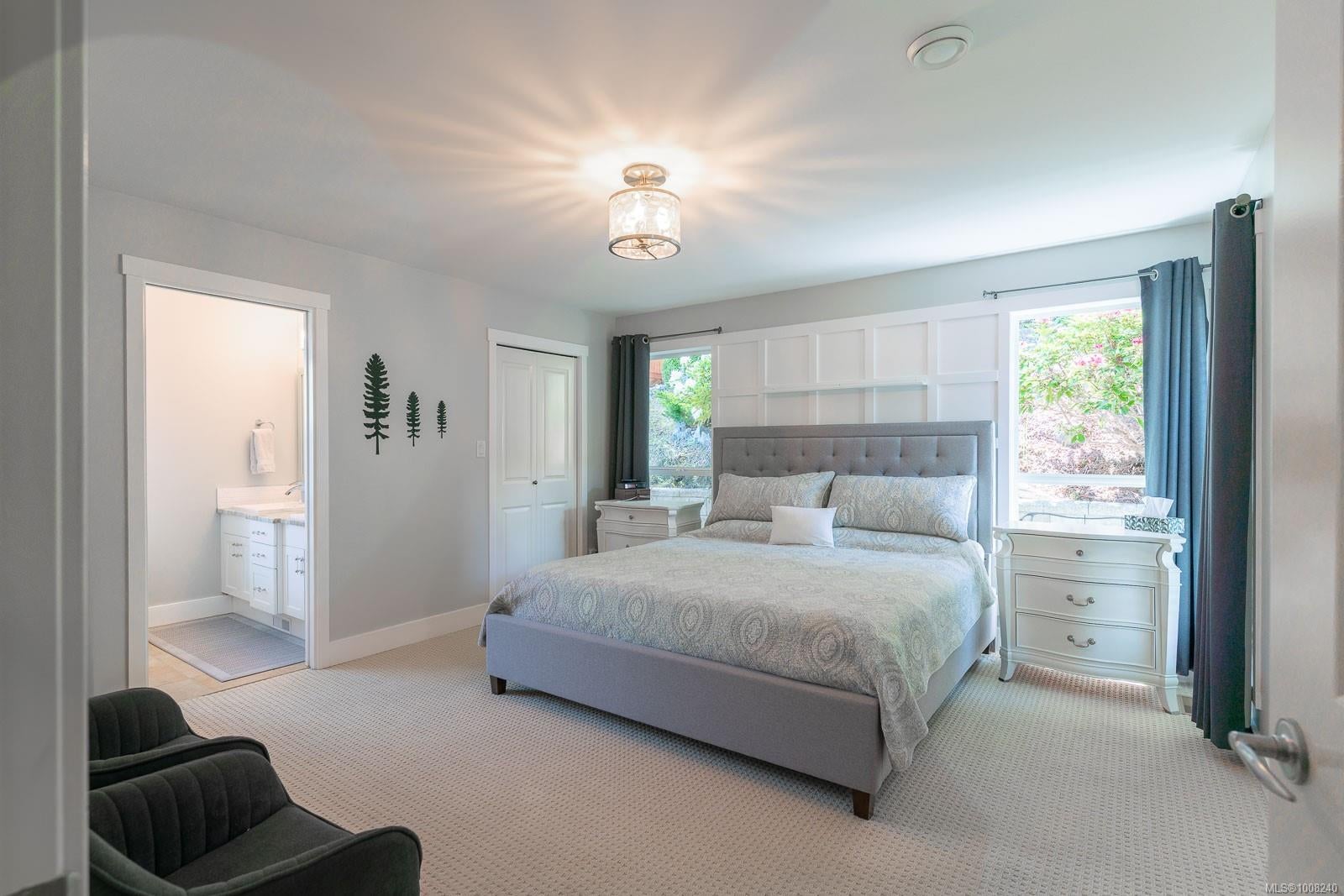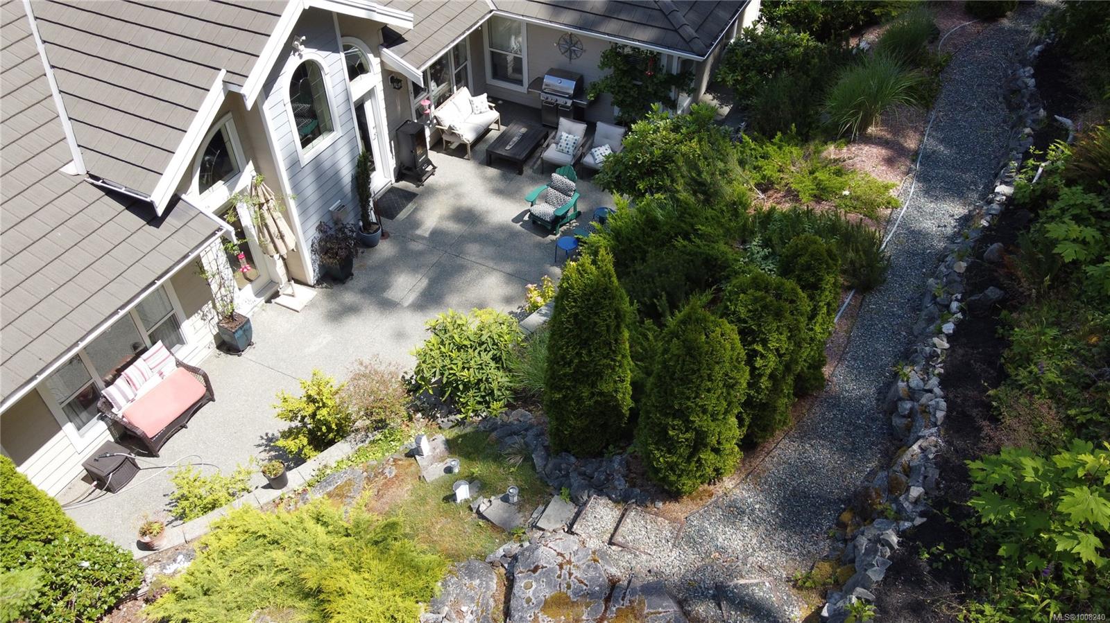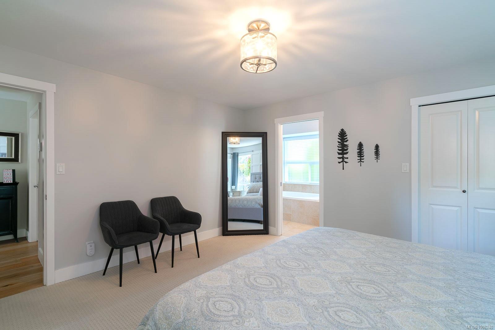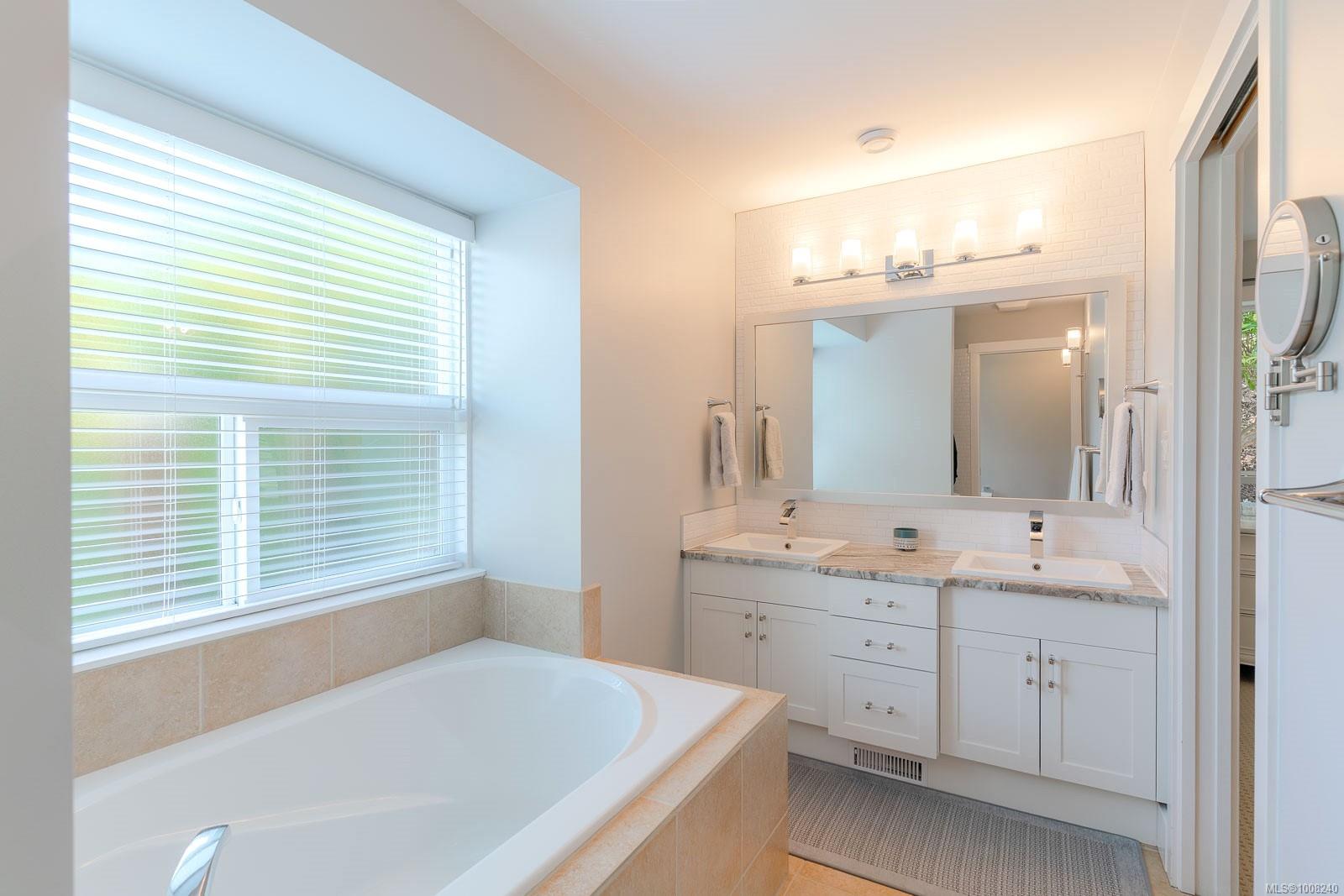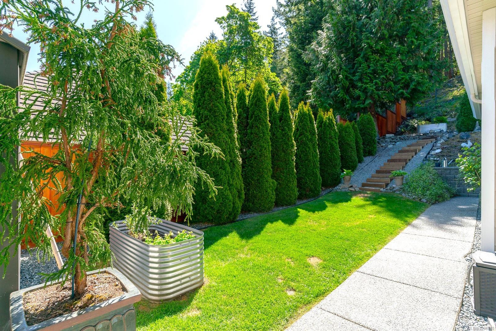 Golfer’s Paradise! Located in the Fairwinds community, this executive rancher offers spacious main-level living in a peaceful neighbourhood located just steps to the golf course. You're welcomed by an expansive entrance & newly installed engineered hardwood flooring in this upgraded & impeccably maintained 2 bedroom plus den, 2 bath home. This home is further highlighted with quality finishing, high ceilings & large airy rooms with expansive windows to take in the natural light, treed backdrop & golf course views. The gourmet kitchen includes granite counters, stainless steel appliances, a natural gas stove & ample storage -- opening to an adjoining seating nook or flex space perfect for your morning coffee. Entertain with ease in the large dining room highlighted with classic wainscoting or in the spacious living room with a cozy gas fireplace & vaulted ceiling which overlooks the beautifully landscaped yard. The private primary suite offers a walk-in closet & spectacular 5pc. ensuite with soaker tub & walk-in shower. The thoughtful floorplan provides privacy, with an additional bedroom, den & 4-piece bath on the opposite side of the home. Additional features include a well-appointed laundry room & ample storage throughout. Backing onto crown land for added ambiance, the outdoor living areas include a private patio, fully landscaped & fenced yard with mature landscaping, irrigation and new stairs for easy access to the upper yard. Perfectly positioned to enjoy the Fairwinds lifestyle with the Golf Course right across the street and just steps to the Fairwinds Wellness Centre with gym, pool, tennis, and pickleball courts. Enjoy nearby scenic beaches, Marina, Schooner Cove, Brickyard Park & miles of forested walking trails -- this location offers the ultimate in active, coastal living. If you're looking for pristine one-level living in a serene & scenic setting, this is the one—your ideal lifestyle starts here. Data & measurements approximate, verify if important.