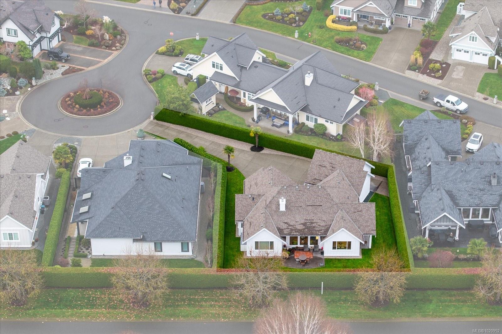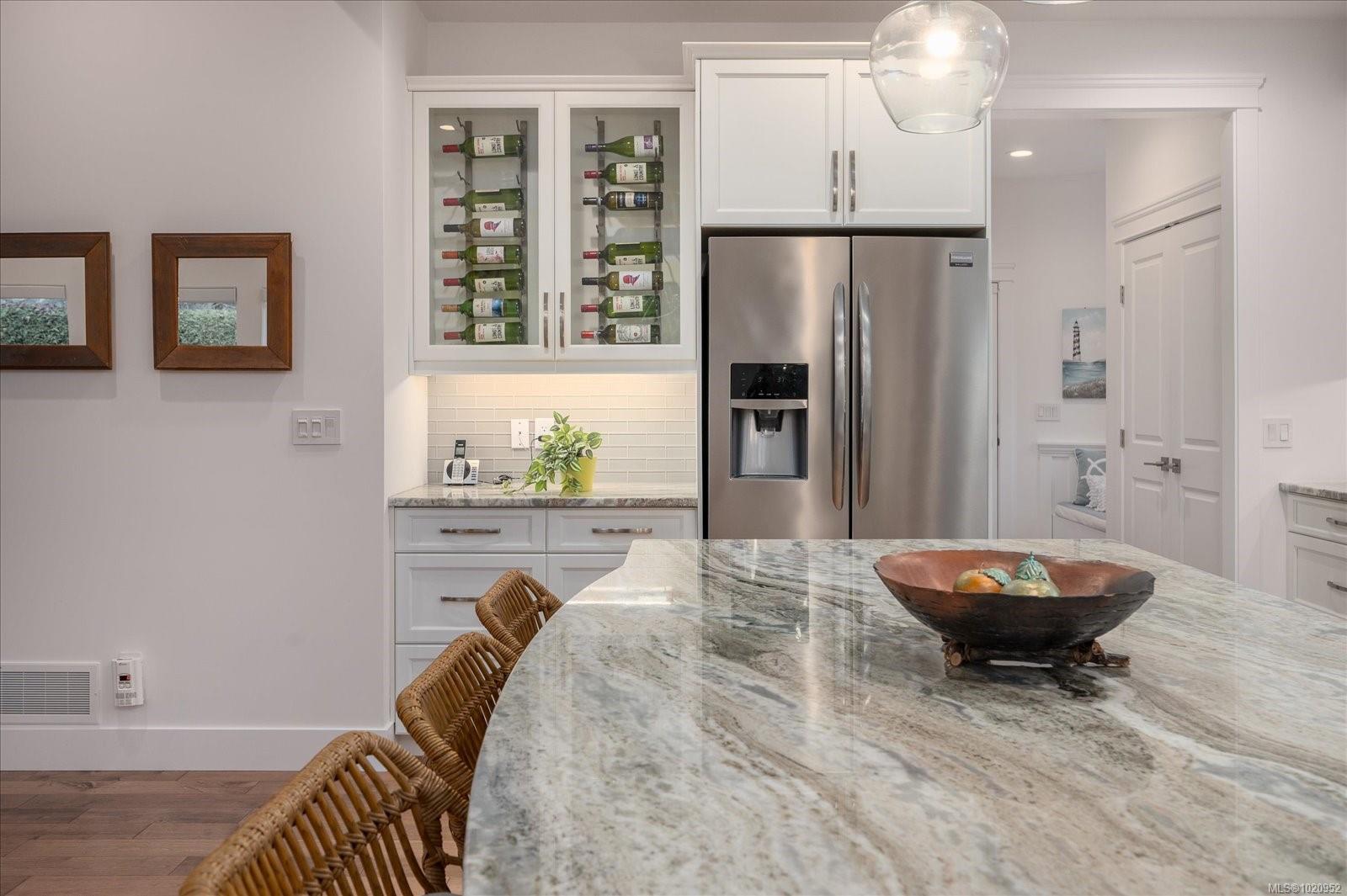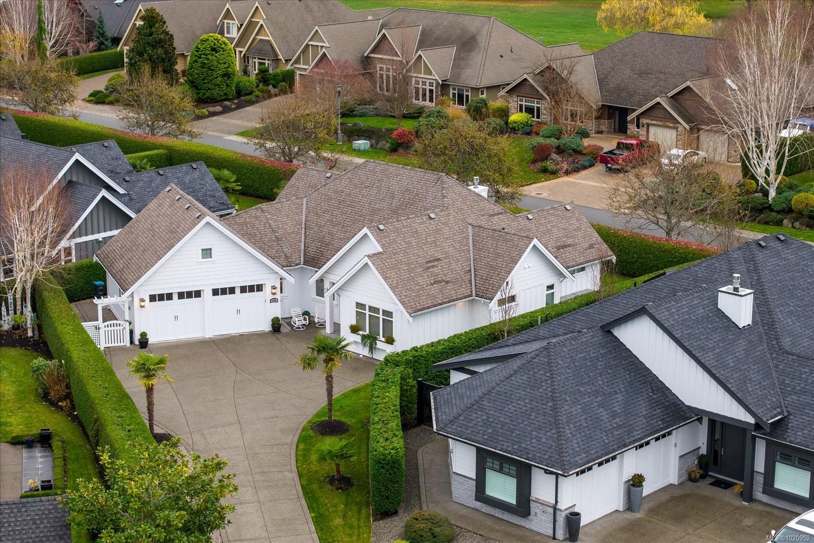 Welcome to The Exclusive Bluffs, a private 57-home enclave perfectly positioned between the sandy beaches of the Strait of Georgia and Eaglecrest Golf Club. This elegant rancher offers 3 bedrooms (1 without closet) and 2 bathrooms, quietly set in a cul-de-sac with an extended driveway for added privacy. At its centre is a chef’s kitchen with quartz countertops, gorgeous white cabinetry, glass tile backsplash, 4 ft X 10 ft island, large walk-in pantry, and abundant natural light from the south-facing backyard. The open layout flows to a spacious dining area and a warm living room with rich wood flooring, electric blinds and custom built-ins framing a granite-surround gas fireplace. The primary suite features a generous walk-in closet and spa-inspired ensuite with soaking tub and walk-in shower. A large laundry room with custom cabinetry connects to the oversized garage, complete with workspace and ladder access to substantial overhead storage.