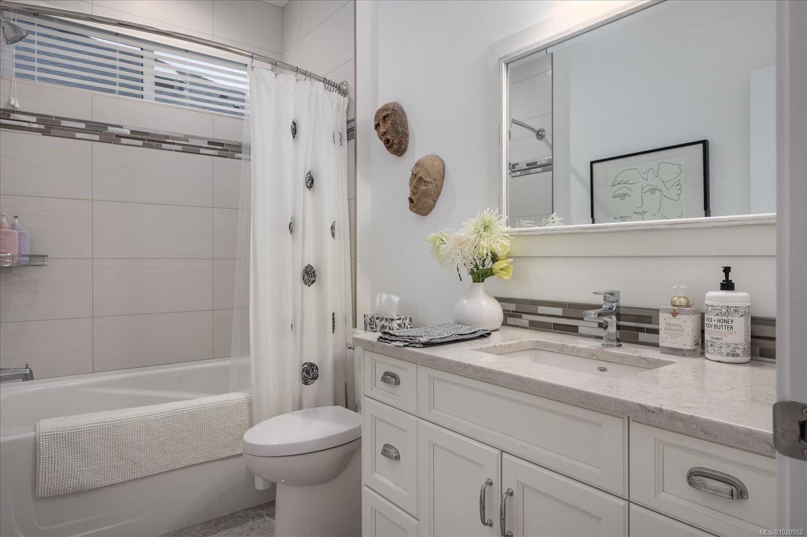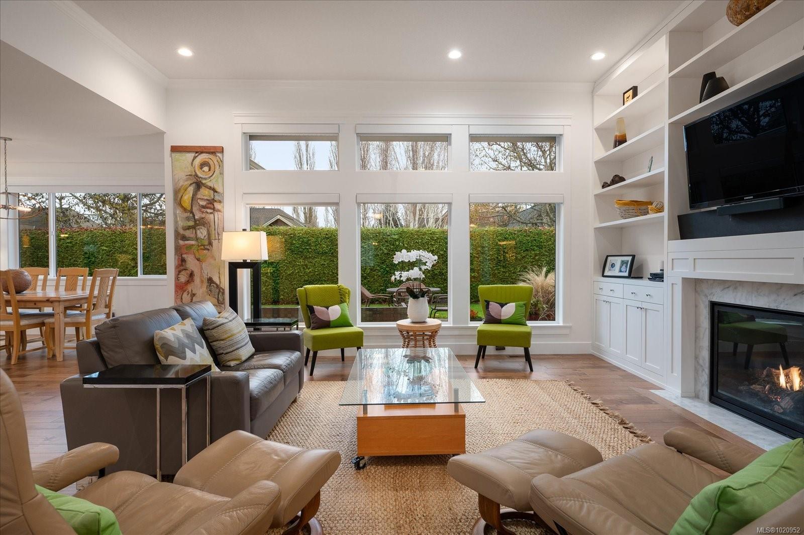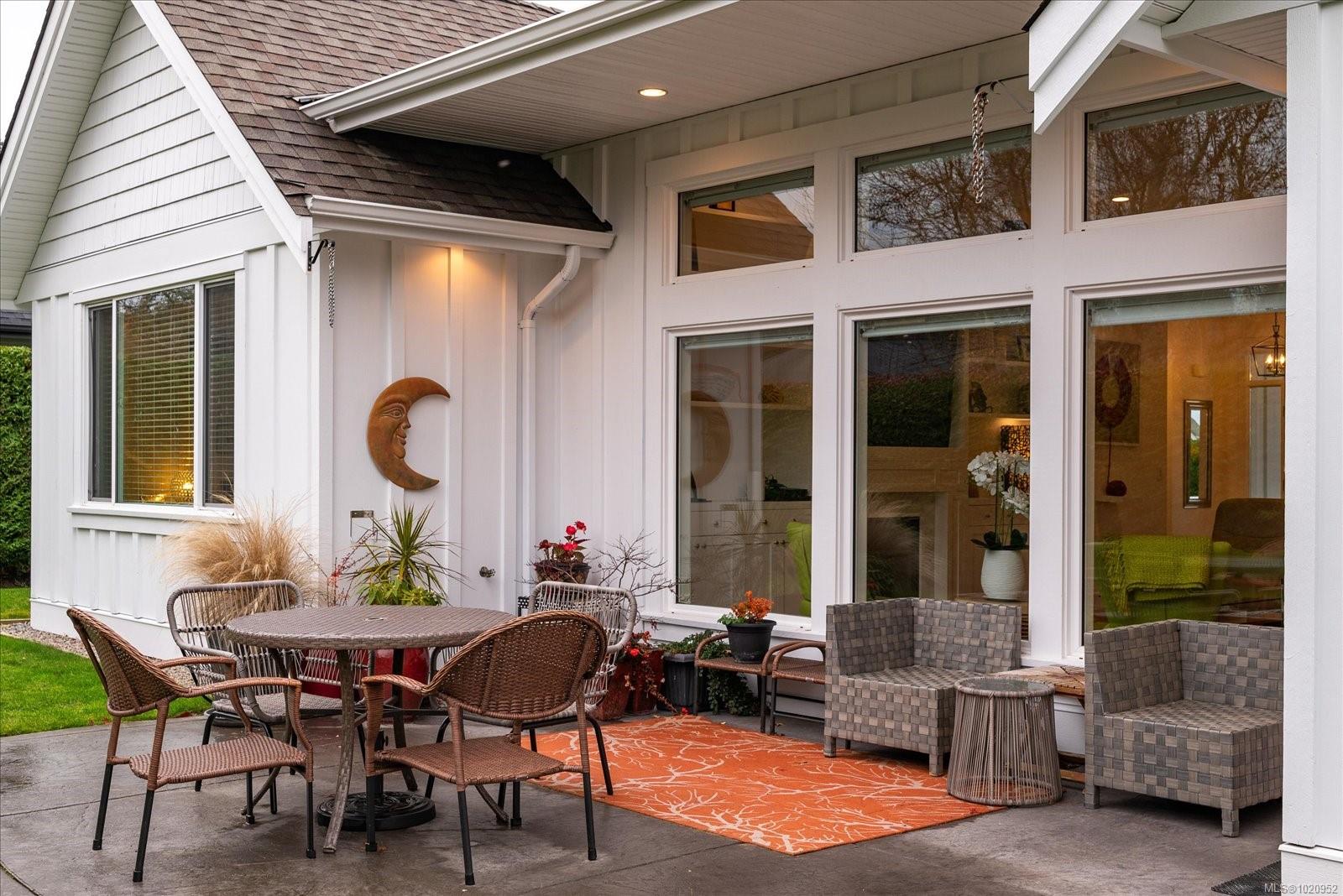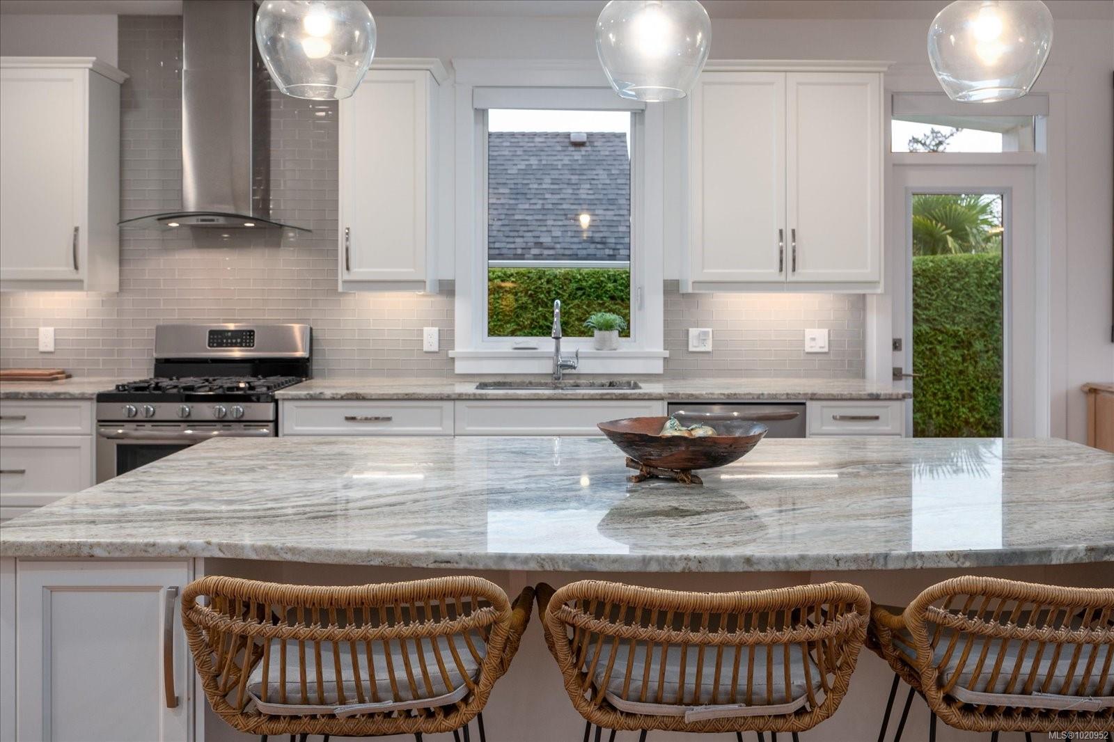 Welcome to The Exclusive Bluffs, a private 57-home enclave perfectly positioned between the sandy beaches of the Strait of Georgia and Eaglecrest Golf Club. This elegant rancher offers 3 bedrooms (1 without closet) and 2 bathrooms, quietly set in a cul-de-sac with an extended driveway for added privacy. At its centre is a chef’s kitchen with quartz countertops, gorgeous white cabinetry, glass tile backsplash, 4 ft X 10 ft island, large walk-in pantry, and abundant natural light from the south-facing backyard. The open layout flows to a spacious dining area and a warm living room with rich wood flooring, electric blinds and custom built-ins framing a granite-surround gas fireplace. The primary suite features a generous walk-in closet and spa-inspired ensuite with soaking tub and walk-in shower. A large laundry room with custom cabinetry connects to the oversized garage, complete with workspace and ladder access to substantial overhead storage.