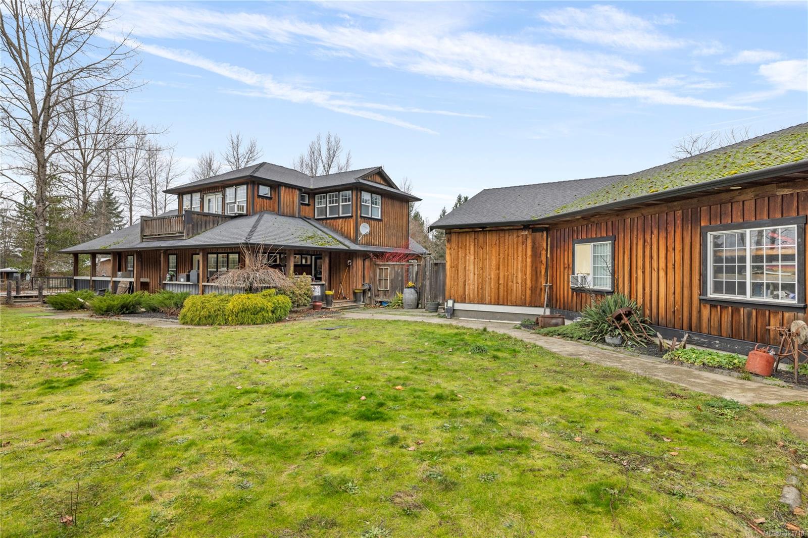 Court-Ordered Sale – As Is, Where Is. This 2.59-acre property offers privacy and convenience, located just minutes from Qualicum Beach and Parksville. The main home includes hardwood floors, a large country kitchen, and a family room with stamped, heated concrete floors. There are two bedrooms on the lower level and a spacious primary suite upstairs with a private balcony. The second dwelling is not permitted but presents an opportunity for a future project.