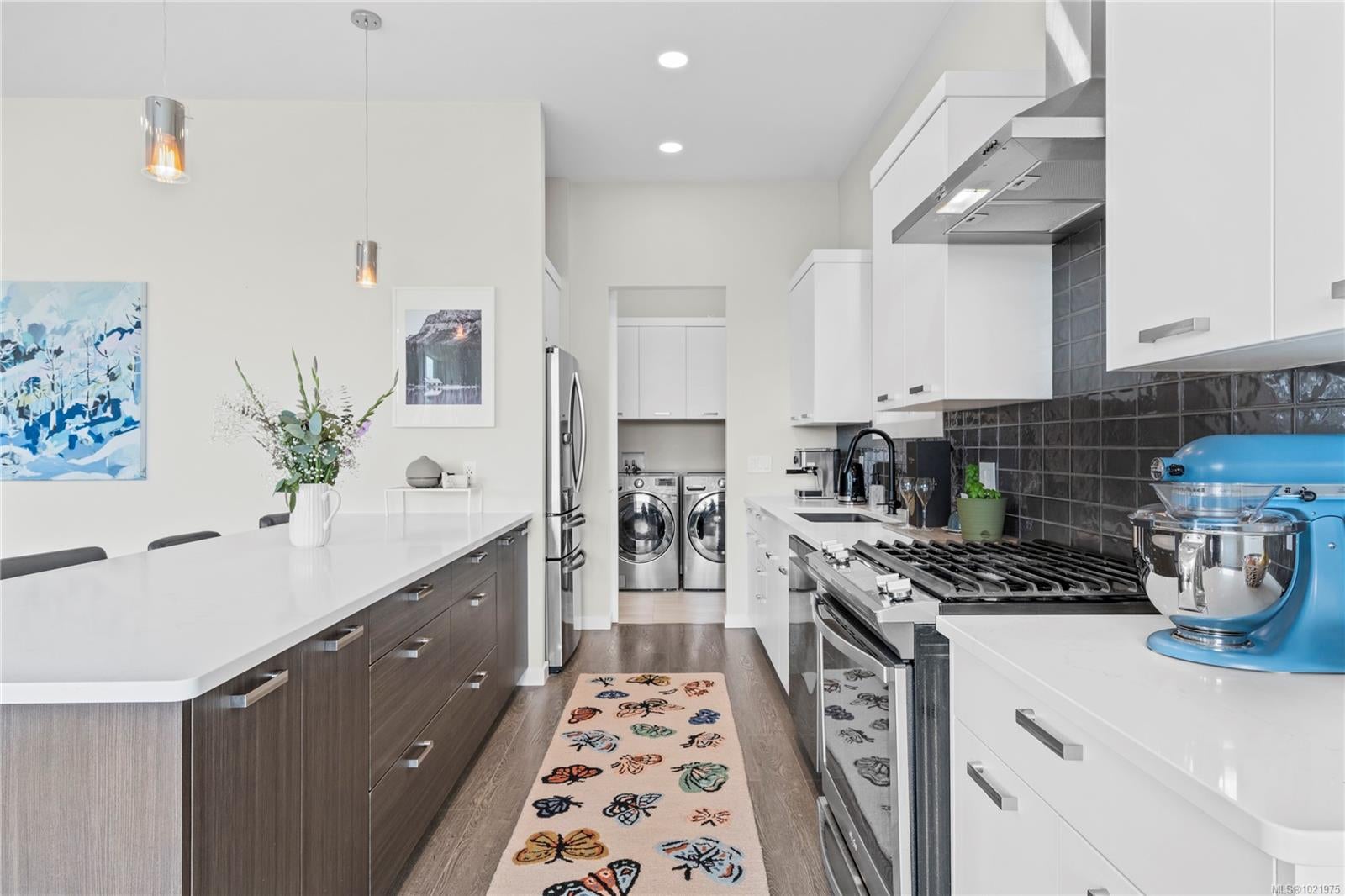 Welcome to 5147 Dunn Place — a stunning Westcoast Contemporary home in sought-after North Nanaimo. This beautifully designed two-level residence by Windley Contracting offers breathtaking ocean views from the living room, dining room and deck as well as a thoughtful, functional layout. The home features 3 bedrooms plus a den, 3 bathrooms, and quality finishes throughout. Highlights include 10-ft ceilings on the main level, a natural gas stove and fireplace, and an open-concept living area ideal for both family life and entertaining. Off the kitchen, a covered sundeck provides the perfect spot to enjoy your morning coffee while overlooking the low-maintenance, fully fenced yard. Located on a quiet, family-oriented street, this property is just a short drive to Woodgrove Centre, schools, and the amenities of North Nanaimo. Outdoor enthusiasts will appreciate being close to Neck Point Park and Piper’s Lagoon. Best of all—no strata fees.
