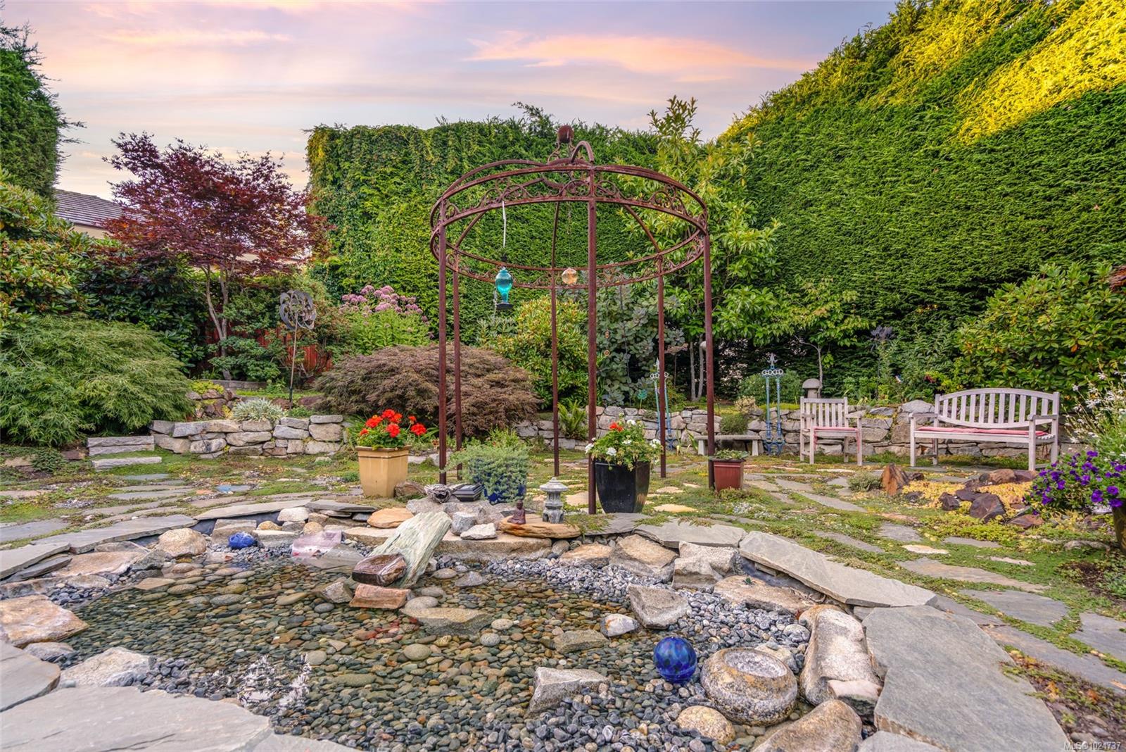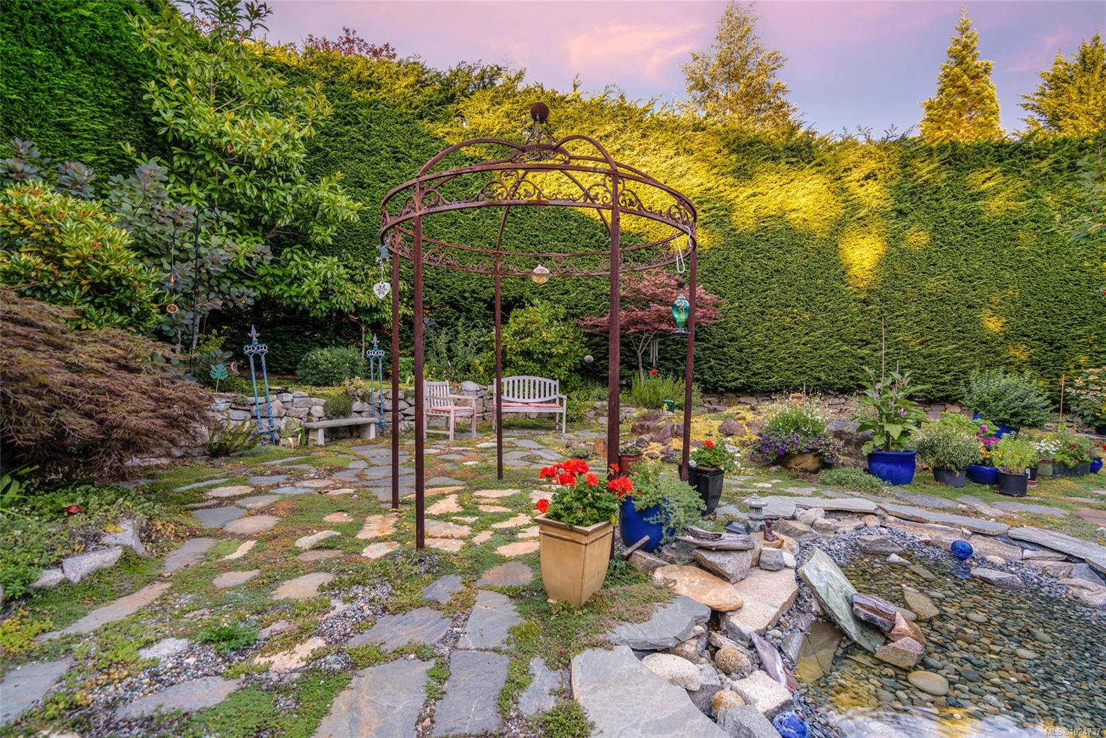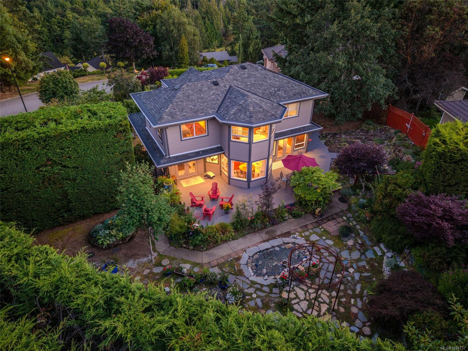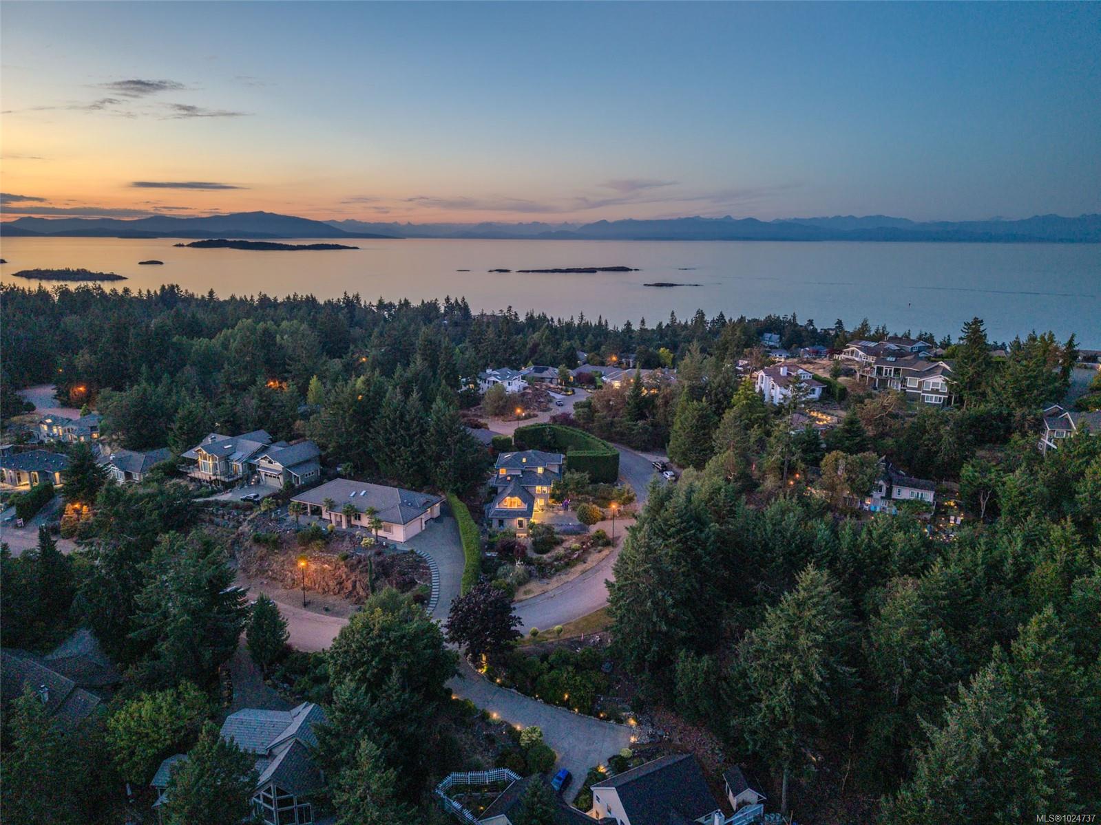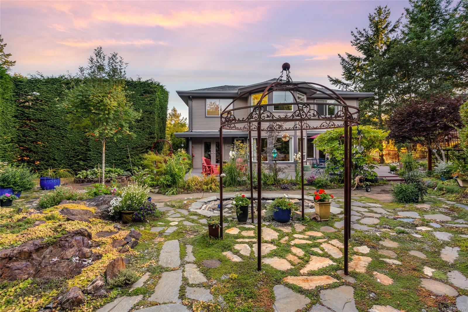 Incomparable Garden Sanctuary in Fairwinds! Be sure to view this stylish 5 Bed/4 Bath main-level entry home with finished upper and lower levels. Embraced by privacy hedging, it rests on a private, park-like .35-acre lot with gorgeous gardens—sure to delight gardening enthusiasts. This captivating home boasts three levels of light-filled living space, clerestories, skylights and OS windows, Formal Living and Dining Rooms, plus large Rec and Family Rooms. There's also a Dbl Garage plus an OH Single Garage for an RV or boat, a level driveway for easy access, and serene outdoor living space—including a huge deck and balcony with views of Dolphin Lake. Located in exclusive Fairwinds Golf Community, just mins from a golf course, a Rec Center, trails, and a waterfront complex with a restaurant and marina, and only a short drive to Parksville and Nanaimo. From a covered porch, a front door opens to a foyer with clerestory windows and a two-story ceiling. Off the foyer you'll find a Living Room with hardwood flooring, and a Dining Room with a lighted alcove. Glass doors lead to an expansive deck overlooking a tiered, park-like yard with tall hedges, gardens, a water feature, gazebo, and fenced garden area—perfect for entertaining or relaxation. The deck is also accessed from the Family Room, featuring BI cabinetry, a propane FP, and a pass-through to the Gourmet Kitchen offering wood cabinetry, ample counter space, a Nook, and stainless appliances incl a propane stove. The main level also hosts a Bedroom, Powder Room, Laundry Room, and a Rec Room where a balcony offers lovely views of the forest and lake. Upstairs is a Primary Suite with a WI closet and 5-pc ensuite, plus two additional Bedrooms and a skylighted 4-pc Bath. The finished lower level offers a Bonus Room, Spare Bedroom, 3-pc Bath, and storage. Great extras incl new roof, visit our website for more.