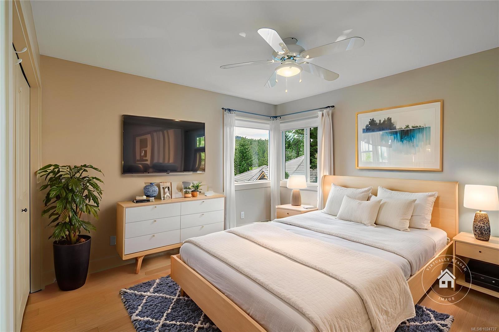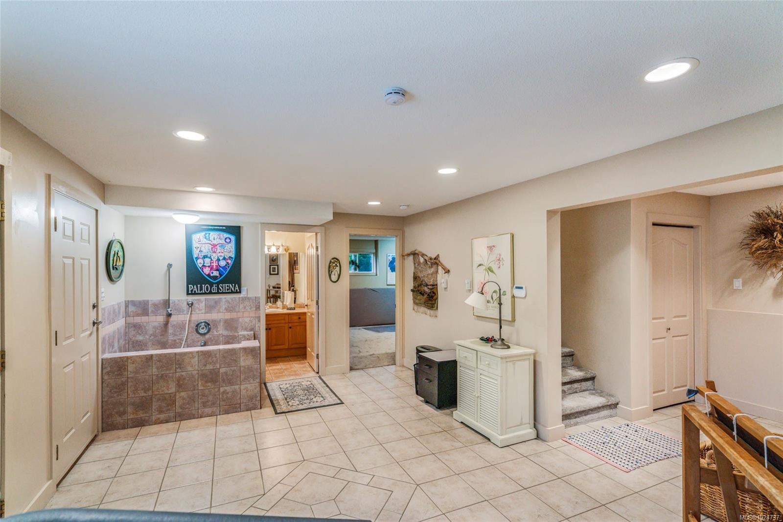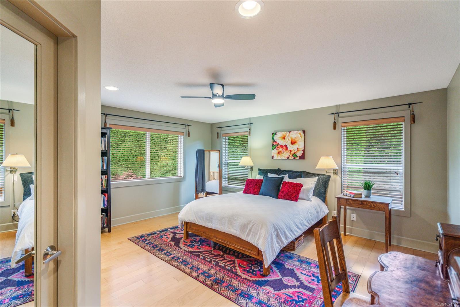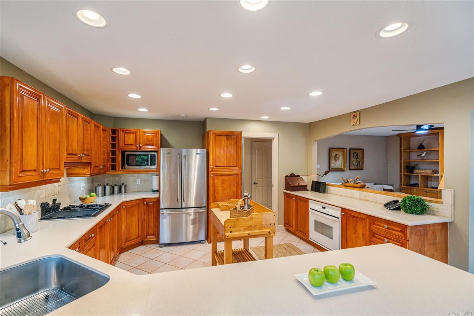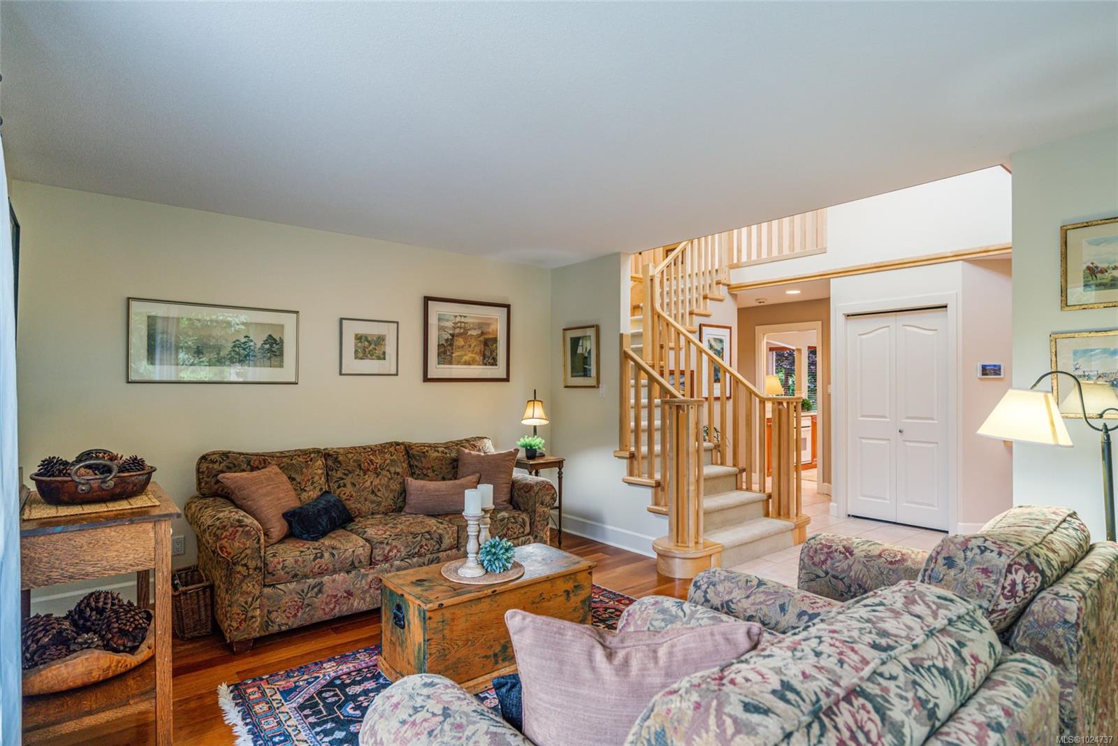 Incomparable Garden Sanctuary in Fairwinds! Be sure to view this stylish 5 Bed/4 Bath main-level entry home with finished upper and lower levels. Embraced by privacy hedging, it rests on a private, park-like .35-acre lot with gorgeous gardens—sure to delight gardening enthusiasts. This captivating home boasts three levels of light-filled living space, clerestories, skylights and OS windows, Formal Living and Dining Rooms, plus large Rec and Family Rooms. There's also a Dbl Garage plus an OH Single Garage for an RV or boat, a level driveway for easy access, and serene outdoor living space—including a huge deck and balcony with views of Dolphin Lake. Located in exclusive Fairwinds Golf Community, just mins from a golf course, a Rec Center, trails, and a waterfront complex with a restaurant and marina, and only a short drive to Parksville and Nanaimo. From a covered porch, a front door opens to a foyer with clerestory windows and a two-story ceiling. Off the foyer you'll find a Living Room with hardwood flooring, and a Dining Room with a lighted alcove. Glass doors lead to an expansive deck overlooking a tiered, park-like yard with tall hedges, gardens, a water feature, gazebo, and fenced garden area—perfect for entertaining or relaxation. The deck is also accessed from the Family Room, featuring BI cabinetry, a propane FP, and a pass-through to the Gourmet Kitchen offering wood cabinetry, ample counter space, a Nook, and stainless appliances incl a propane stove. The main level also hosts a Bedroom, Powder Room, Laundry Room, and a Rec Room where a balcony offers lovely views of the forest and lake. Upstairs is a Primary Suite with a WI closet and 5-pc ensuite, plus two additional Bedrooms and a skylighted 4-pc Bath. The finished lower level offers a Bonus Room, Spare Bedroom, 3-pc Bath, and storage. Great extras incl new roof, visit our website for more.