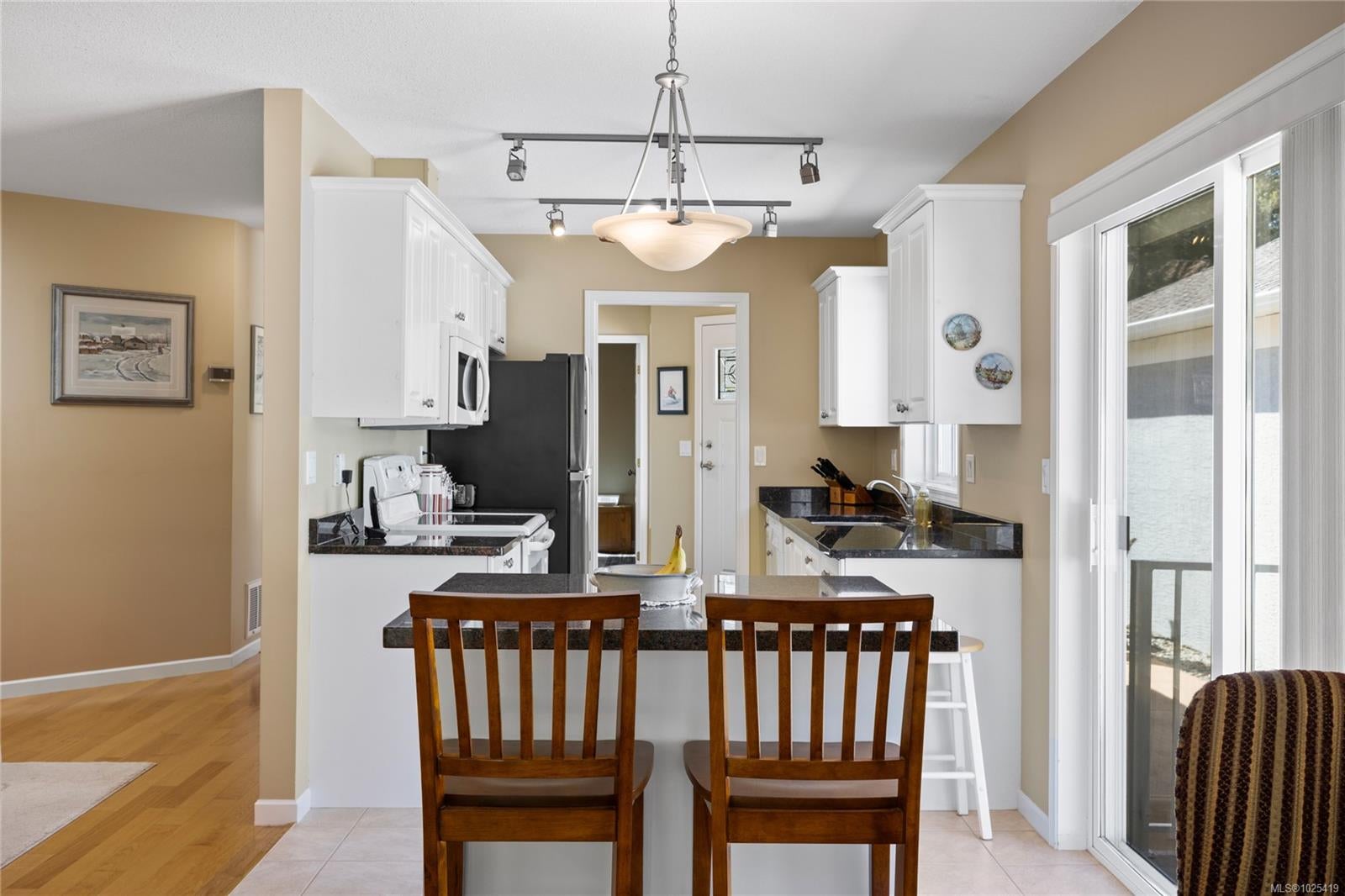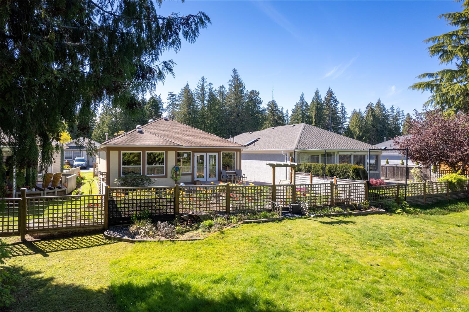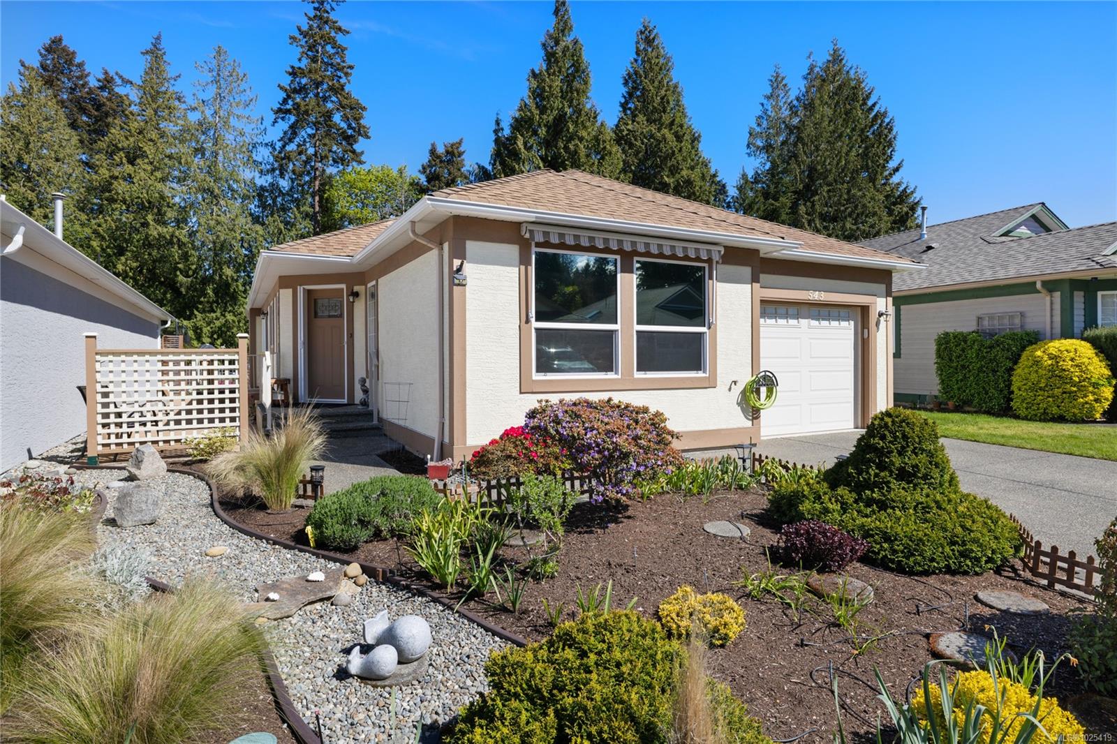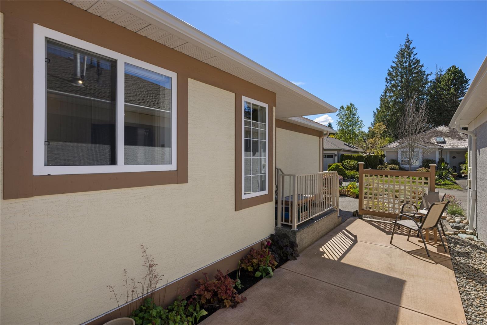 Open house Sun, Feb 15 1-3 pm. Greenspace views from this 2 bed/2 bath, crawlspace Oceanside rancher! Enjoy morning coffee on the East facing patio surrounded by a pretty garden that frames the distant trees. The kitchen has access to a side patio for BBQing, granite counters, a moveable island w/additional storage & is open to the living/dining area & greenspace views. The generous Primary suite with new garden view windows, has a walk in closet & 4pc ensuite. On the opposite side of the home, the guest room has a Murphy Bed & walk through closet to a 3pc cheater ensuite. The 2014 roof boasts a skylight & sun tunnels, & the HW on demand & 6yr high efficiency gas furnace all point to reasonable utilities. A natural gas heater in the single garage, combined with the carpeted floor, is luxury for your hobbies, work out space or your car! This friendly bare land strata with no age restriction, welcomes pets & has a low monthly fee of $97. Just steps to the sandy beach in a terrific neighbourhood for walking & cycling!