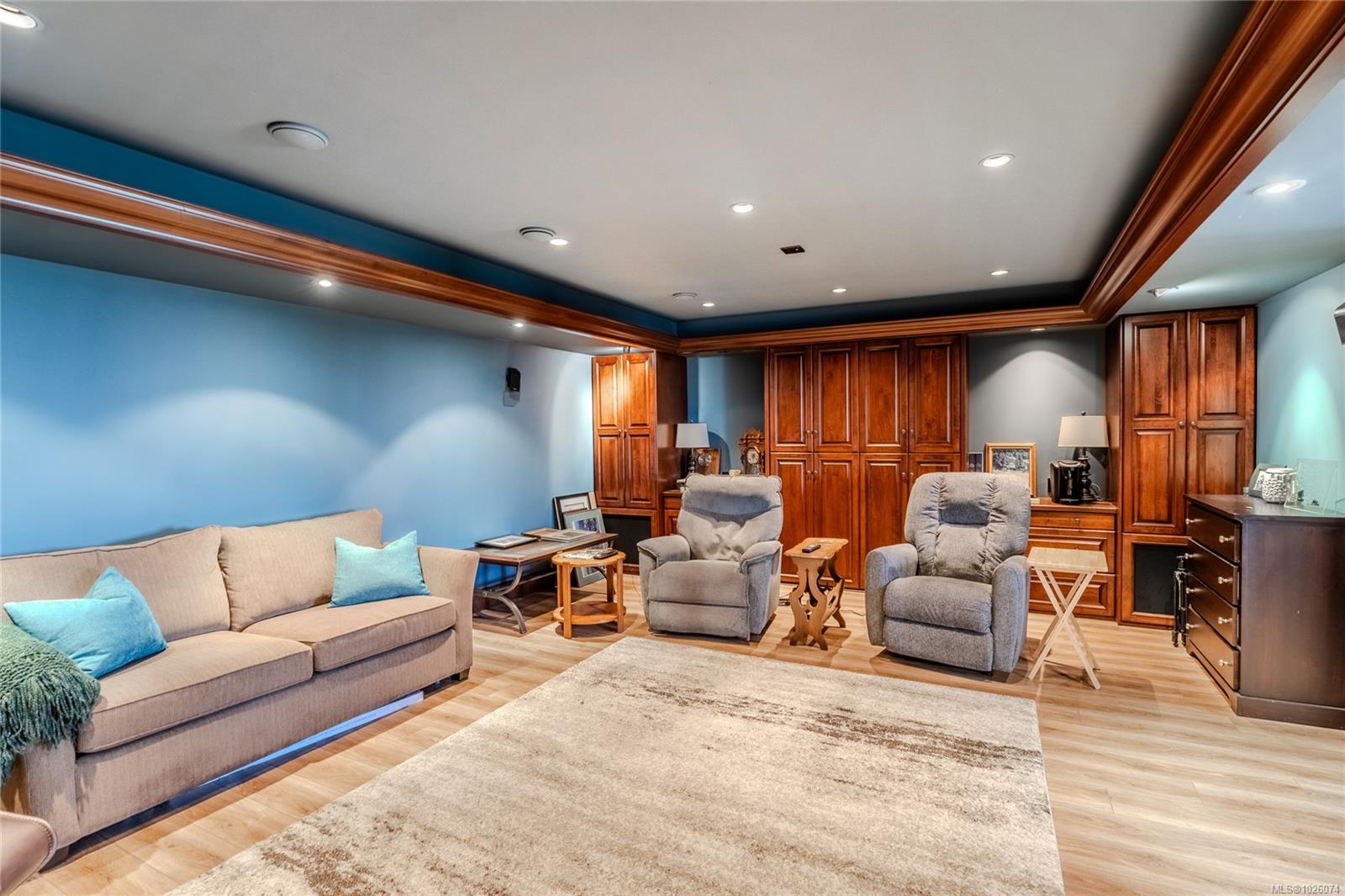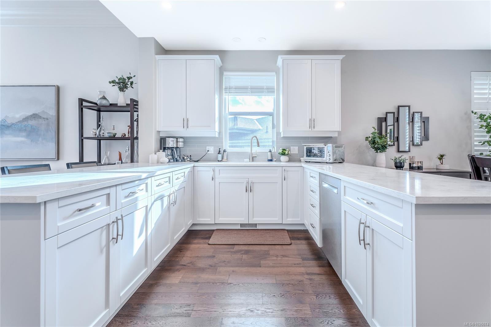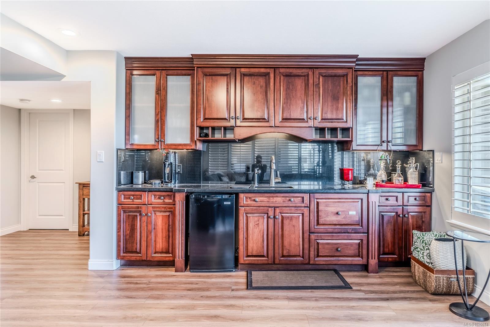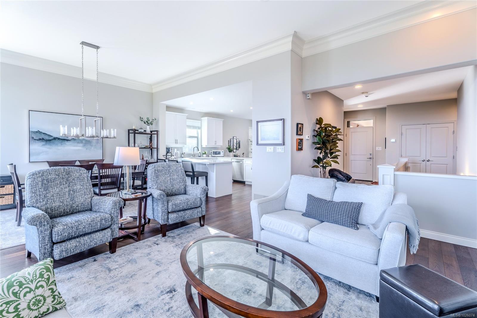 Turnkey elegance awaits at 2418 Greenridge Crescent, where spectacular ocean views, a cozy fireplace, spacious kitchen, and single-level living are complemented by a fully finished walkout lower level. The well-appointed kitchen, featuring a Wolf gas range, is perfectly designed for entertaining, flowing seamlessly into the open living and dining areas and a covered deck showcasing breathtaking 180-degree vistas. The serene primary suite offers an updated ensuite with heated floors for added comfort. Downstairs, enjoy inviting guest accommodations, a generous family room with wet bar and dishwasher, a versatile media/flex room with Murphy bed, full bath, ample storage, and another covered patio. Located in the prestigious Observation Point neighbourhood, stroll to Fairwinds Golf Course, Rec Centre, and Brickyard Beach, and short drives to Schooner Cove Marina, local shopping, Nanaimo, and Parksville. A truly exceptional coastal home.