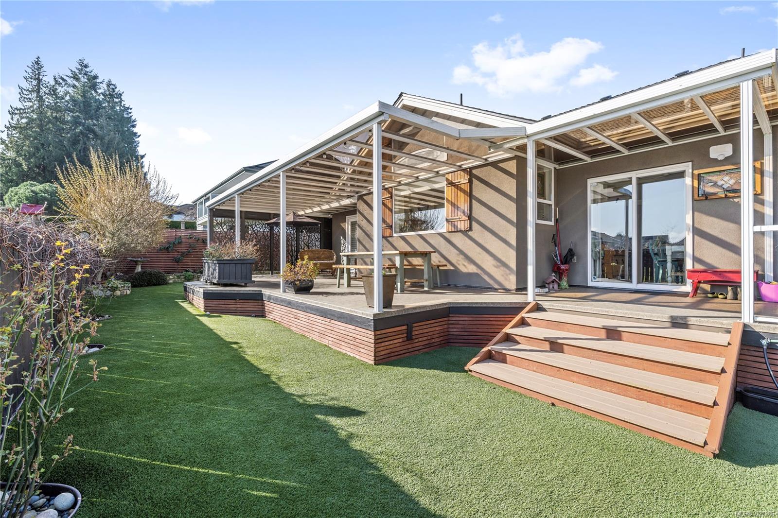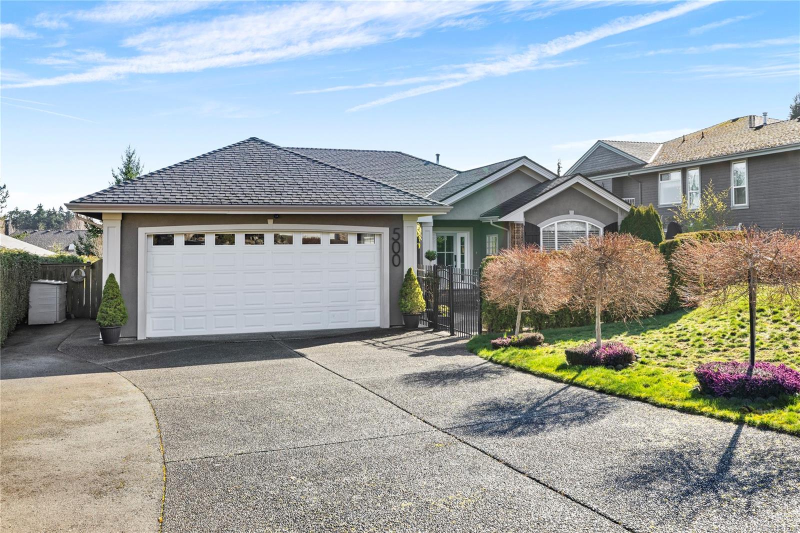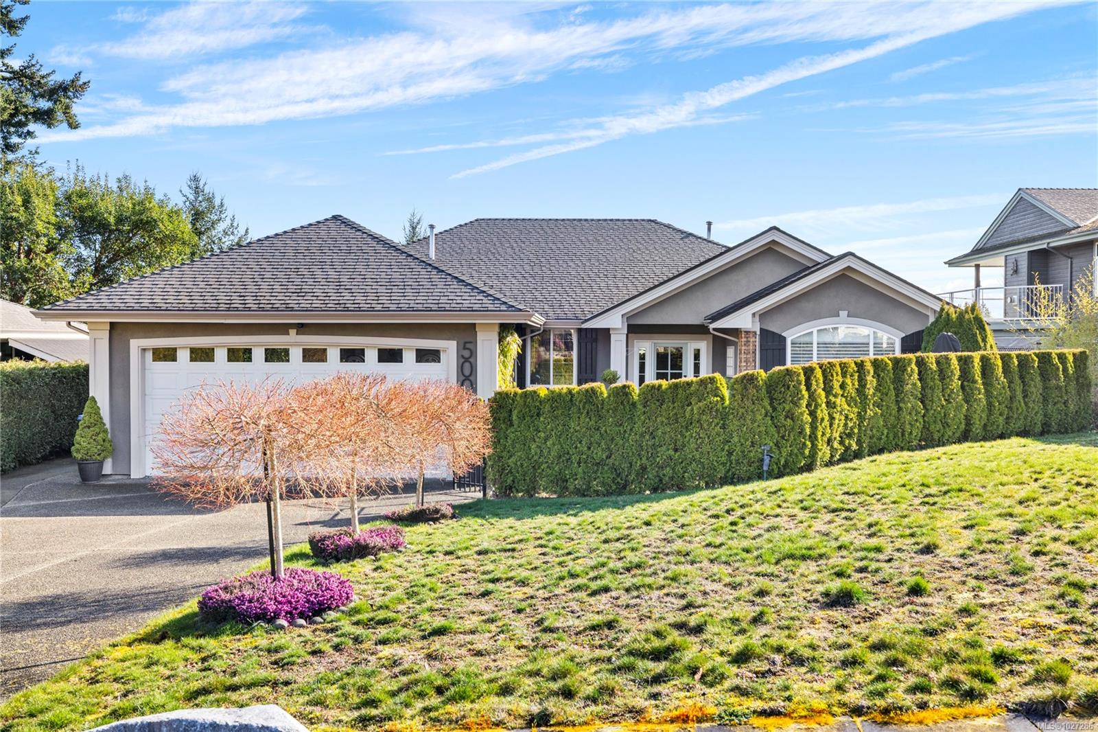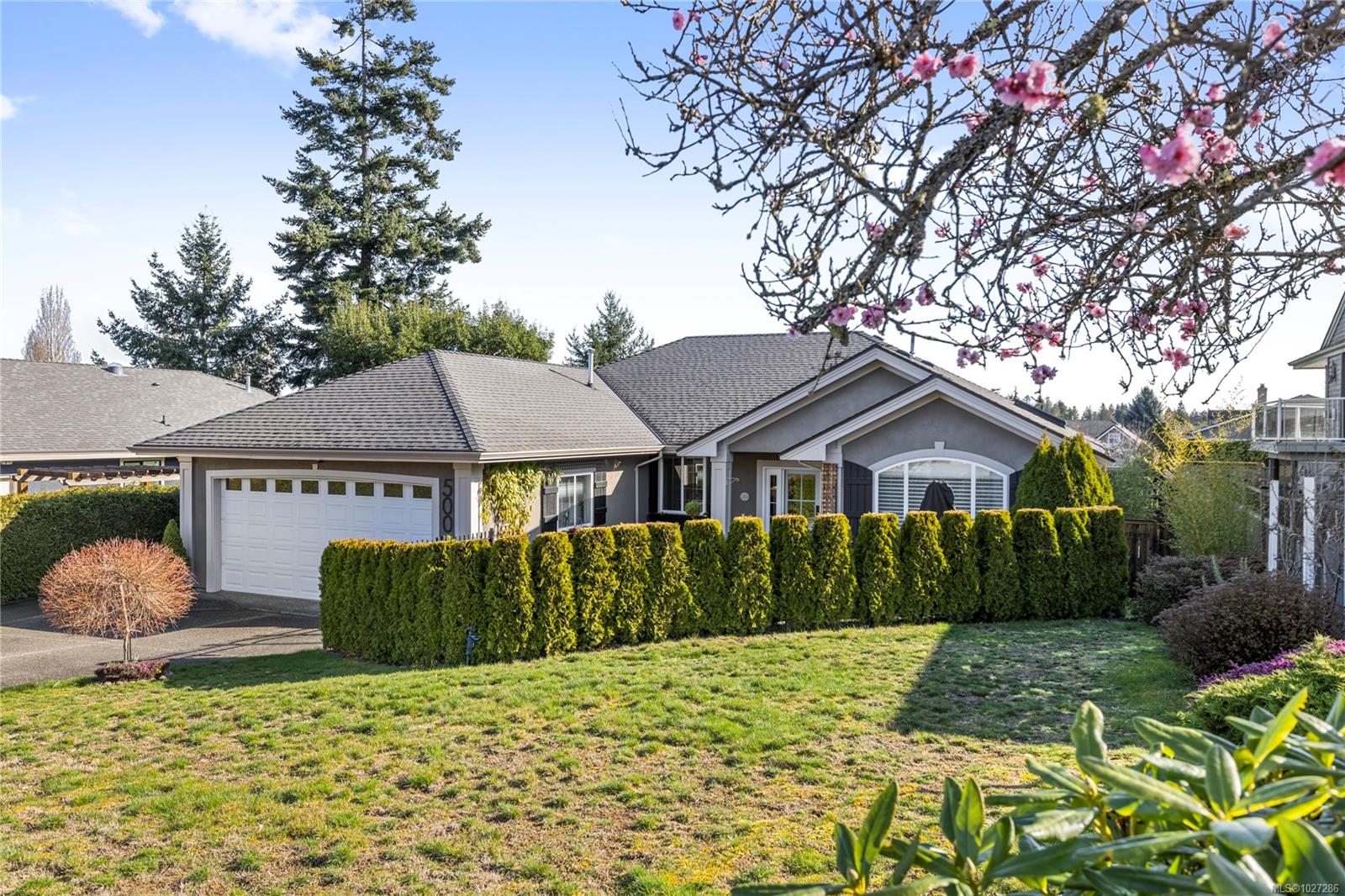 Inviting & Updated Eaglecrest Rancher – Just a Short Stroll to the Beach! Nestled in a quiet cul-de-sac, this beautifully updated 3 Bedroom plus den executive rancher offers the perfect blend of comfort, style, and location. Thoughtfully updated and filled with natural light, the home features skylights, oversized windows, and an inviting open layout designed for easy everyday living and entertaining. Classic architectural details including 9-foot ceilings, arched doorways, amazing millwork like crown molding, and wainscoting add timeless charm throughout. Step inside to a welcoming formal living room with a tray ceiling, lighted display cabinetry, and an elegant electric fireplace. Maple flooring leads into the bright kitchen, dining, and family room, where a cozy natural gas fireplace creates a warm gathering space. The kitchen is a show piece with vaulted ceilings, skylights, quartz countertops, stainless appliances, and a butcher-block island perfect for meals and conversation. The spacious primary suite offers a relaxing retreat with a spa-inspired ensuite while, two additional bedrooms and an updated second bath offer comfortable space for family or guests. Outdoor living is exceptional with over 1,700 sq.ft. of deck and patio space, including a private west-facing courtyard patio framed by mature hedging. The sunny backyard features raised garden beds, berry plantings, easy-care turf, and a generous covered deck perfect for year-round enjoyment. Complete with a double garage and located just minutes from the Village Centre, golf, walking trails, and the sandy shoreline, this inviting Eaglecrest home offers the relaxed Vancouver Island lifestyle at its best.