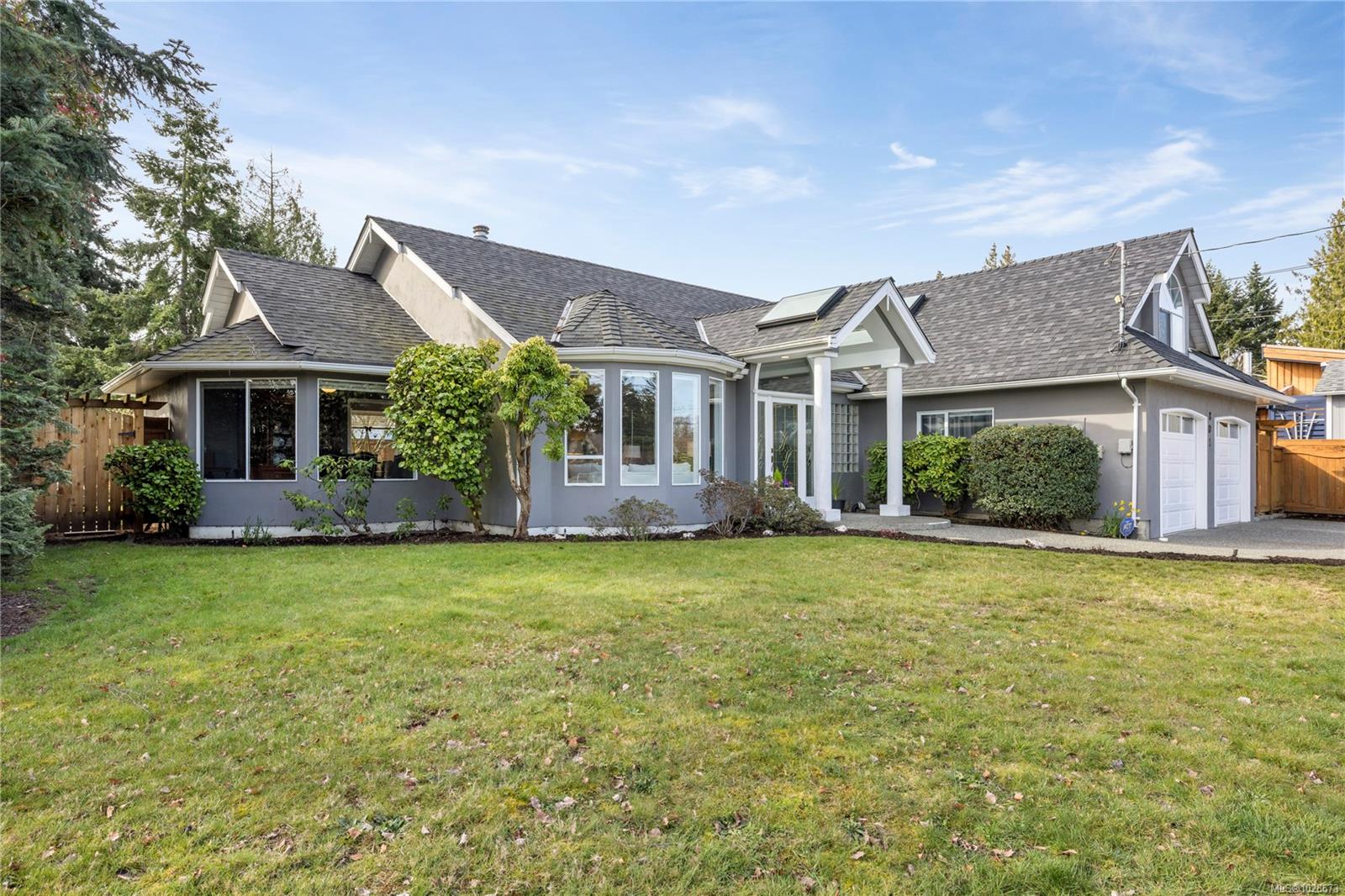 Just a short walk to the oceanfront. This well-appointed home welcomes you with a covered entry leading into a bright cathedral-style tiled foyer. Thoughtfully designed with a natural flow, the layout offers privacy, comfort & a true sense of “It’s good to be home.” A spacious living rm features a striking curved wall of windows & connects seamlessly to the formal dining rm, also surrounded by large windows & offers convenient access to the kitchen. Down a short hallway you’ll find the primary bdrm offering access to a back patio & is complete with a spa-inspired ensuite featuring a soaker tub & skylight. This level also includes a 2nd bdrm & a 4-pc bath. A 3rd bdrm is located up a short flight of stairs perfect for guests, hobbies, crafts, or home office. A fenced, south-facing backyard is ideal for relaxing & entertaining, with two patios. Additional highlights include a double garage, 4 skylights, a garden shed & close proximity to recreation, golfing, fishing, shopping & more.