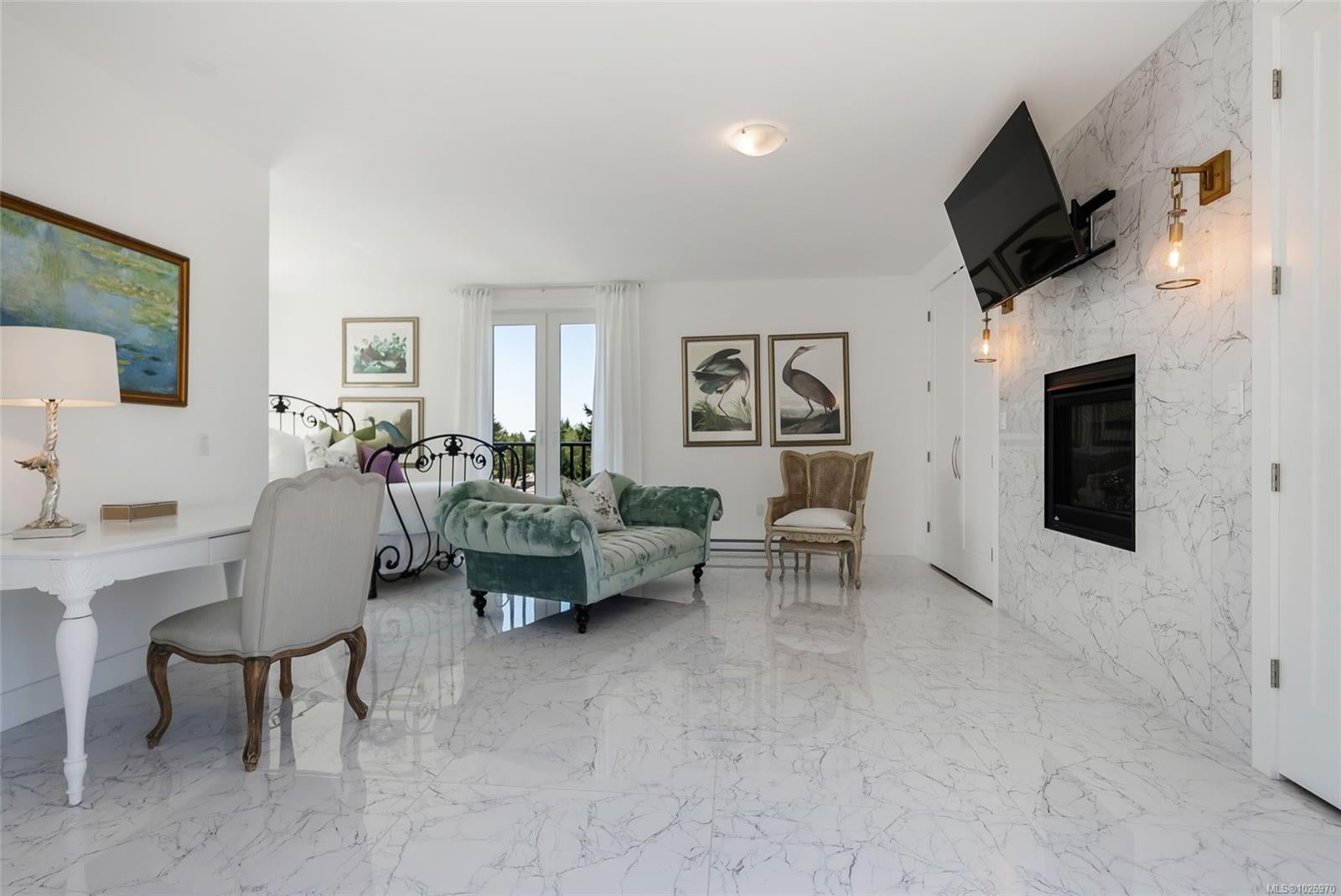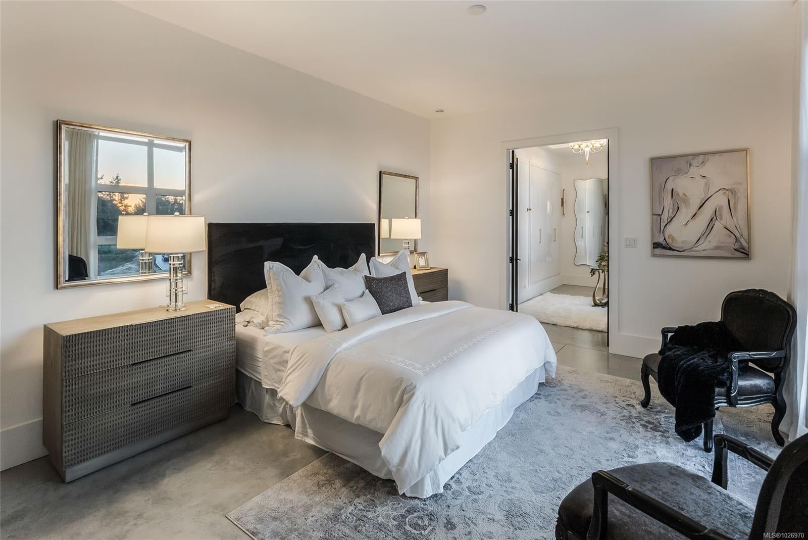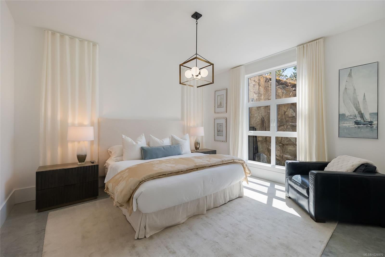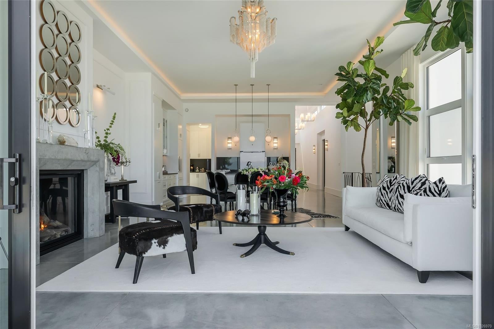 Exquisite Fairwinds Villa with captivating Ocean Views. Once in a lifetime opportunity to own a glorious custom home with elegant designer details in every room. The great room will captivate your imagination, flooded with natural light, soaring ceilings and a dazzling open plan Kitchen (with Butlers pantry), all flowing out onto a generous patio for al fresco dining with an infinity pool framing the magnificent Ocean vistas. Relax in your luxurious Primary Suite with glamorous walk in closet and blissful ensuite. Generous guest accommodations, both in the main house and in the separate studio allow for gathering of family and friends. Art niches and inspiring light fixtures allow you to create artistic scenes throughout your home. This unique architectural home nestled into low maintenance landscaping will allow you to live Your Vancouver Island Dream Today.