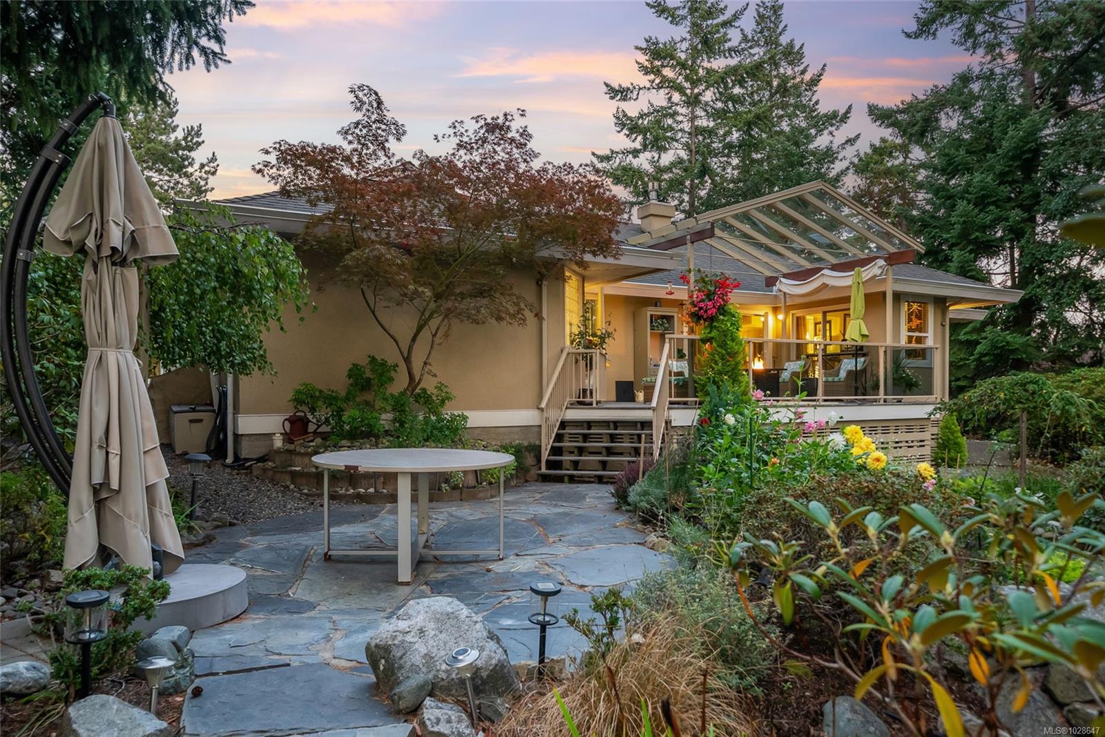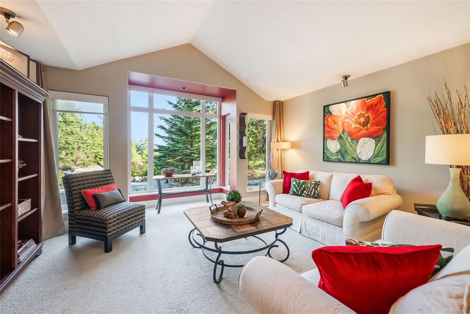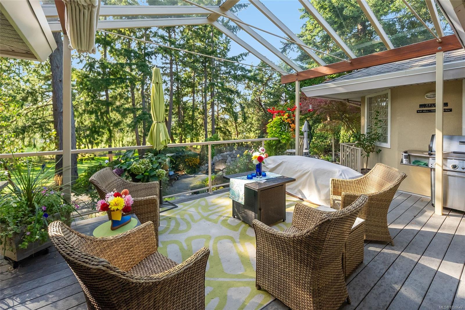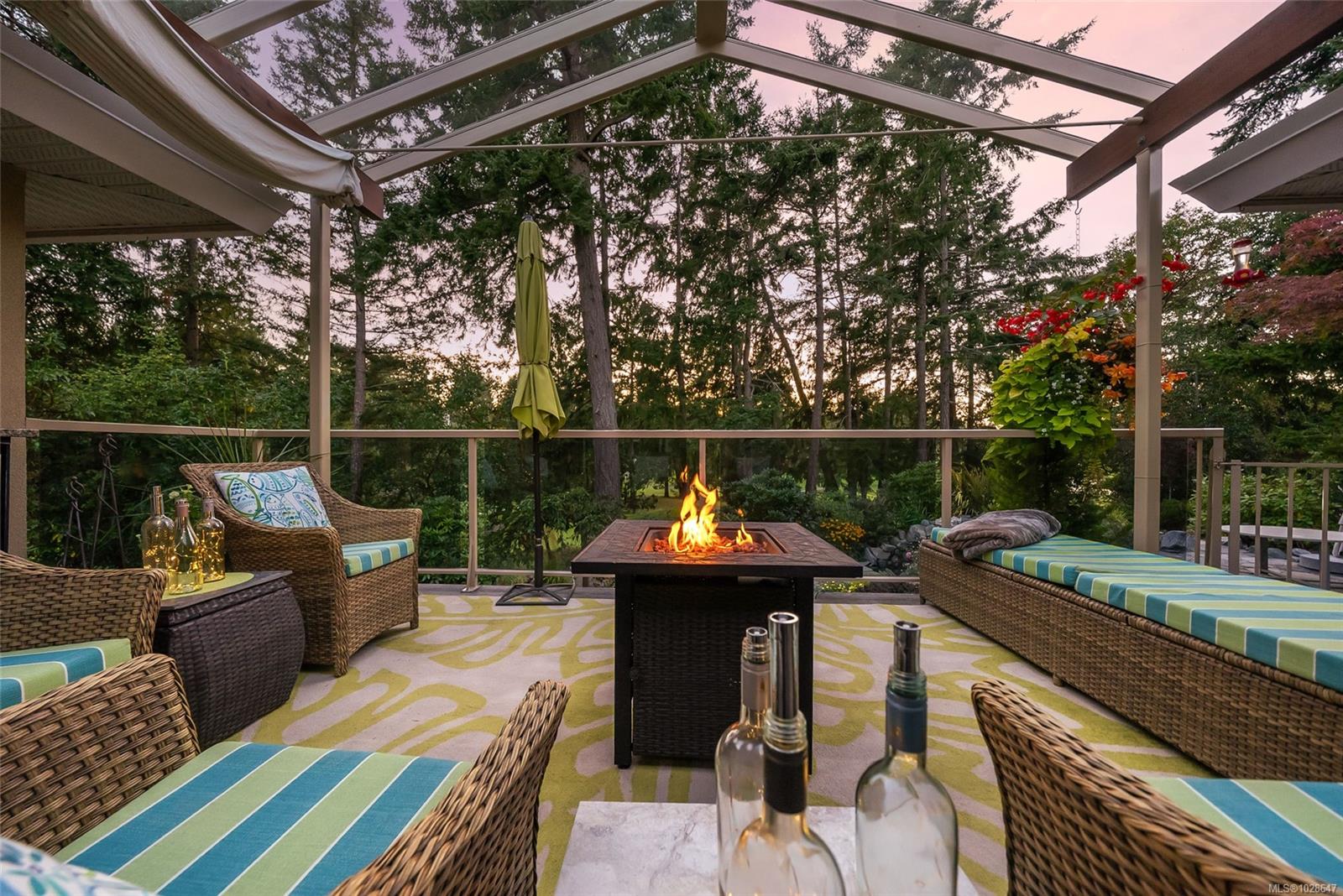 Immaculate updated rancher on the 18th Green of Fairwinds Golf course. This stunning home has been charmingly updated with designer touches. Walk or drive your golf cart onto the course, stroll across the street to the clubhouse for dinner, or entertain at home with your gourmet Kitchen and family room flowing onto the stunning deck with a vaulted custom glass cover and whimsical water feature. 3 bedrooms and an office (or 4th bedroom) all on one floor with plenty of room to gather with family and friends. Attractive landscaping with a serene granite waterfall, stone planters and thoughtfully planned pathways complete this total package which could be your 'Dream Home'. Find your natural balance in the farm to table community of Nanoose Bay. An unfinished basement offers exceptional storage.