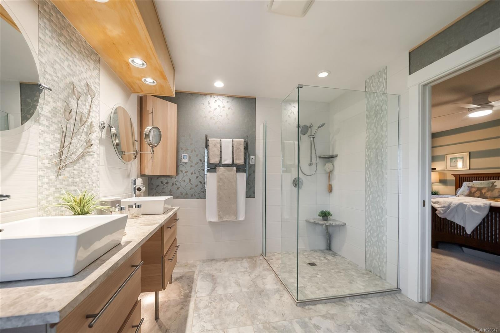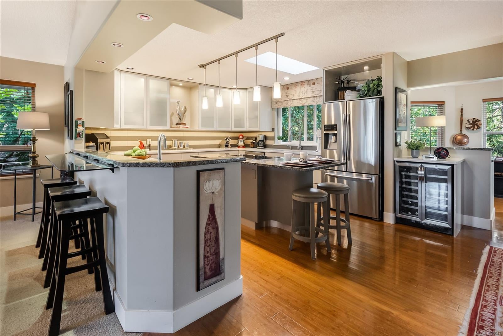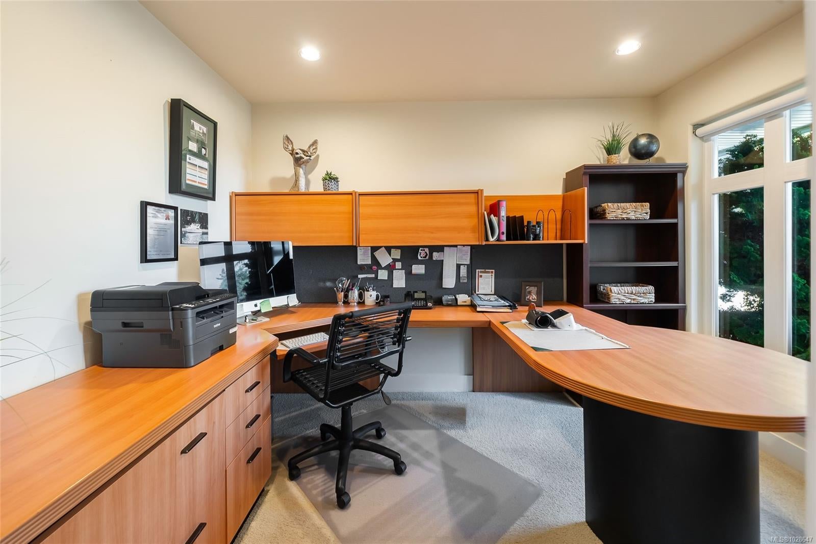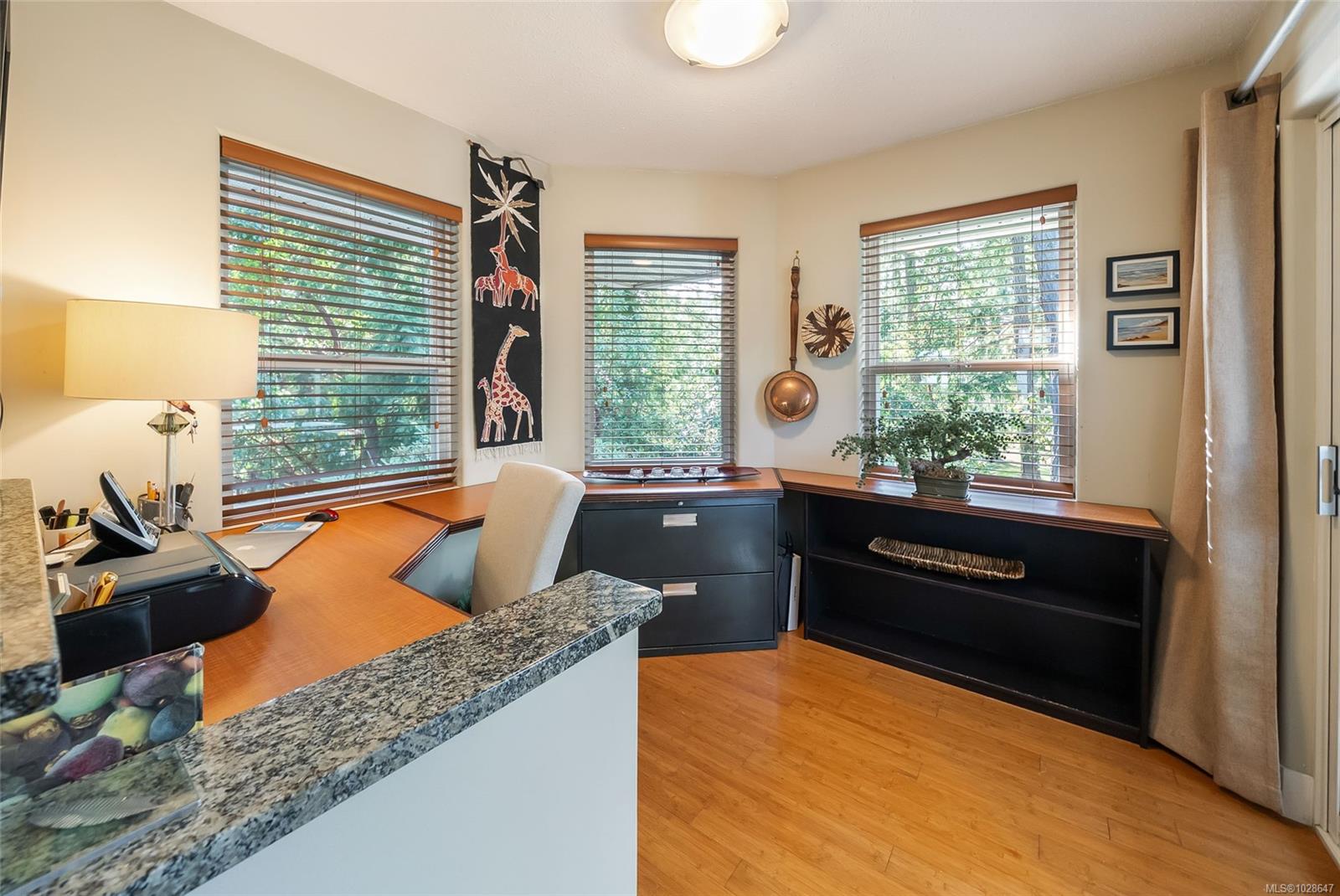 Immaculate updated rancher on the 18th Green of Fairwinds Golf course. This stunning home has been charmingly updated with designer touches. Walk or drive your golf cart onto the course, stroll across the street to the clubhouse for dinner, or entertain at home with your gourmet Kitchen and family room flowing onto the stunning deck with a vaulted custom glass cover and whimsical water feature. 3 bedrooms and an office (or 4th bedroom) all on one floor with plenty of room to gather with family and friends. Attractive landscaping with a serene granite waterfall, stone planters and thoughtfully planned pathways complete this total package which could be your 'Dream Home'. Find your natural balance in the farm to table community of Nanoose Bay. An unfinished basement offers exceptional storage.