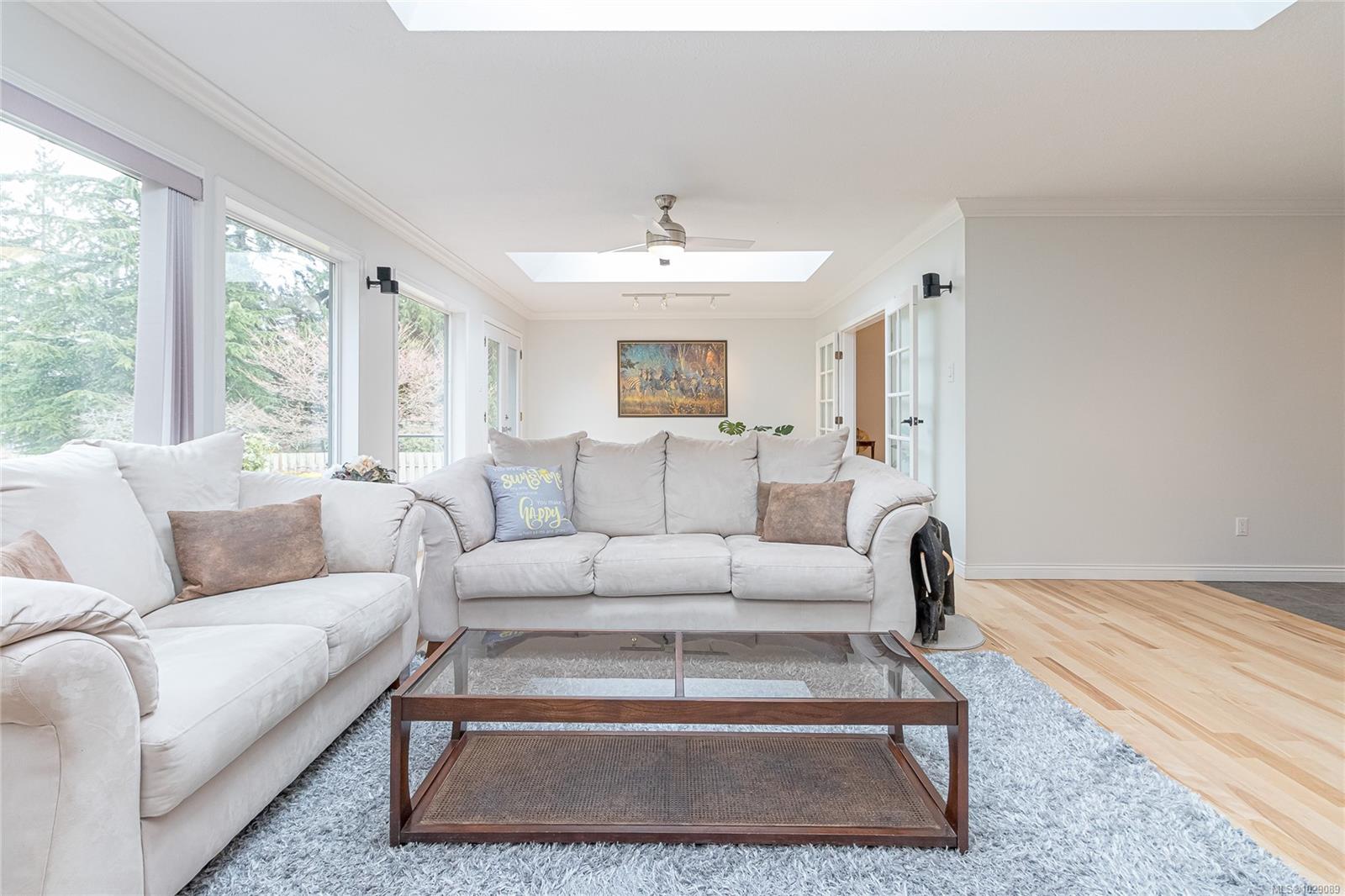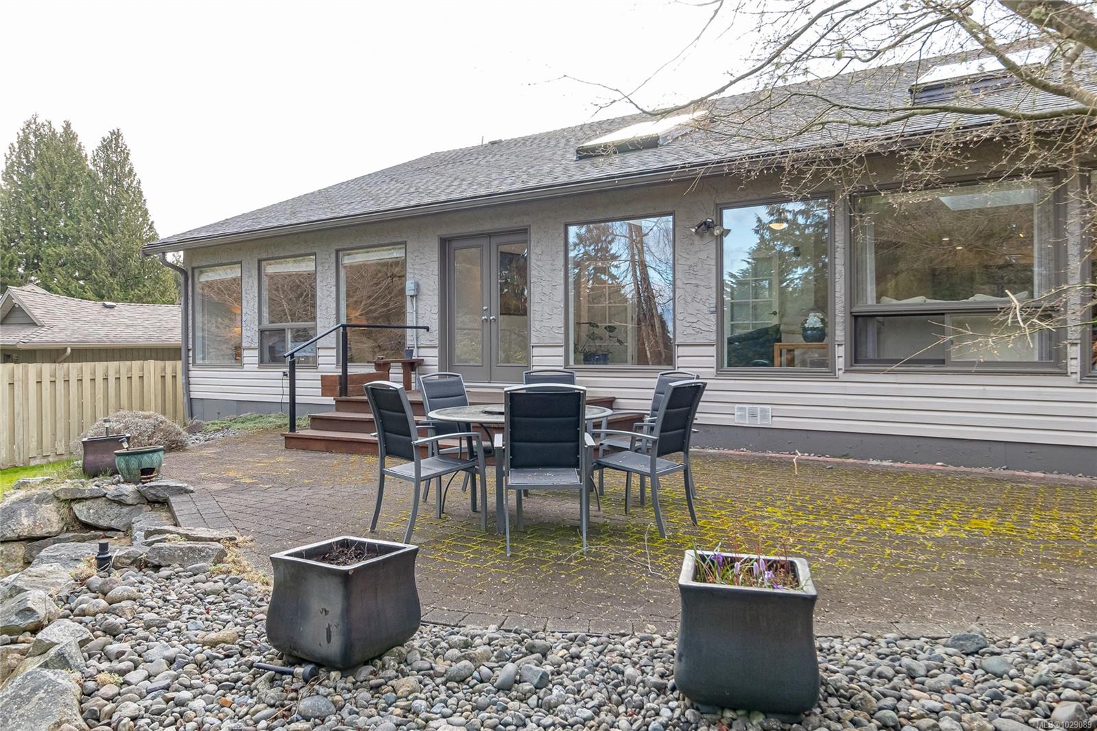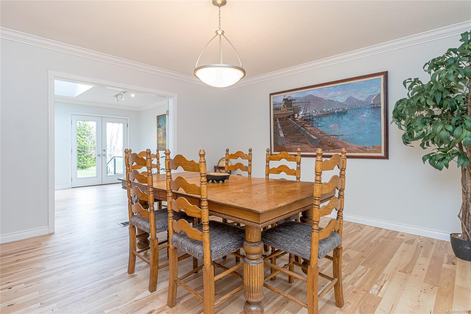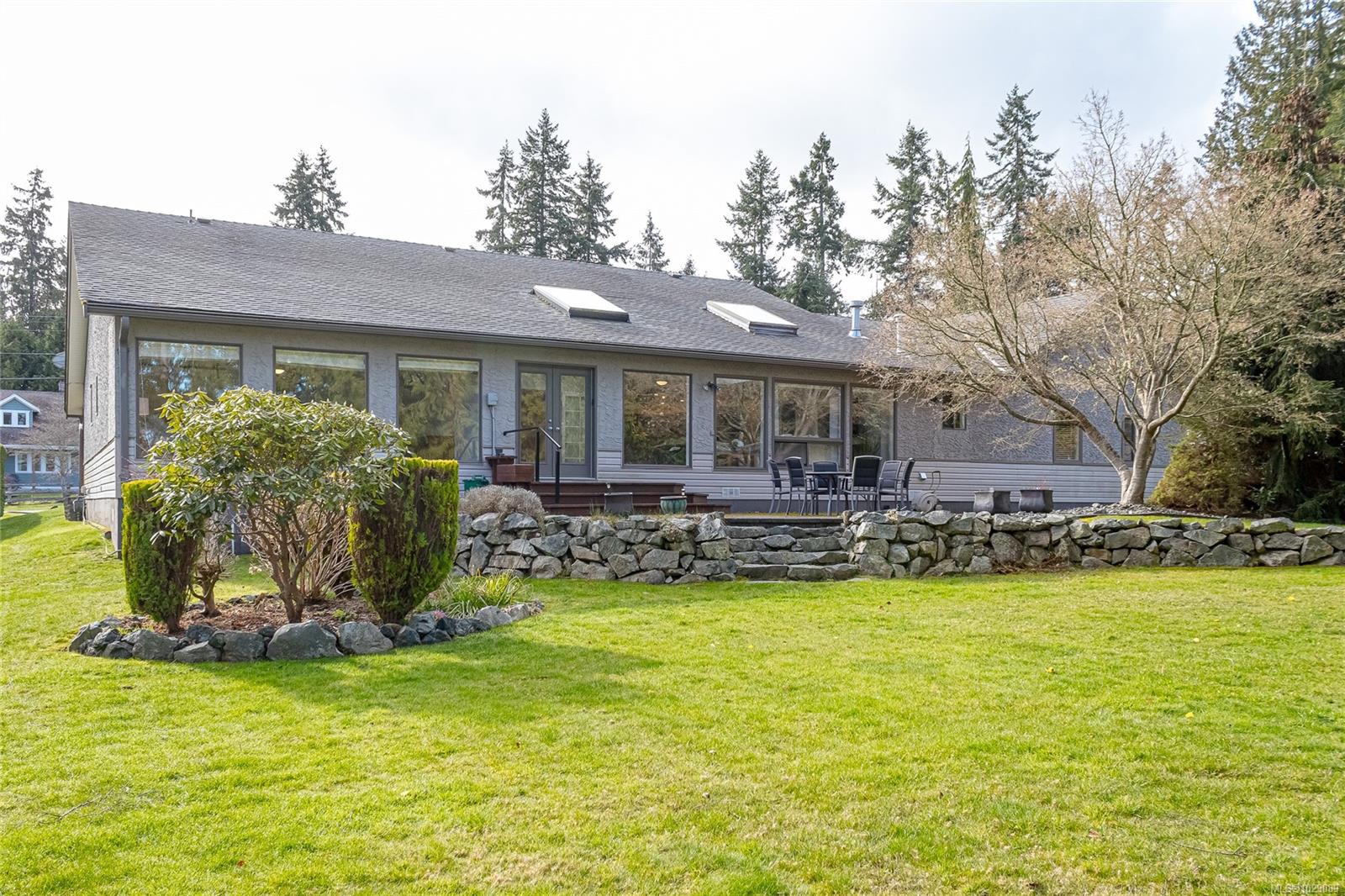 Eaglecrest Living! Incredible value in an exceptional golf course location. Set on a beautifully landscaped and .46-acre lot overlooking the fairway, this spacious 2,848 sq. ft. rancher offers elegant one-level living in one of Qualicum Beach’s most desirable neighbourhoods. Freshly painted with refinished floors and updated bathrooms, the home has been thoughtfully improved while maintaining its warm, timeless character. Inside, the layout is generous and inviting, with a wonderful sense of light, flow, and connection to the outdoors. Large skylights brighten the principal living spaces, while crown mouldings, real hardwood floors, newer windows, French doors, and two gas fireplaces add comfort and style throughout. The bright, modern kitchen features updated shaker cabinetry and an eating bar which opens to a generous family room, creating an ideal gathering place for daily living. Formal living and dining rooms offer excellent space for entertaining, while a sunny sitting lounge overlooks the spectacular backyard gardens and fairway beyond. The home offers 3 bedrooms plus a den/office and 3 baths, including a spacious primary suite designed for comfort, with room for a king-sized setup, a walk-in closet, and a well-appointed ensuite. The additional bedrooms and flexible office space provide room for guests, hobbies, or working from home. Outdoors, the setting is truly special. Mature landscaping, lush hedging, and private garden areas create a serene park-like retreat, while the fairway views add a beautiful sense of openness and natural outlook. A double garage, crawlspace storage, RV parking, and irrigation add convenience and function. Located just minutes from Qualicum Beach, French Creek Marina, and some of Vancouver Island’s most stunning sandy beaches, this is a rare opportunity to enjoy the Eaglecrest lifestyle in a beautifully updated home. Measurements approximate and should be verified if important.