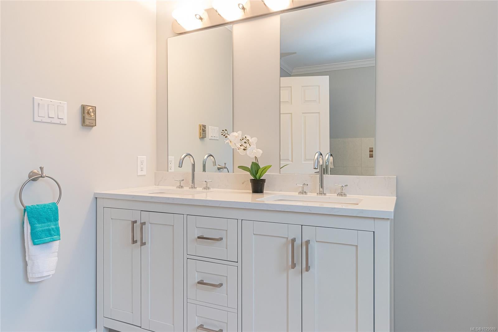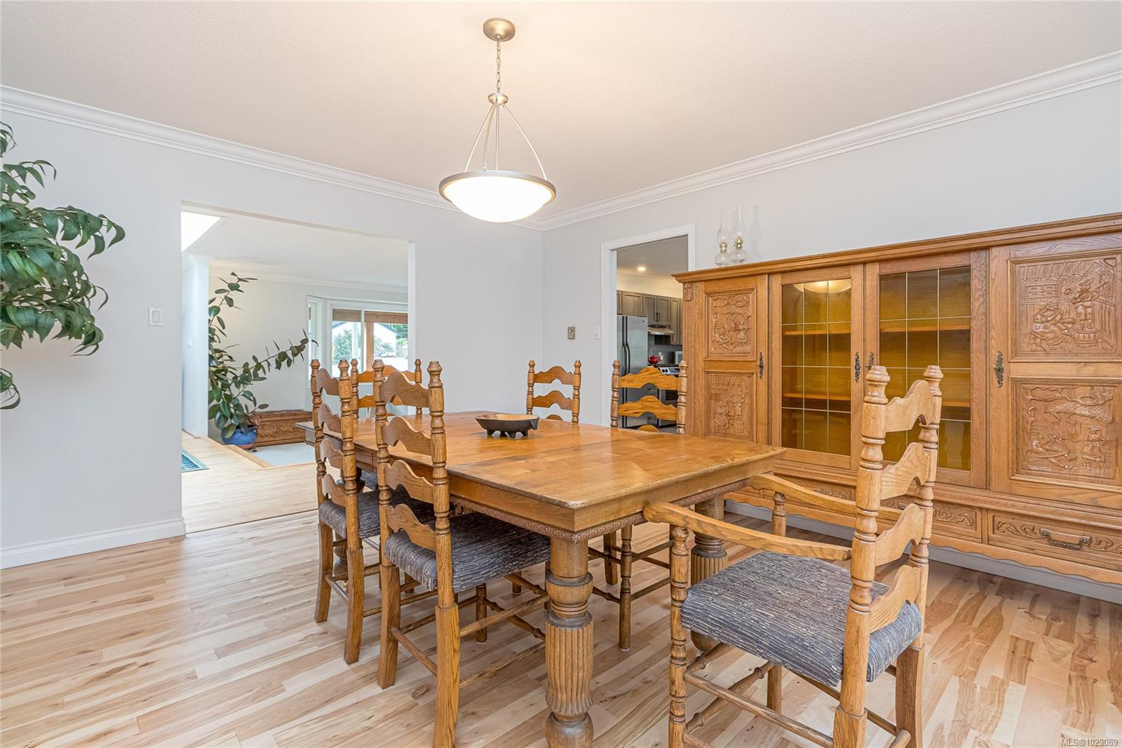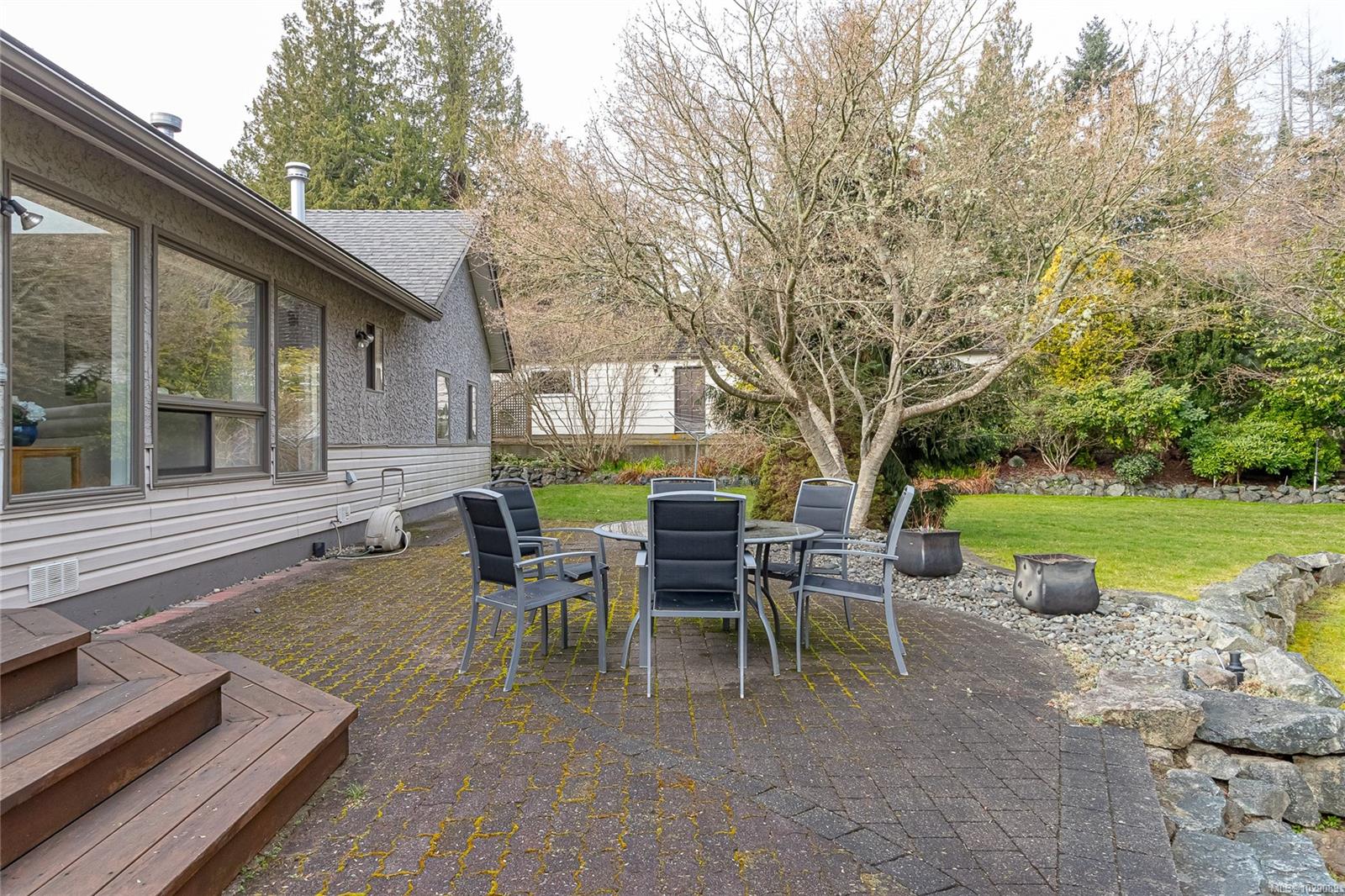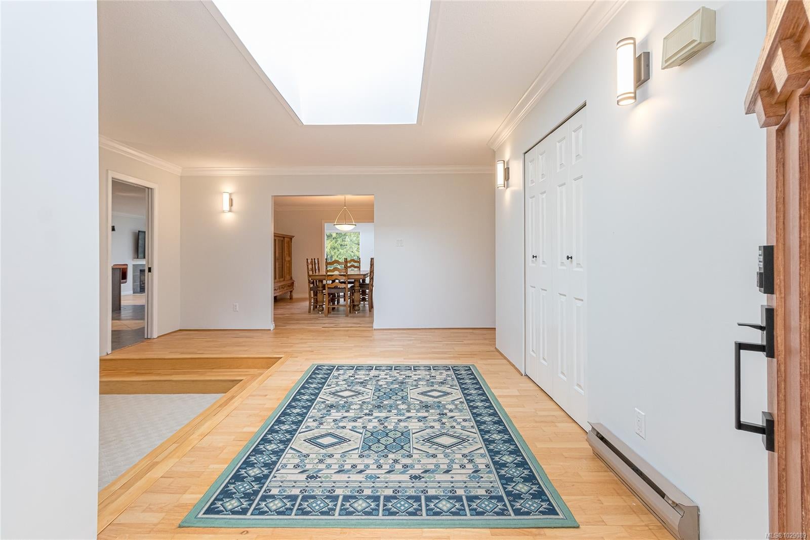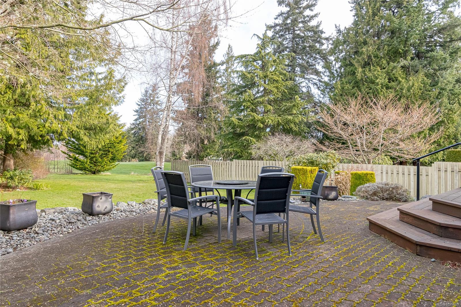 Eaglecrest Living! Incredible value in an exceptional golf course location. Set on a beautifully landscaped and .46-acre lot overlooking the fairway, this spacious 2,848 sq. ft. rancher offers elegant one-level living in one of Qualicum Beach’s most desirable neighbourhoods. Freshly painted with refinished floors and updated bathrooms, the home has been thoughtfully improved while maintaining its warm, timeless character. Inside, the layout is generous and inviting, with a wonderful sense of light, flow, and connection to the outdoors. Large skylights brighten the principal living spaces, while crown mouldings, real hardwood floors, newer windows, French doors, and two gas fireplaces add comfort and style throughout. The bright, modern kitchen features updated shaker cabinetry and an eating bar which opens to a generous family room, creating an ideal gathering place for daily living. Formal living and dining rooms offer excellent space for entertaining, while a sunny sitting lounge overlooks the spectacular backyard gardens and fairway beyond. The home offers 3 bedrooms plus a den/office and 3 baths, including a spacious primary suite designed for comfort, with room for a king-sized setup, a walk-in closet, and a well-appointed ensuite. The additional bedrooms and flexible office space provide room for guests, hobbies, or working from home. Outdoors, the setting is truly special. Mature landscaping, lush hedging, and private garden areas create a serene park-like retreat, while the fairway views add a beautiful sense of openness and natural outlook. A double garage, crawlspace storage, RV parking, and irrigation add convenience and function. Located just minutes from Qualicum Beach, French Creek Marina, and some of Vancouver Island’s most stunning sandy beaches, this is a rare opportunity to enjoy the Eaglecrest lifestyle in a beautifully updated home. Measurements approximate and should be verified if important.