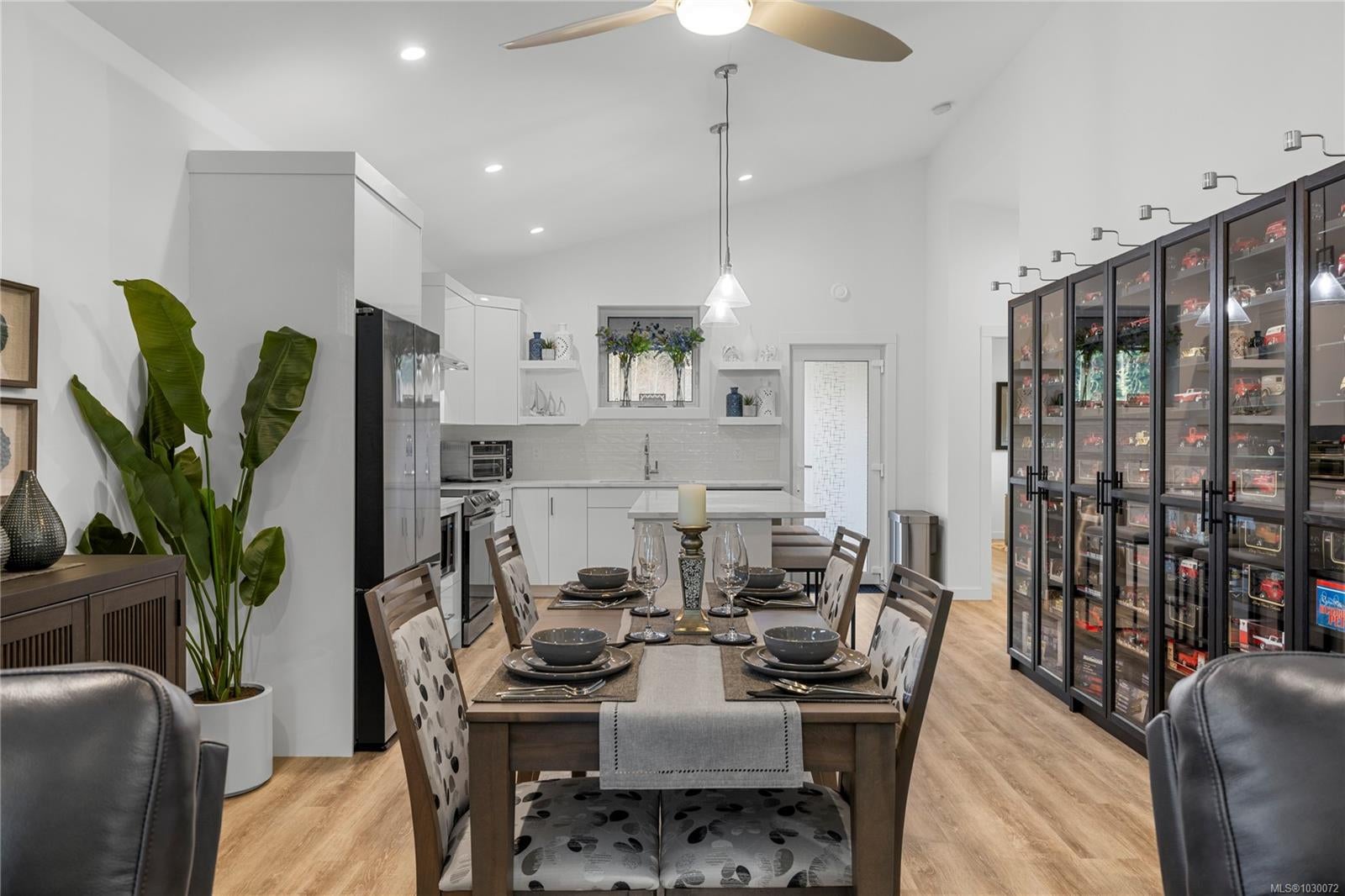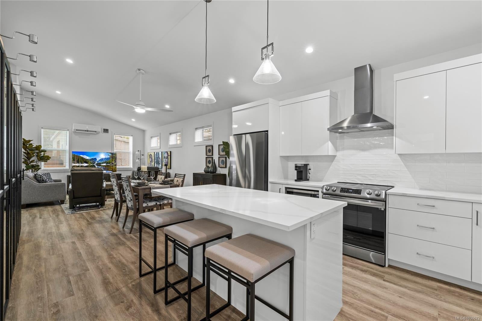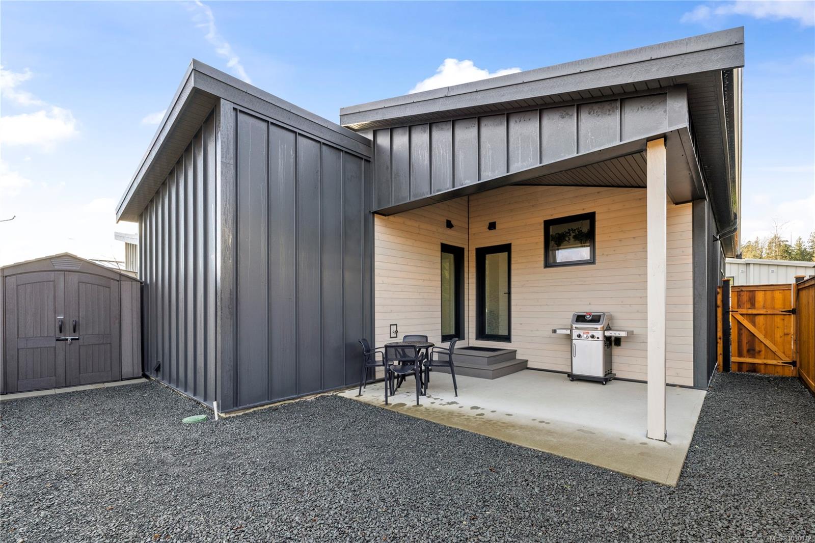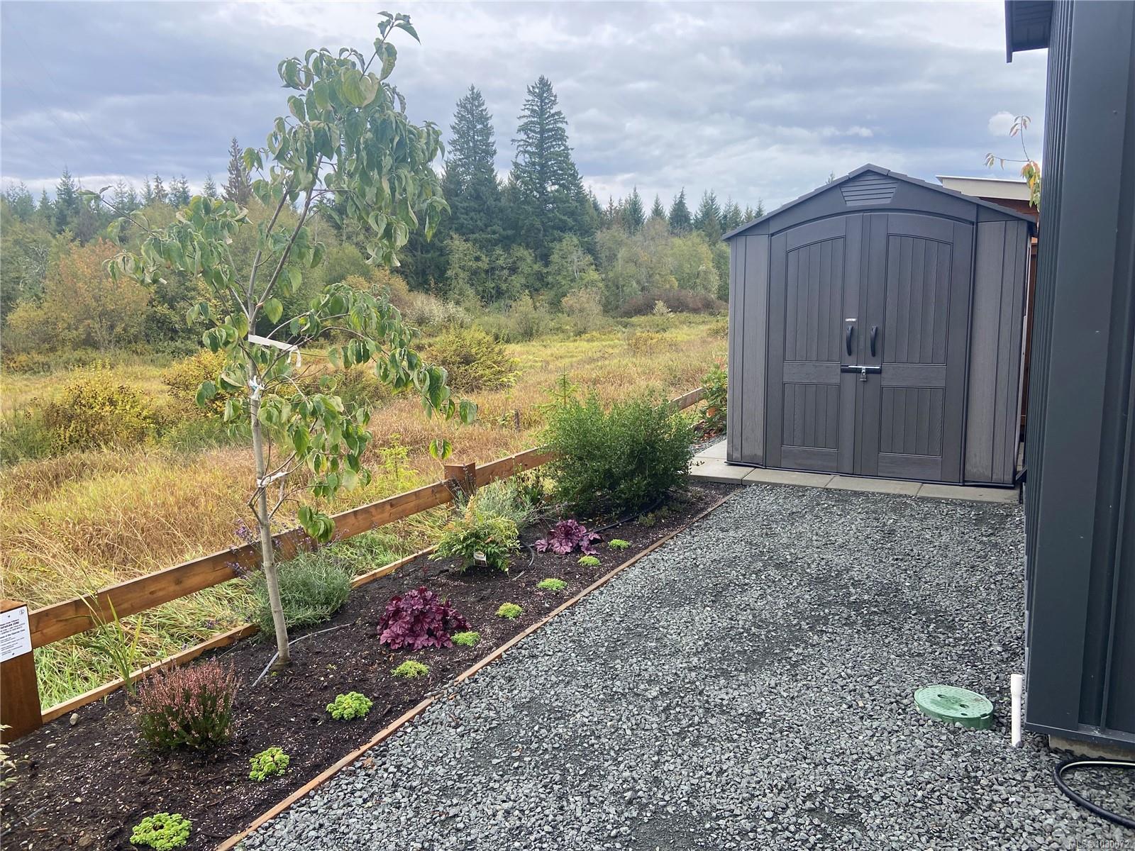 Beautiful manufactured home in The Flats in Cumberland with no GST and built to stand out. Constructed on site by Orca of Courtenay, an industry leader in steel framed homes, this one owner Northern Flicker model was a previous show home and showcases quality, efficiency, and thoughtful design throughout. Offering over 1,200 sq ft on a crawl space, the bright, open layout features vaulted ceilings, a spacious primary suite, large second bedroom, two bathrooms, and a seamless kitchen, living, and dining area that works beautifully for everyday life or entertaining. A separate laundry and storage room adds extra function. Stay comfortable year round with two heat pump heads and hot water on demand. Outside, enjoy a private backyard, storage shed, EV charger, and parking for two. Just minutes to Comox Lake, local mountain bike trails, and the ocean, this is an easy entry into the Comox Valley lifestyle.