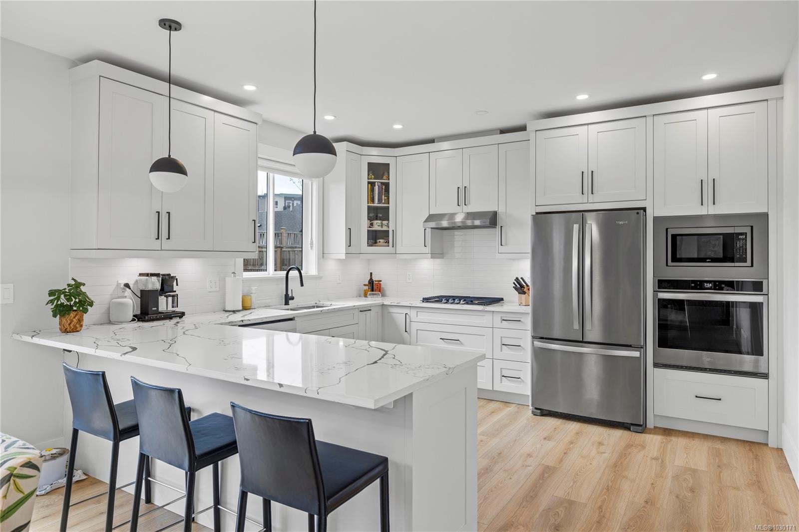 Thoughtfully designed with flexibility and comfort in mind, this home features a well-appointed suite above the garage, enhanced with extra insulation between the minimal shared walls (upper hall and third bedroom) for added privacy. The suite offers its own hydro meter, private entry, and in-suite laundry—an ideal setup for extended family or mortgage helper potential. This home offers all main living areas on the main level, with bedrooms conveniently located upstairs for privacy and functionality. 9-foot ceilings on both floors create an airy feel, complemented by an abundance of windows that fill the home with natural light. Quality finishes are evident throughout, including quartz countertops on every surface (even in the suite), heated tile flooring, and designer-selected modern fixtures. The chef-inspired kitchen features a peninsula eating bar, premium appliances, and a beautifully tiled, underlit backsplash—perfect for both everyday living and entertaining. Retreat to the luxurious primary bedroom complete with a spa-like ensuite showcasing a soaker tub, tiled shower, dual sinks, and a private water closet. Additional highlights include efficient mechanical systems such as air conditioning, a gas furnace, and endless hot water on demand, along with a crawl space for extra storage, full landscaping, and window blinds—everything thoughtfully completed for move-in-ready convenience.