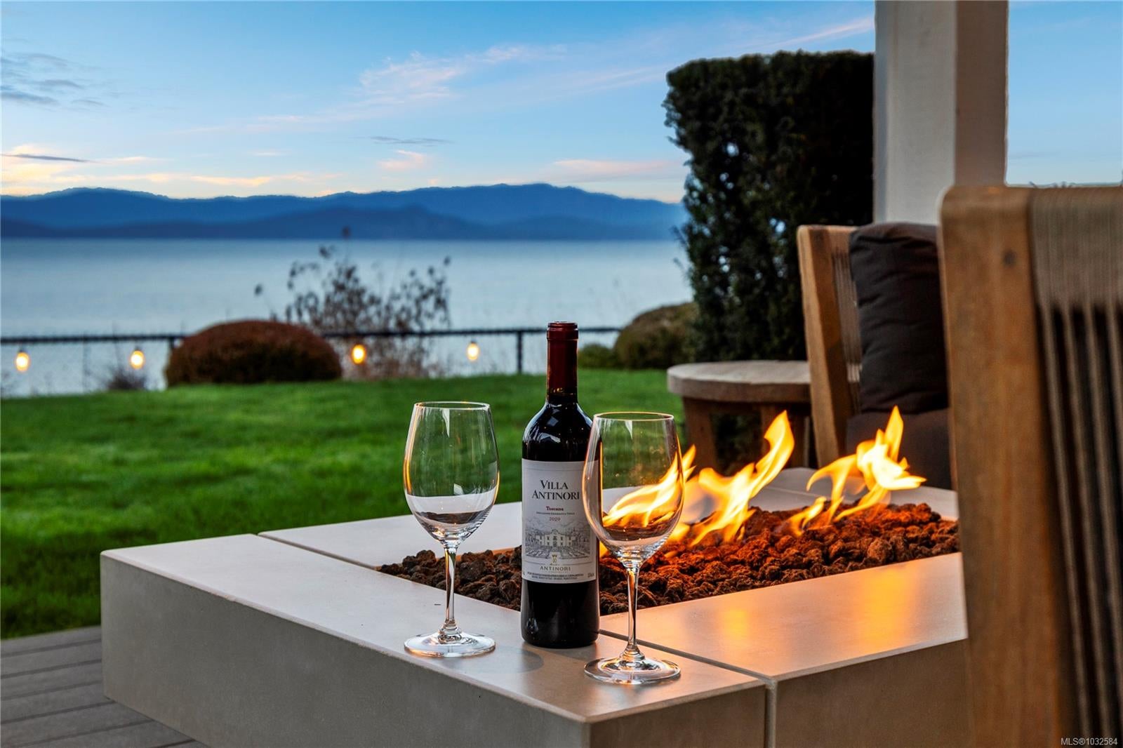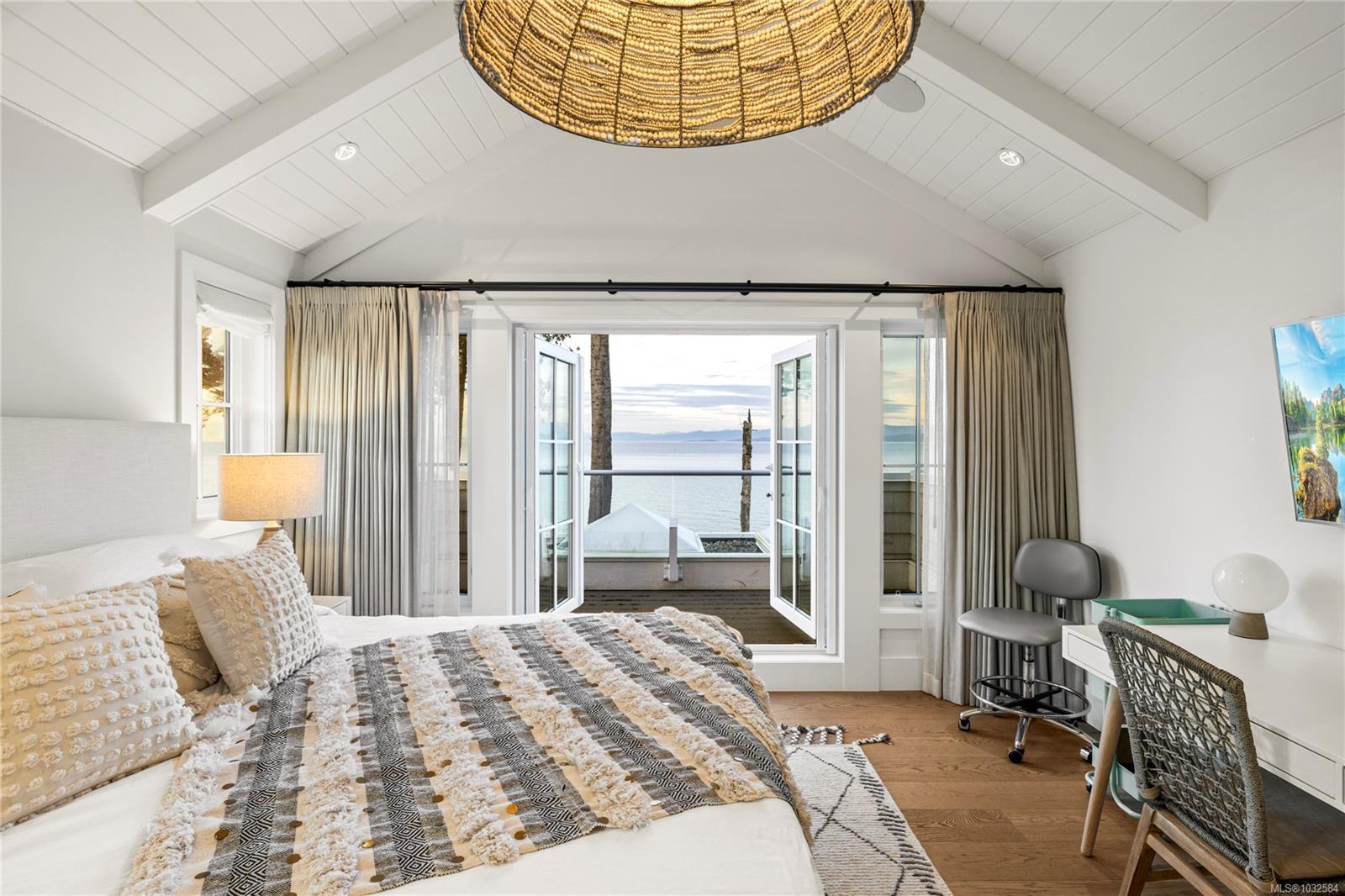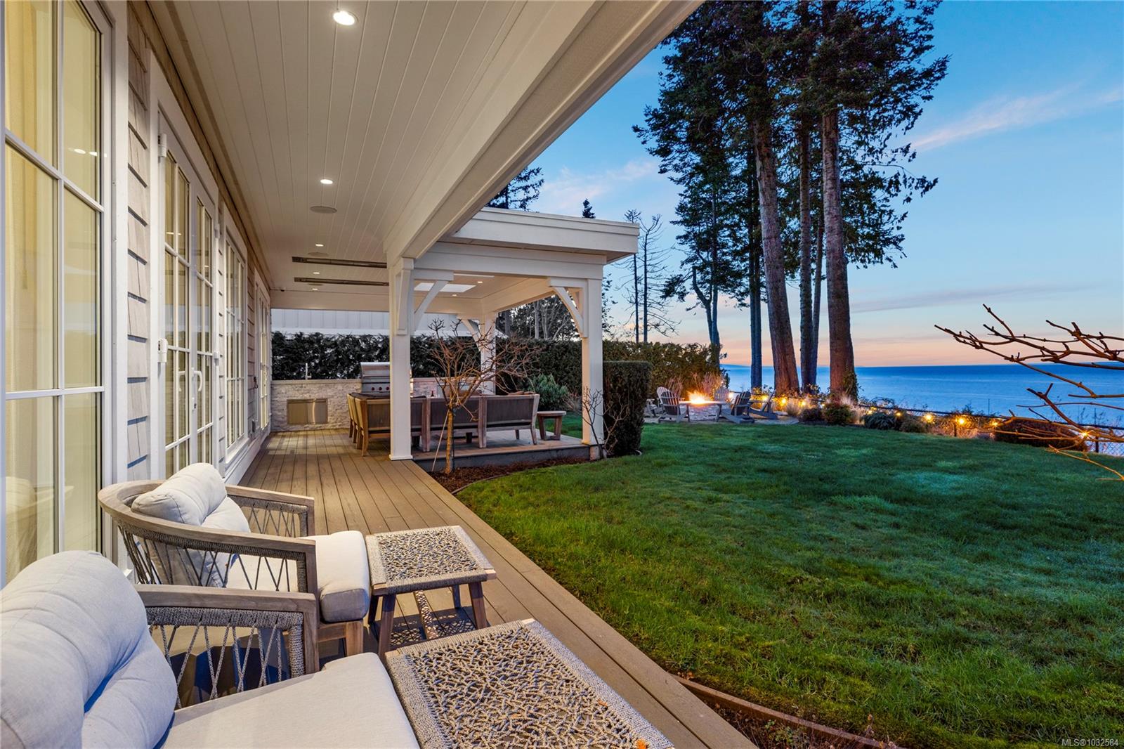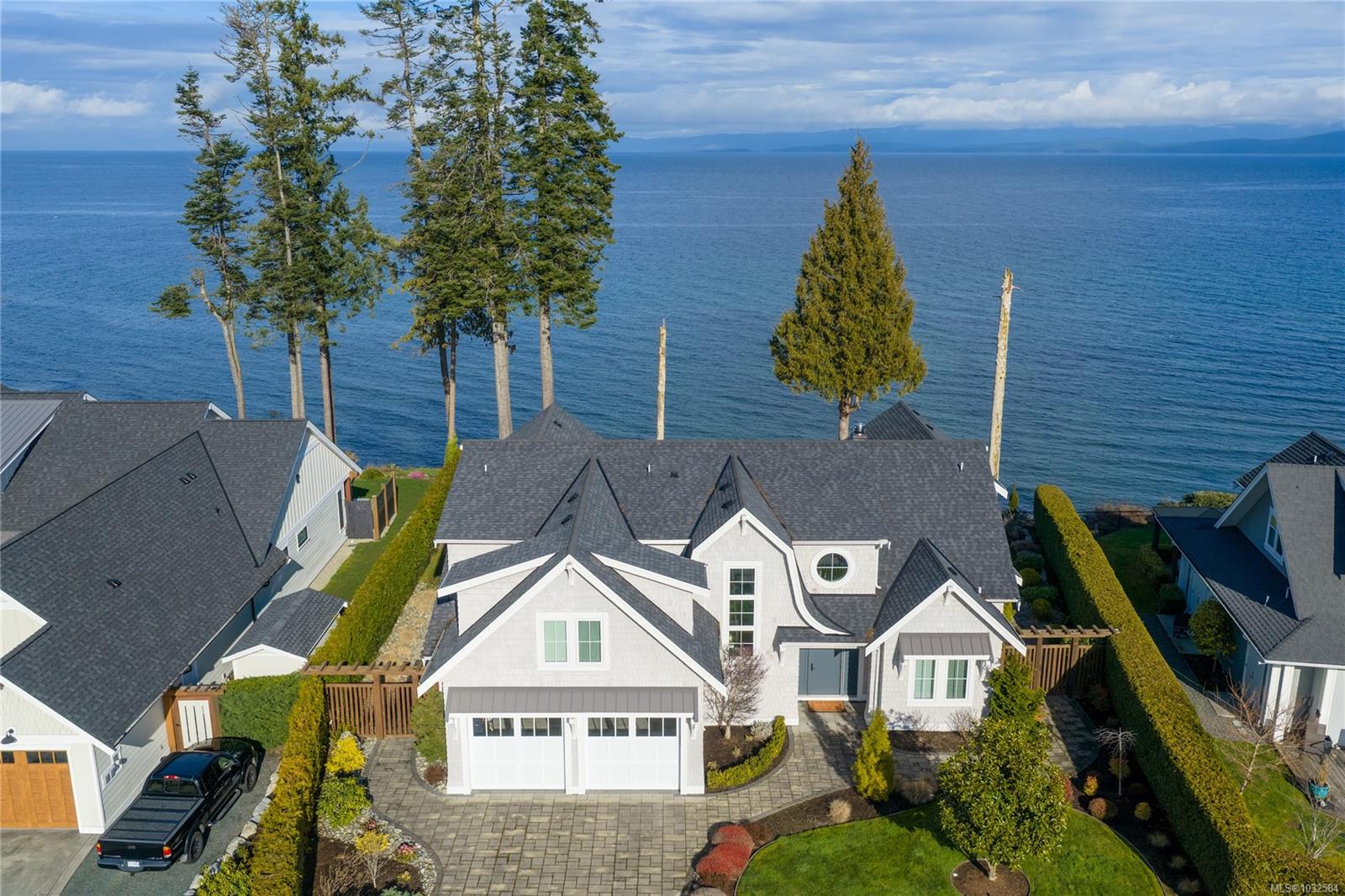 Perched above the shoreline with breathtaking high-bank waterfront views, this custom-built, one-owner luxury residence offers an extraordinary blend of sophistication, comfort, and coastal beauty. Designed to capture sweeping ocean vistas from nearly every angle, the home showcases impeccable craftsmanship, vaulted ceilings, and curated designer finishes throughout. The main level features a stunning primary retreat with multiple elegant French doors opening to a private backyard oasis. Here, you’ll find a covered, heated outdoor patio perfect for year-round enjoyment, complete with two gas fireplaces and a relaxing hot tub—an ideal setting for entertaining or unwinding under the stars. At the heart of the home is a chef’s dream kitchen, outfitted with top-of-the-line appliances, premium cabinetry, and expansive prep and gathering spaces designed for both function and style. Guests are treated to two luxurious oceanview suites, each with its own beautifully appointed ensuite, ensuring privacy and comfort. A dedicated media room provides the ultimate cinematic experience, while a fully automated security system offers peace of mind. Offered fully furnished with custom designer pieces, this exceptional property is truly turnkey—an exquisite waterfront sanctuary where luxury living meets timeless coastal elegance.