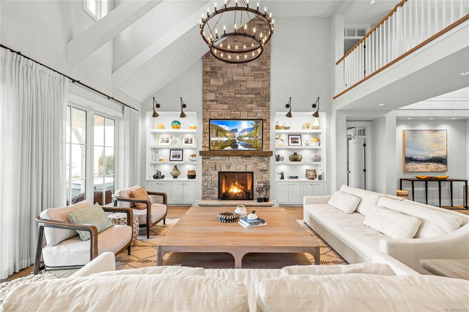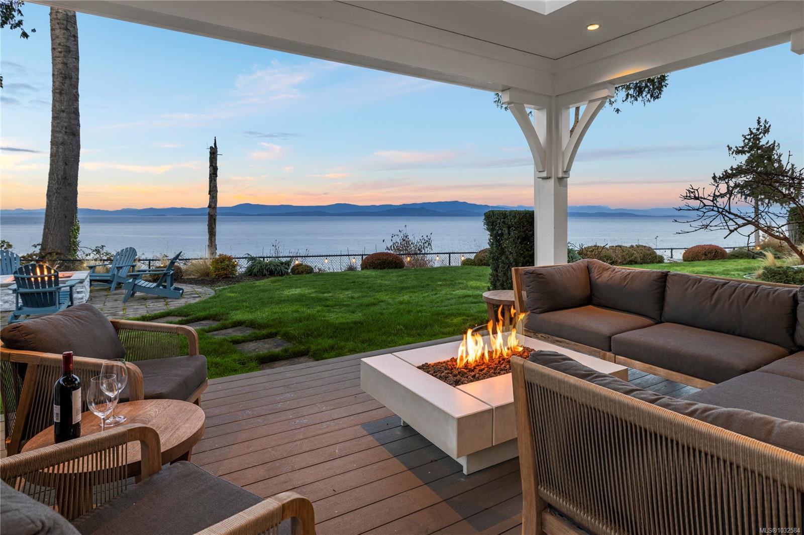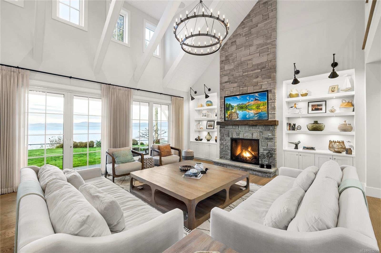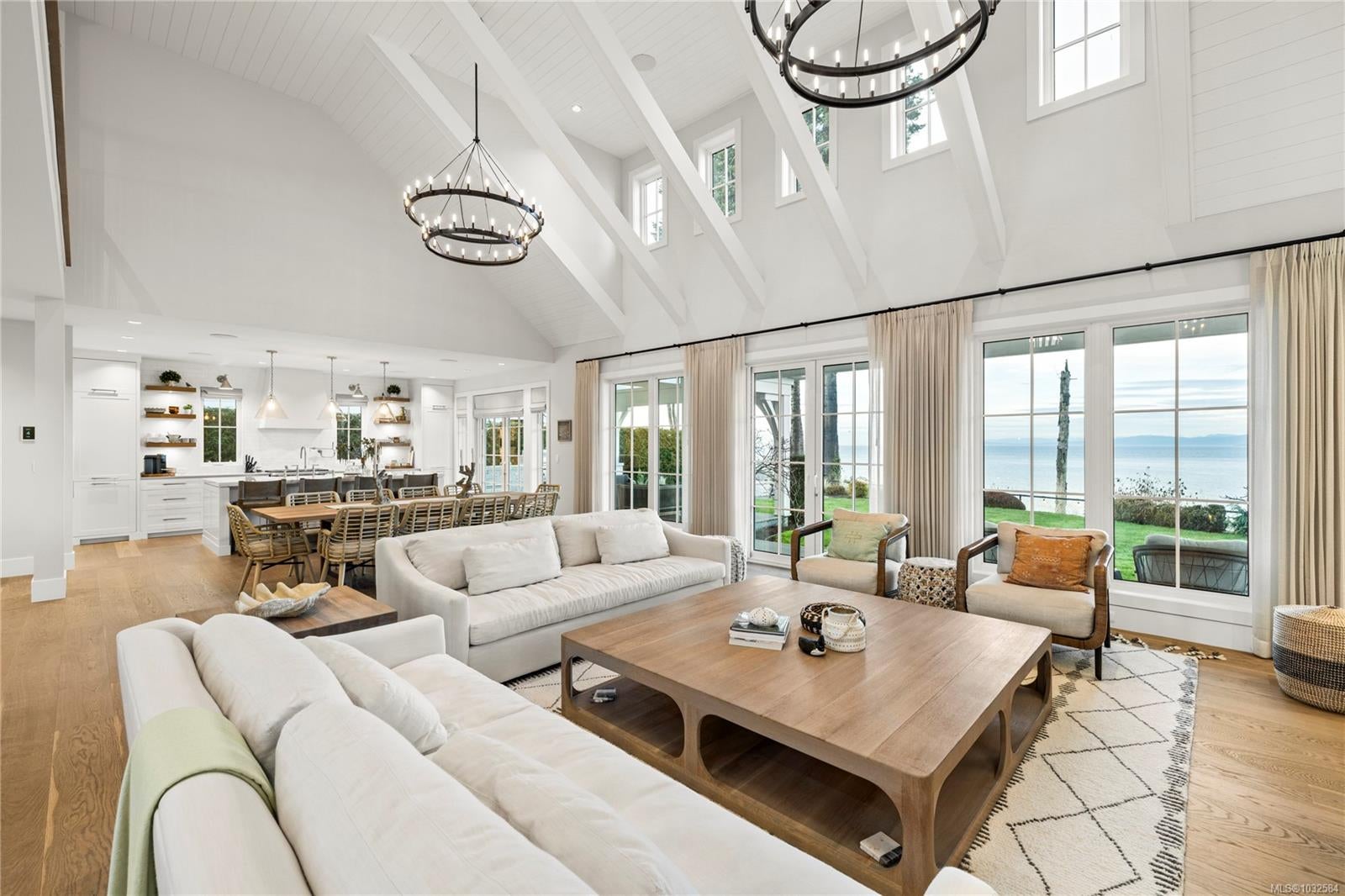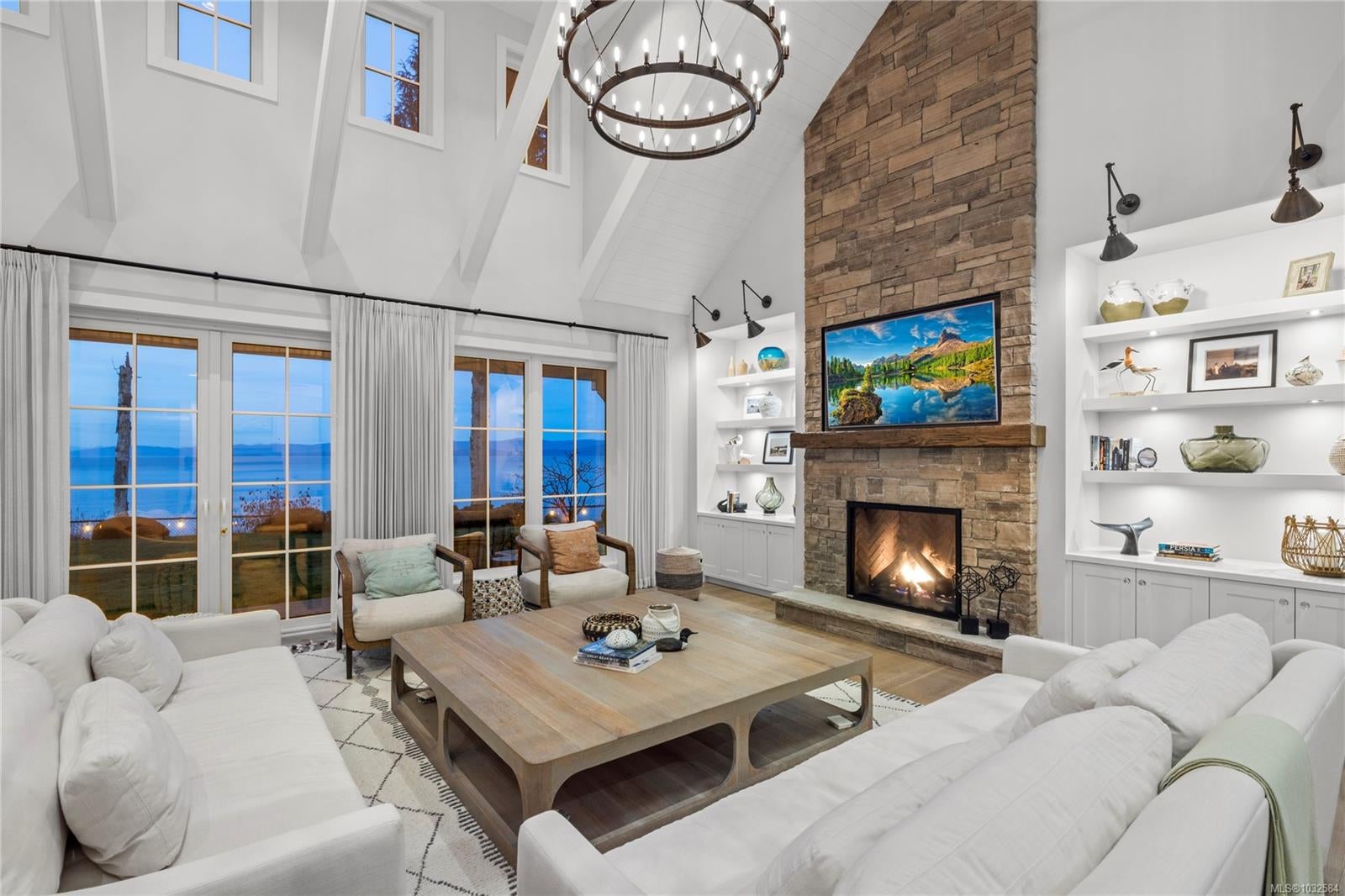 Perched above the shoreline with breathtaking high-bank waterfront views, this custom-built, one-owner luxury residence offers an extraordinary blend of sophistication, comfort, and coastal beauty. Designed to capture sweeping ocean vistas from nearly every angle, the home showcases impeccable craftsmanship, vaulted ceilings, and curated designer finishes throughout. The main level features a stunning primary retreat with multiple elegant French doors opening to a private backyard oasis. Here, you’ll find a covered, heated outdoor patio perfect for year-round enjoyment, complete with two gas fireplaces and a relaxing hot tub—an ideal setting for entertaining or unwinding under the stars. At the heart of the home is a chef’s dream kitchen, outfitted with top-of-the-line appliances, premium cabinetry, and expansive prep and gathering spaces designed for both function and style. Guests are treated to two luxurious oceanview suites, each with its own beautifully appointed ensuite, ensuring privacy and comfort. A dedicated media room provides the ultimate cinematic experience, while a fully automated security system offers peace of mind. Offered fully furnished with custom designer pieces, this exceptional property is truly turnkey—an exquisite waterfront sanctuary where luxury living meets timeless coastal elegance.