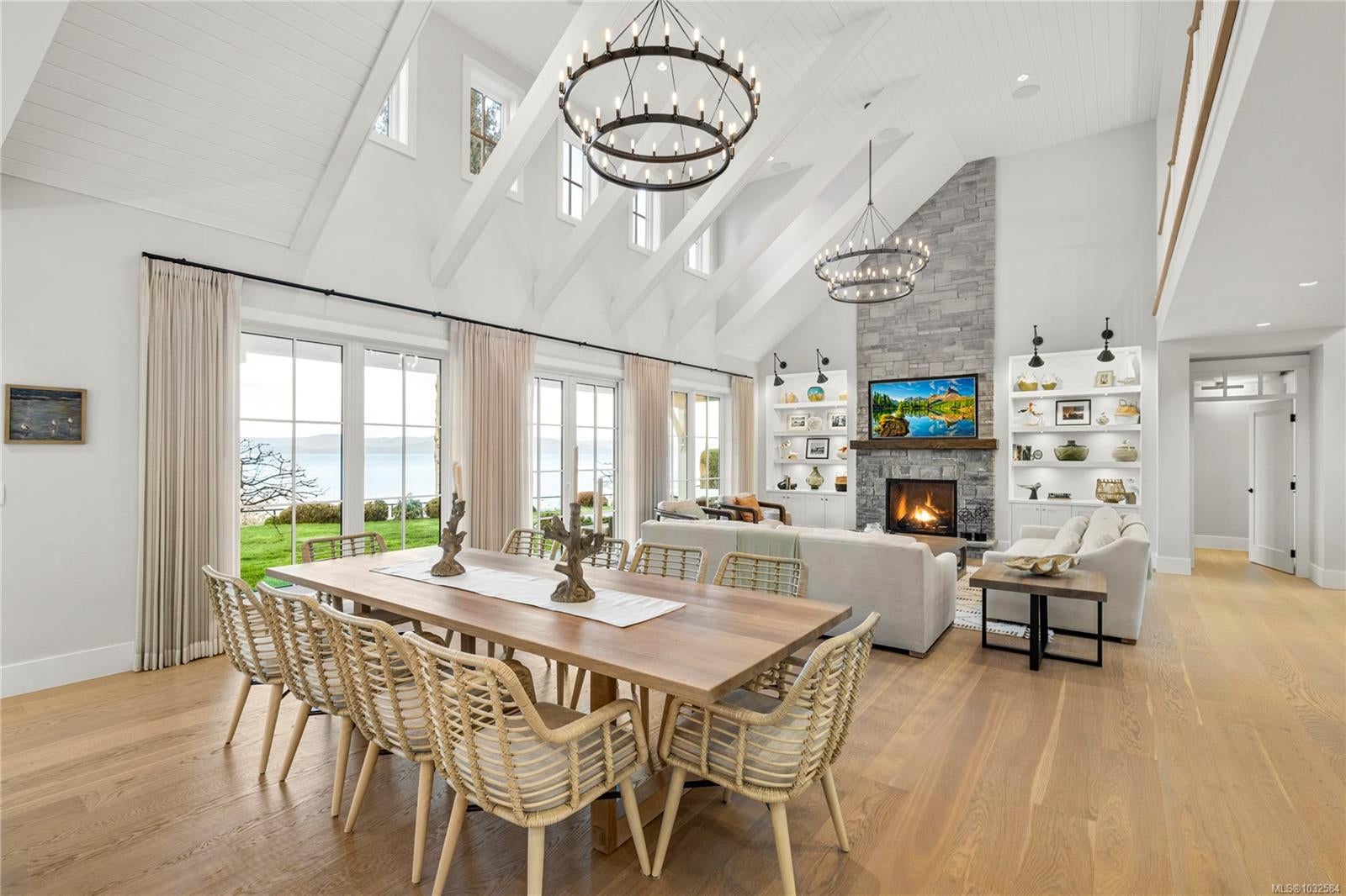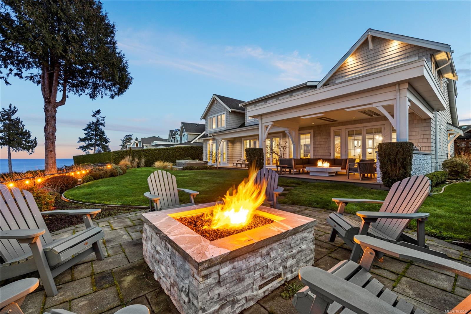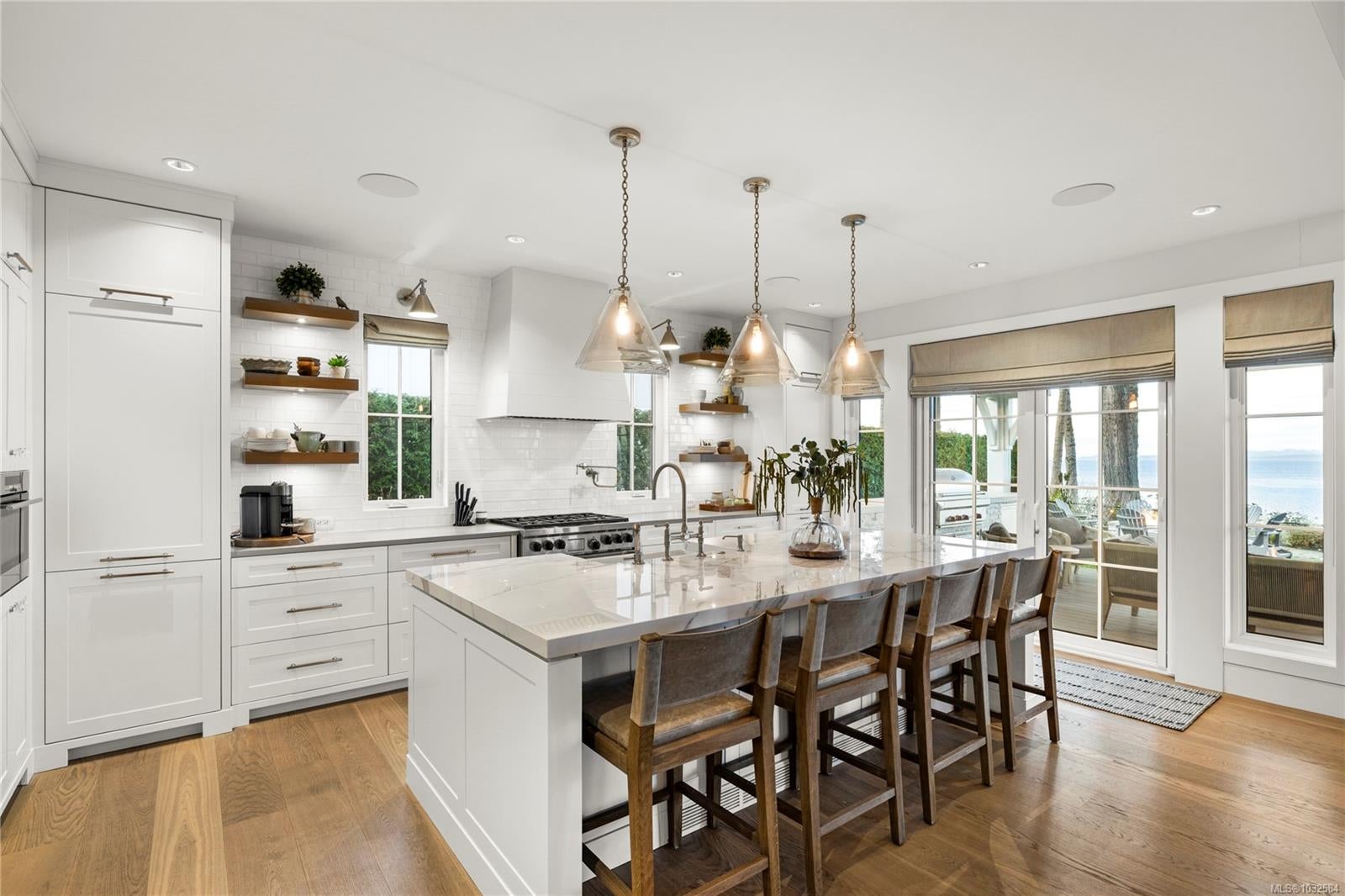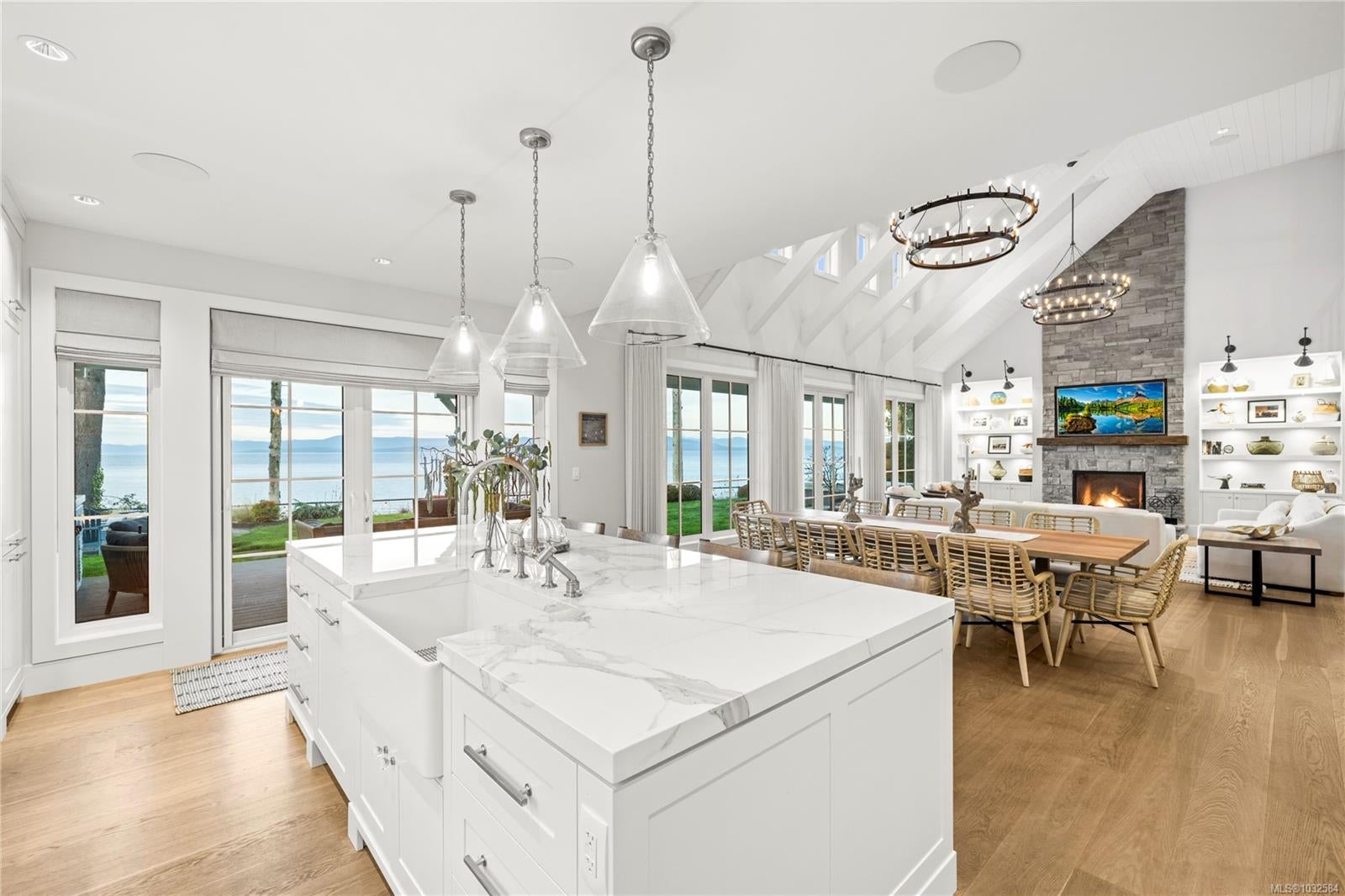 Perched above the shoreline with breathtaking high-bank waterfront views, this custom-built, one-owner luxury residence offers an extraordinary blend of sophistication, comfort, and coastal beauty. Designed to capture sweeping ocean vistas from nearly every angle, the home showcases impeccable craftsmanship, vaulted ceilings, and curated designer finishes throughout. The main level features a stunning primary retreat with multiple elegant French doors opening to a private backyard oasis. Here, you’ll find a covered, heated outdoor patio perfect for year-round enjoyment, complete with two gas fireplaces and a relaxing hot tub—an ideal setting for entertaining or unwinding under the stars. At the heart of the home is a chef’s dream kitchen, outfitted with top-of-the-line appliances, premium cabinetry, and expansive prep and gathering spaces designed for both function and style. Guests are treated to two luxurious oceanview suites, each with its own beautifully appointed ensuite, ensuring privacy and comfort. A dedicated media room provides the ultimate cinematic experience, while a fully automated security system offers peace of mind. Offered fully furnished with custom designer pieces, this exceptional property is truly turnkey—an exquisite waterfront sanctuary where luxury living meets timeless coastal elegance.