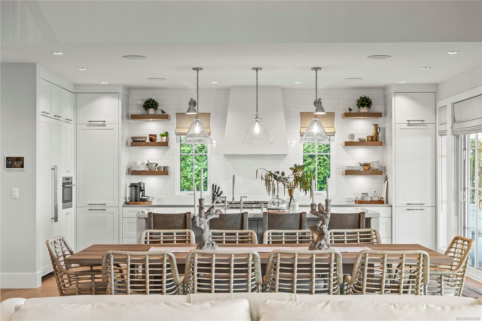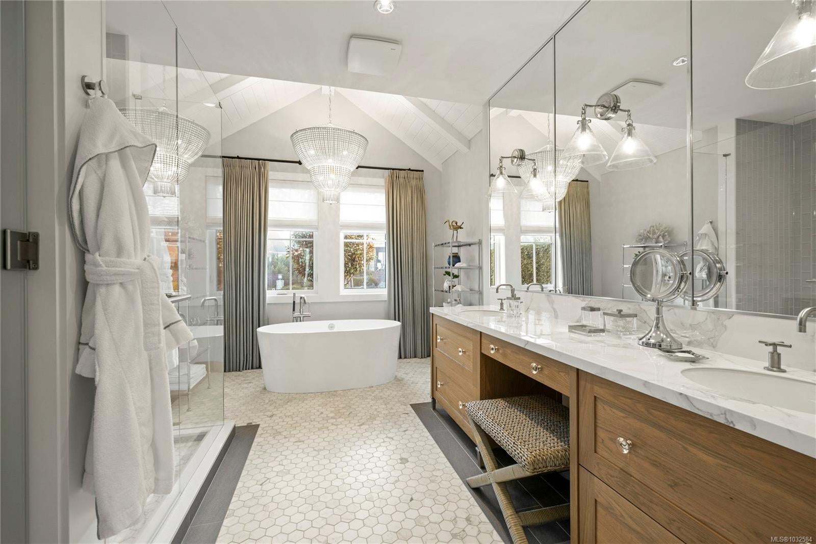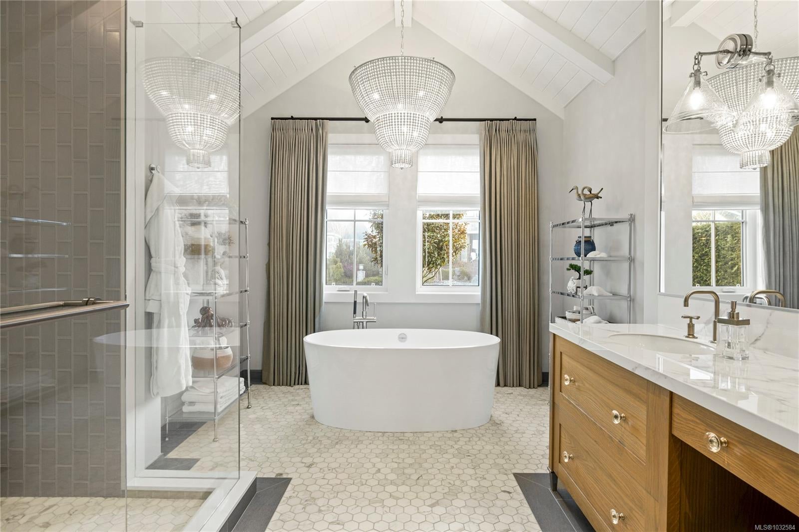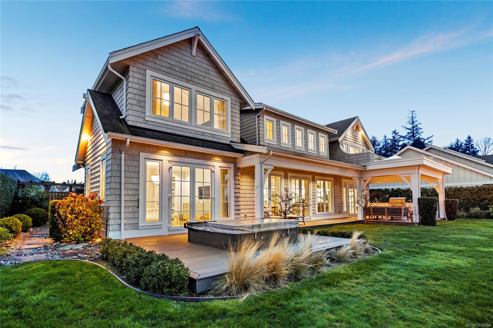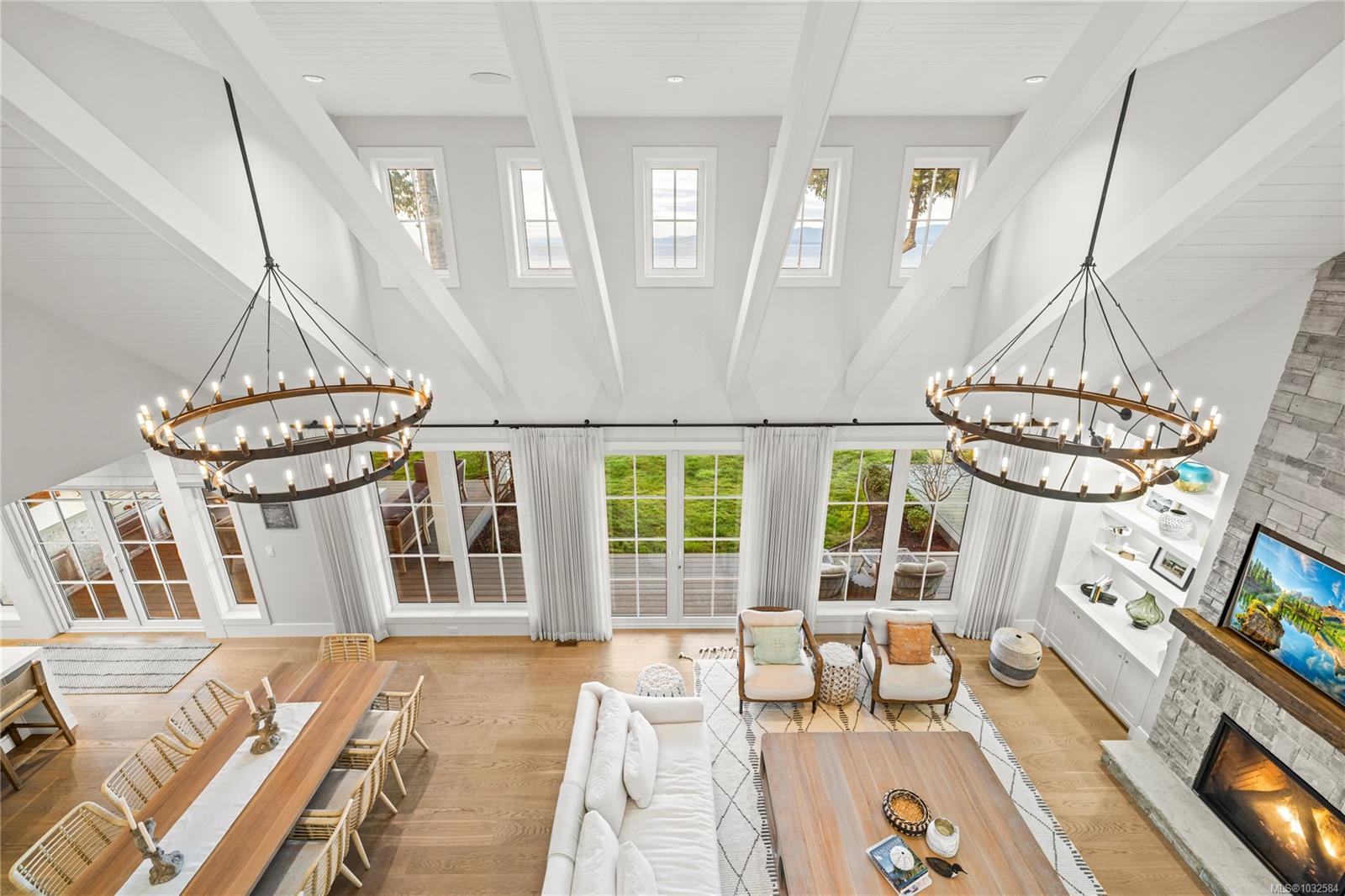 Perched above the shoreline with breathtaking high-bank waterfront views, this custom-built, one-owner luxury residence offers an extraordinary blend of sophistication, comfort, and coastal beauty. Designed to capture sweeping ocean vistas from nearly every angle, the home showcases impeccable craftsmanship, vaulted ceilings, and curated designer finishes throughout. The main level features a stunning primary retreat with multiple elegant French doors opening to a private backyard oasis. Here, you’ll find a covered, heated outdoor patio perfect for year-round enjoyment, complete with two gas fireplaces and a relaxing hot tub—an ideal setting for entertaining or unwinding under the stars. At the heart of the home is a chef’s dream kitchen, outfitted with top-of-the-line appliances, premium cabinetry, and expansive prep and gathering spaces designed for both function and style. Guests are treated to two luxurious oceanview suites, each with its own beautifully appointed ensuite, ensuring privacy and comfort. A dedicated media room provides the ultimate cinematic experience, while a fully automated security system offers peace of mind. Offered fully furnished with custom designer pieces, this exceptional property is truly turnkey—an exquisite waterfront sanctuary where luxury living meets timeless coastal elegance.