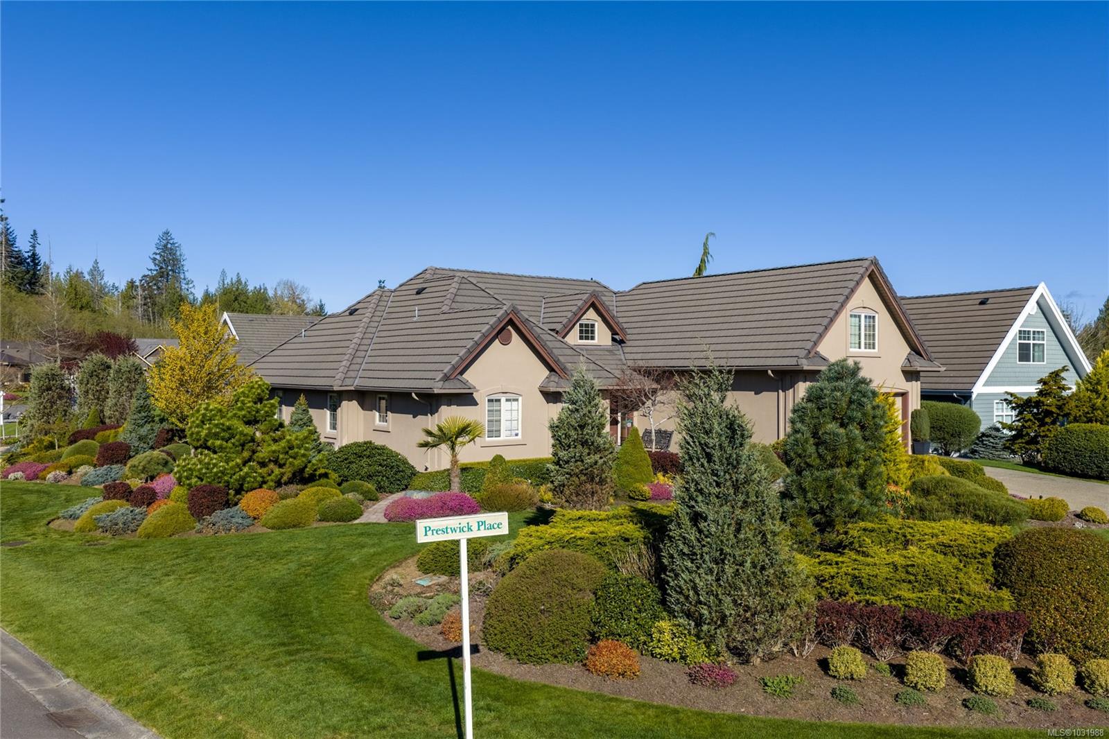 This executive rancher by Camelot Homes checks all the boxes and then some. Located in the sought after Morningstar area of French Creek, this immaculate 3 bedroom, 3 bathroom home offers a bright, open plan on a spacious corner lot, just minutes to Parksville and Qualicum Beach, and close to French Creek Marina and Wembley Mall. The kitchen features quartz countertops, heated floors, a double wall oven, large panty and a reverse osmosis water system, flowing into a warm and inviting great room with custom built ins, a natural gas fireplace, and large windows that fill the space with natural light. Upstairs, a versatile bonus room with a full bath and impressive storage offers flexibility for guests, hobbies, or a quiet retreat. Step outside to a fully fenced backyard with beautiful landscaping updates, irrigation, a small greenhouse, and a natural gas BBQ hookup perfect for relaxing, gardening, or entertaining. A well cared for home in a fantastic location.